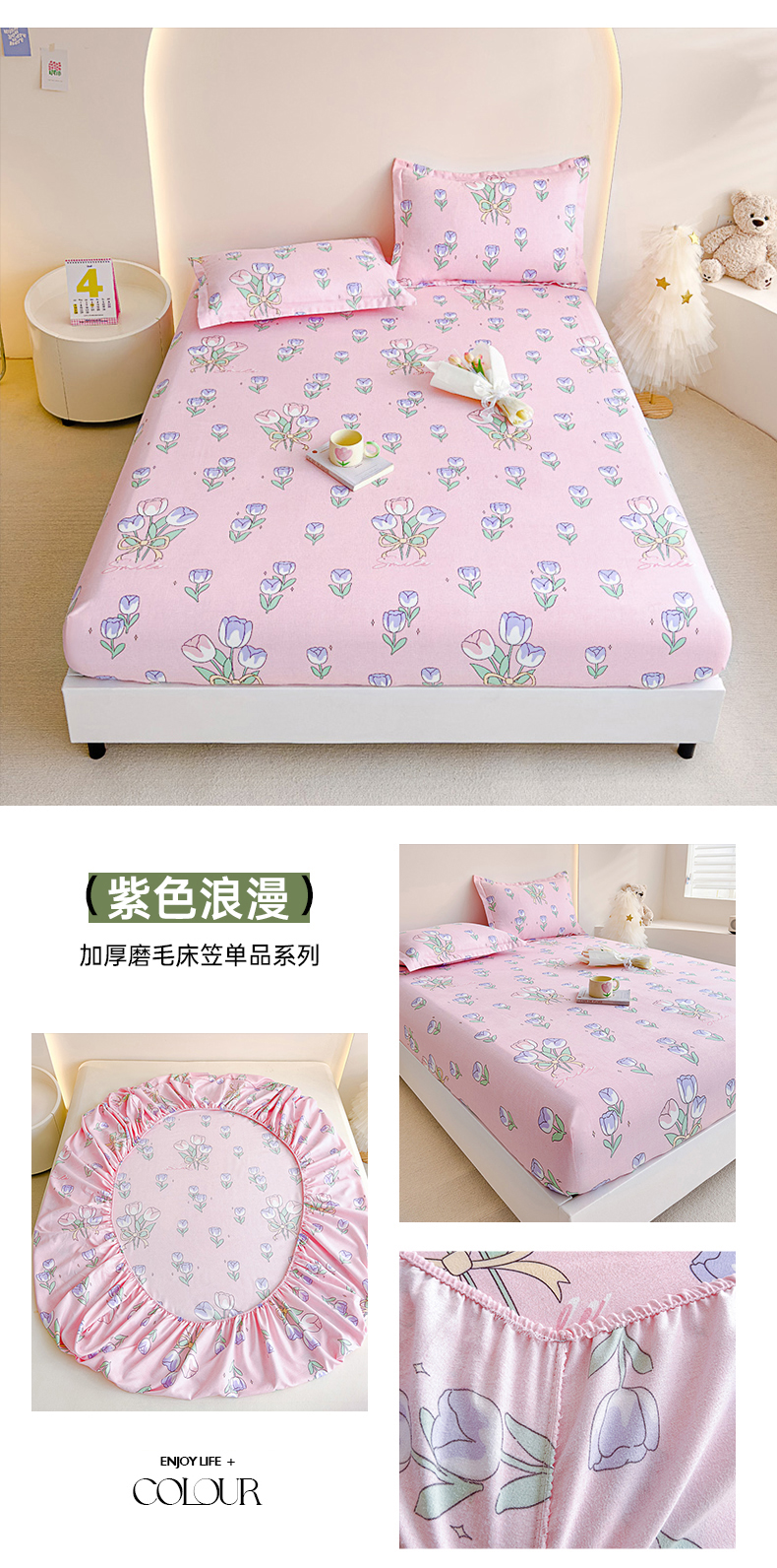 靓生活 2024新款加厚磨毛生态棉单品床笠 紫色浪漫