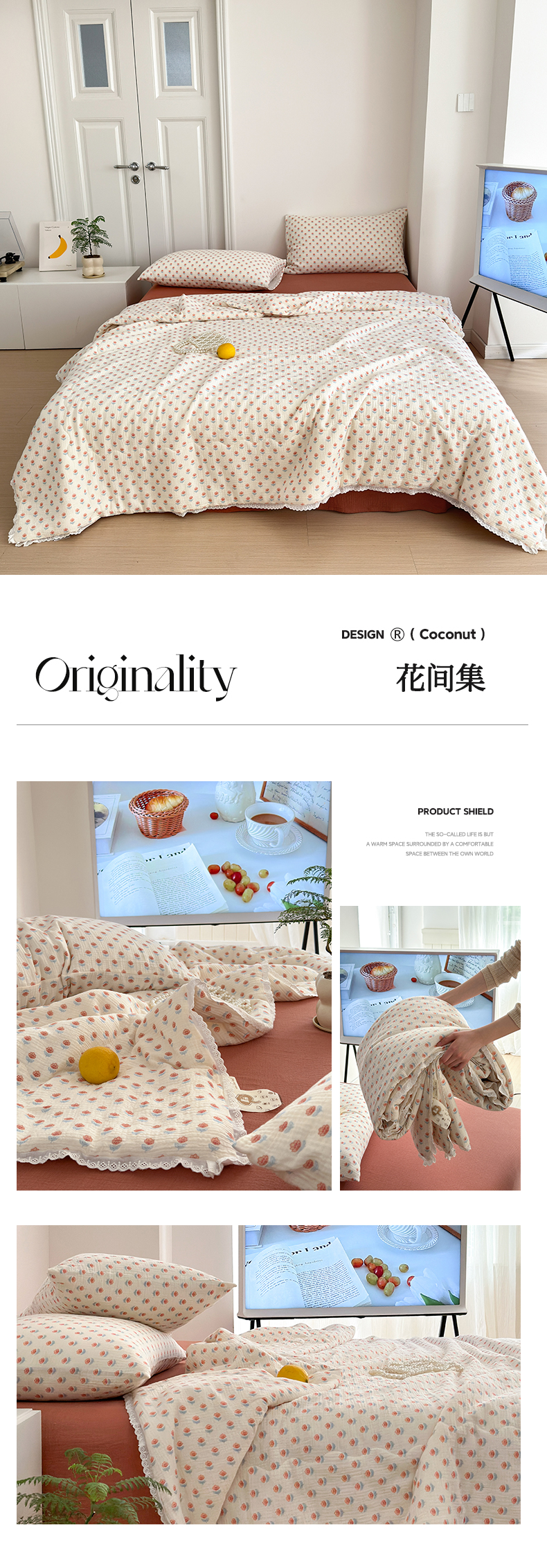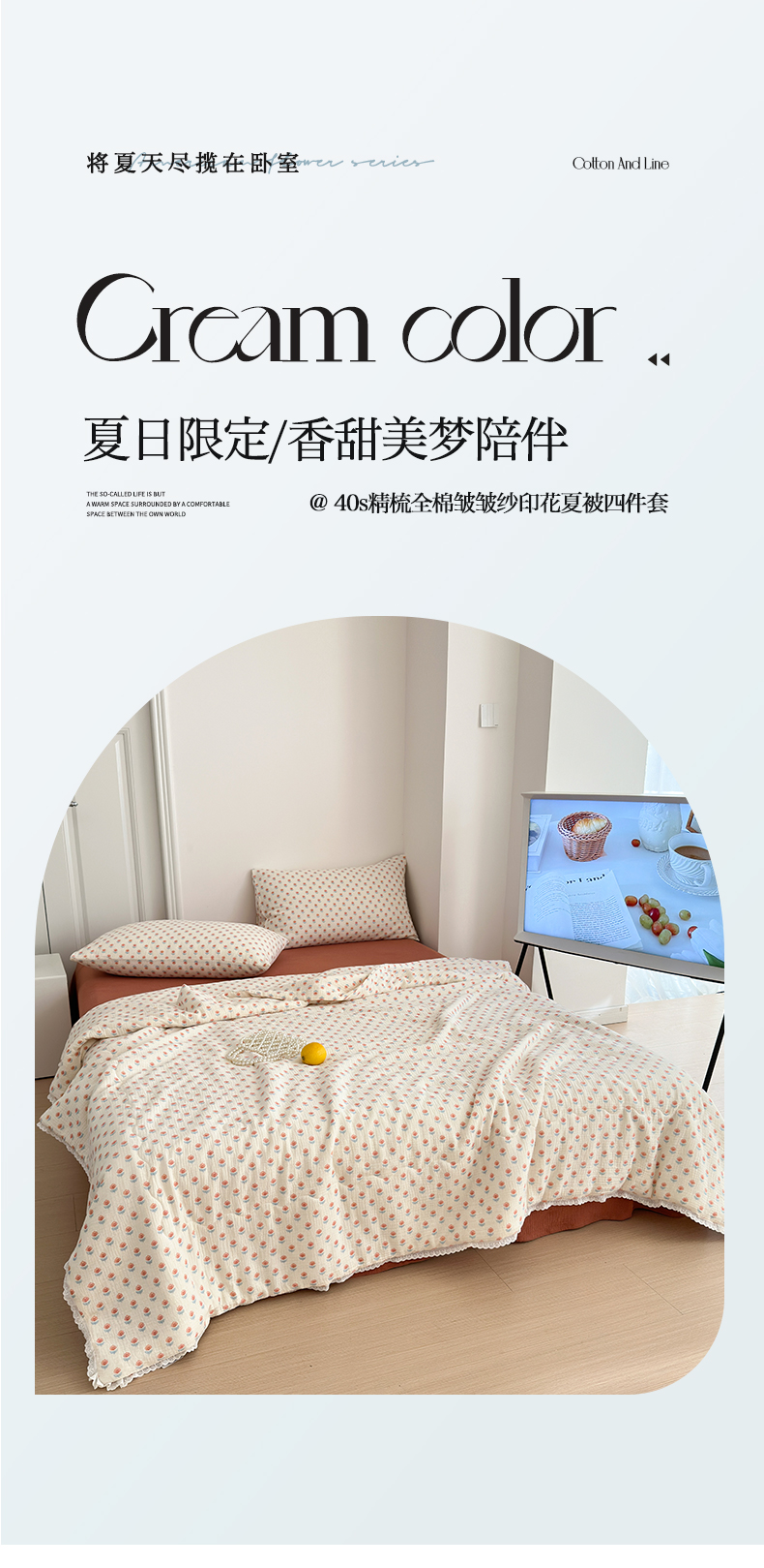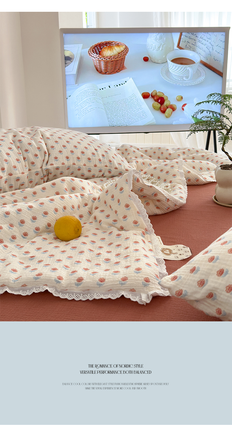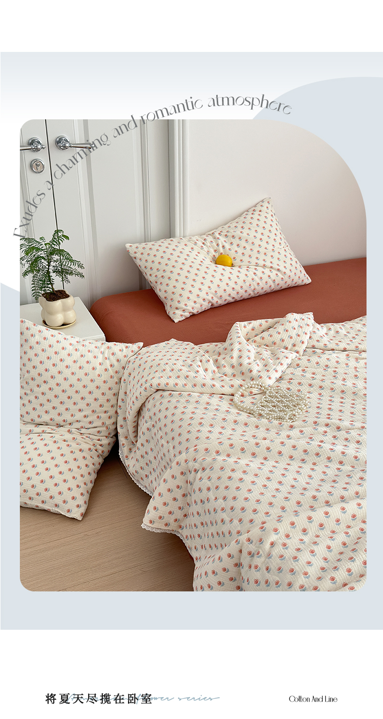 当前位置: 91家纺网 > 商品网购 > 床品套件 > 四件套 > 夏被四件套 > 山舍家居 2024新款全棉皱皱纱夏被四件套 花间集