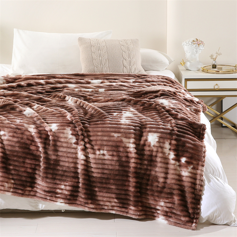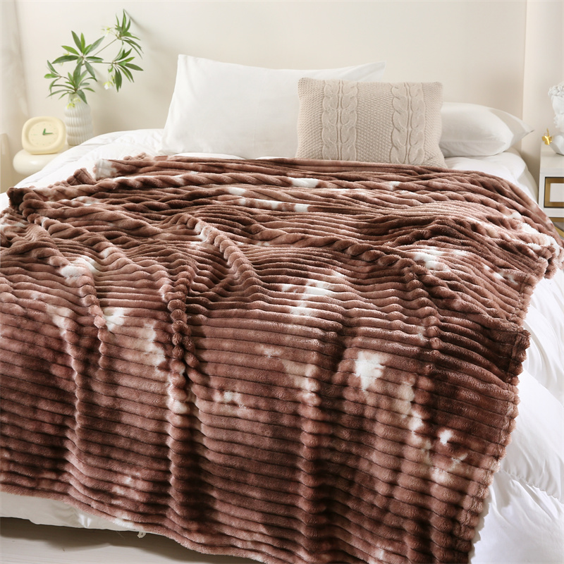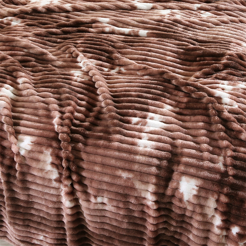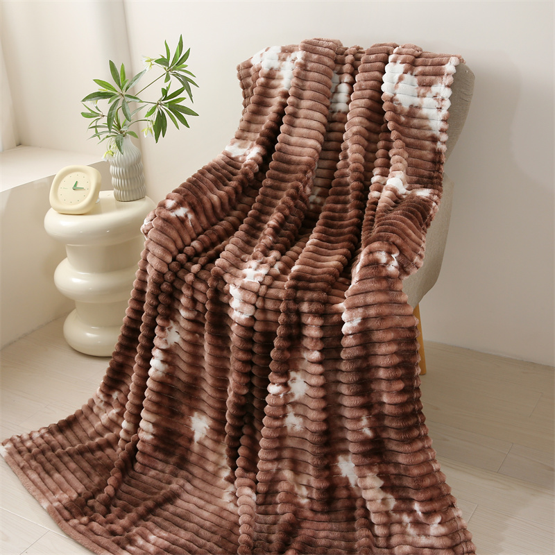 商品名称:巴木赫 2024新款260克扎染印花抽条毛毯毯子 棕咖
