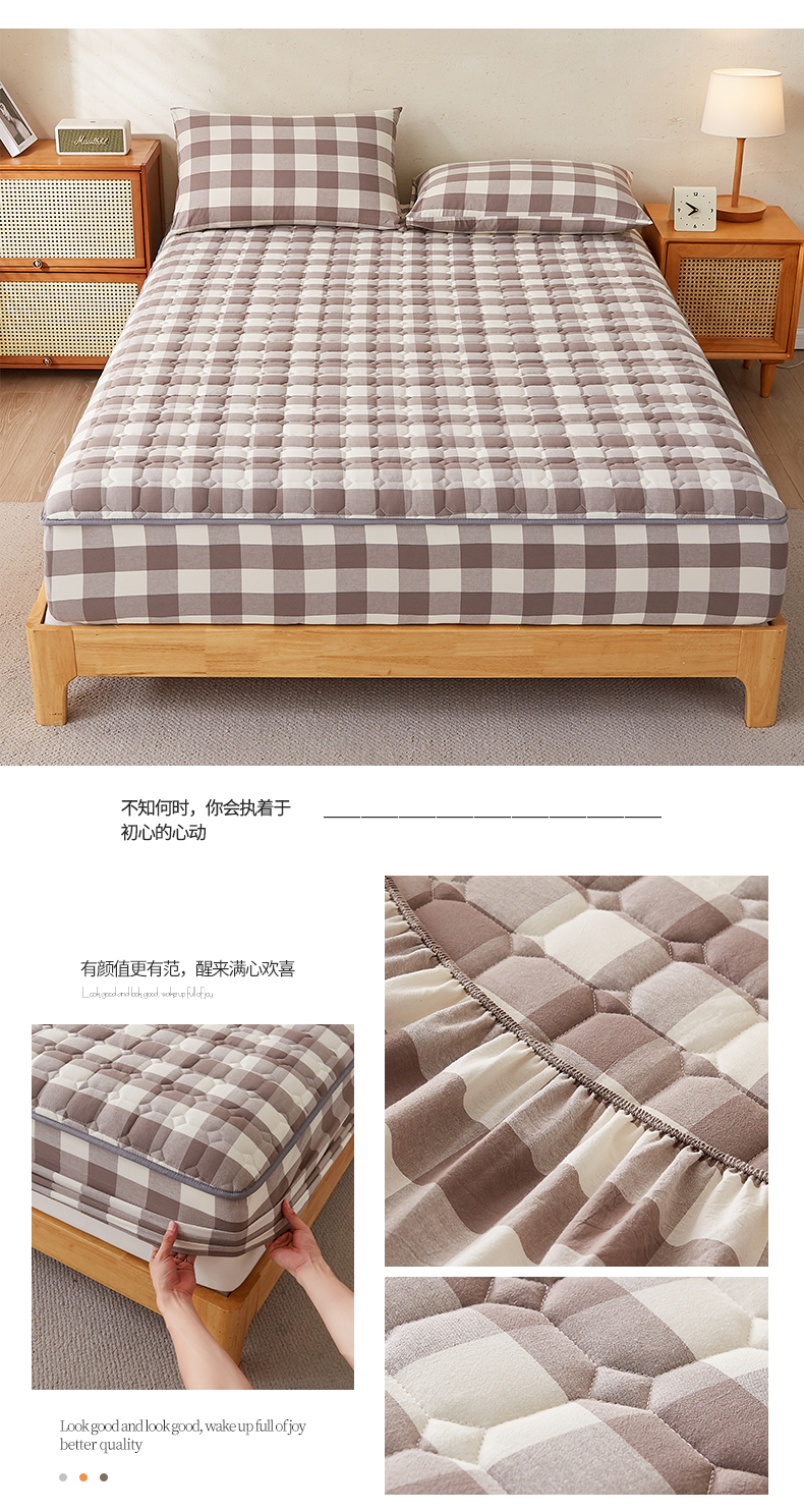 迪乐妮家居 2024新款大床色织全棉夹棉床笠 大灰格