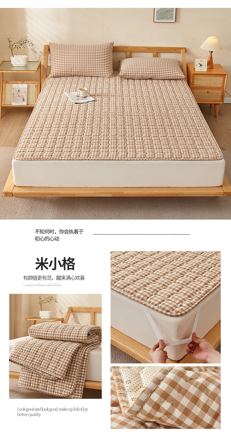 迪乐妮家居 2024新款大床色织全棉夹棉床褥 米小格