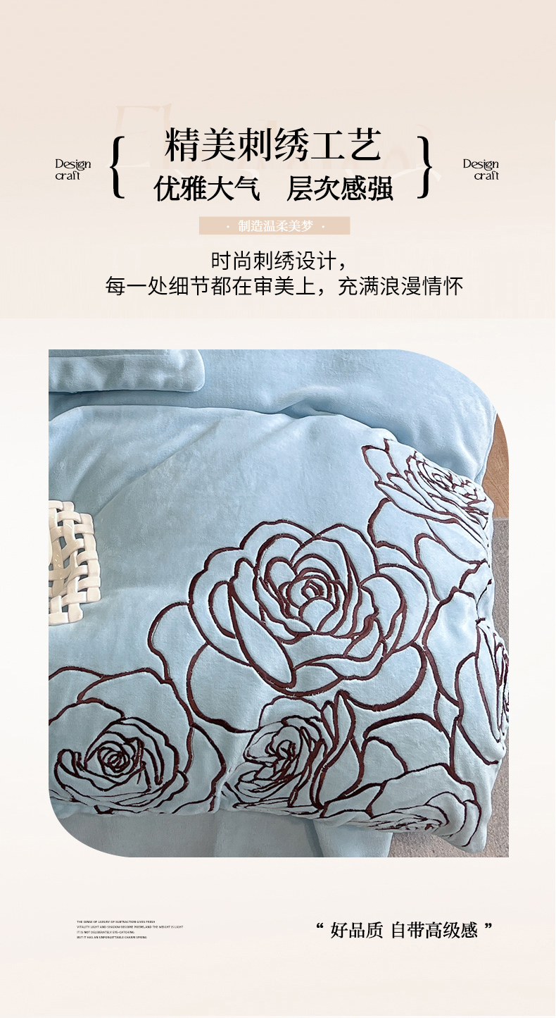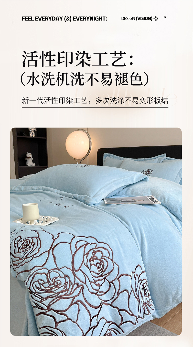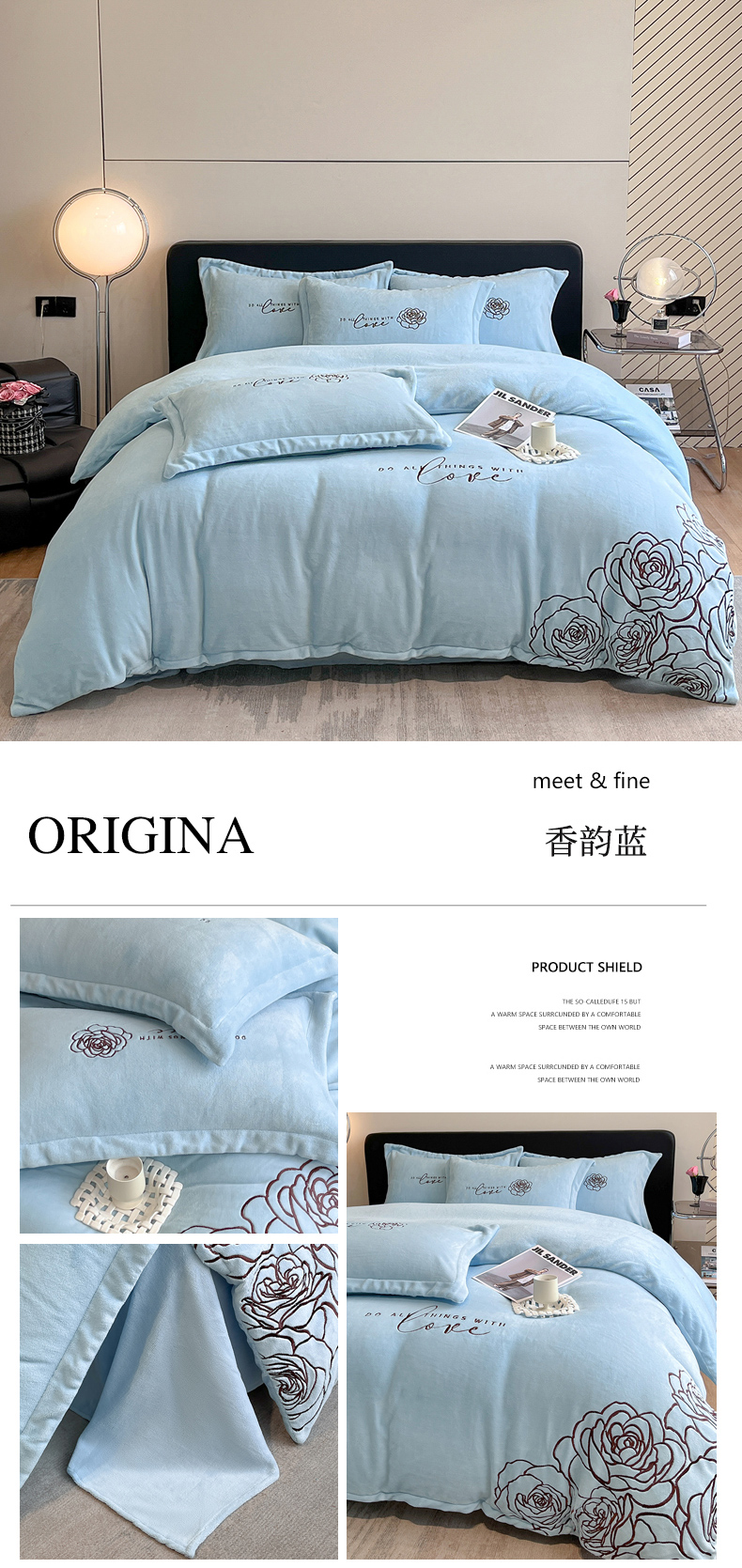 当前位置: 91家纺网 > 商品网购 > 床品套件 > 四件套 > 牛奶绒四件套 > 你好美丽 2025新款牛奶绒A类200克四件套刺绣香韵-花之语 香韵蓝