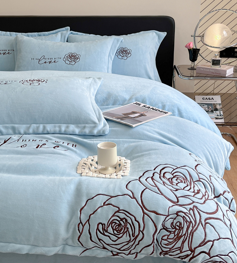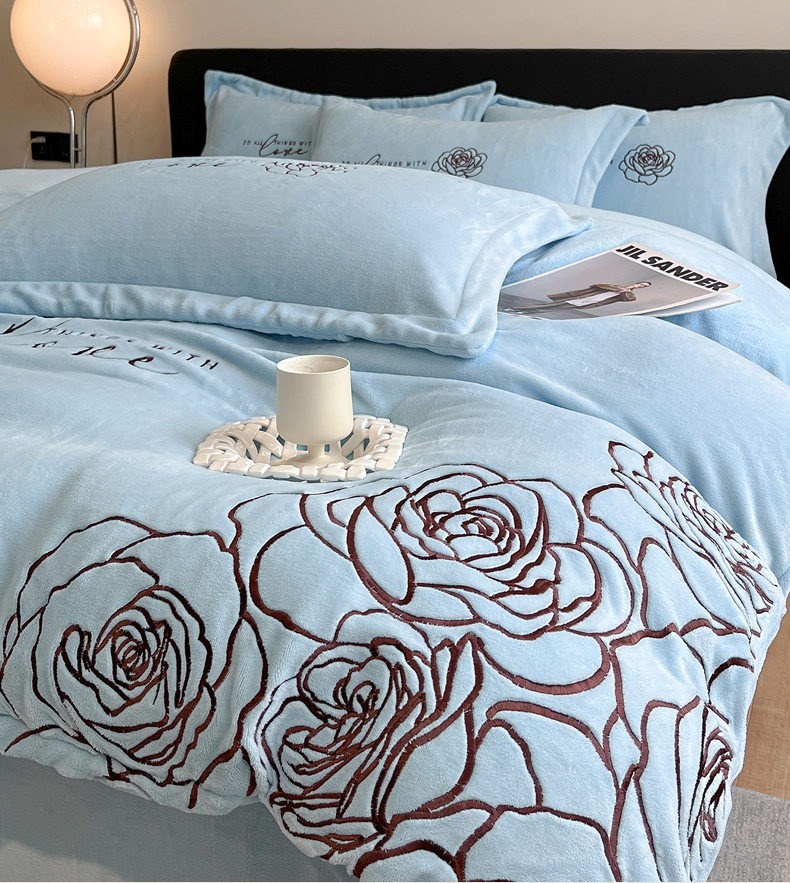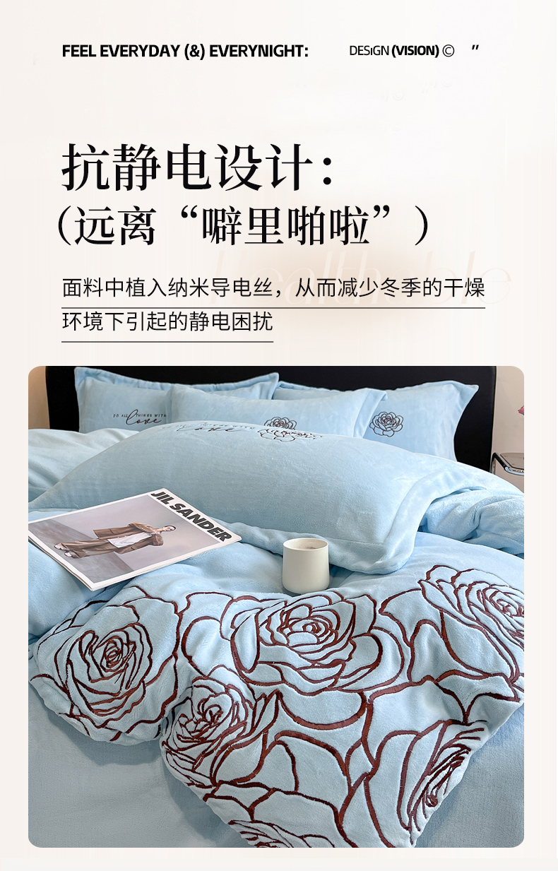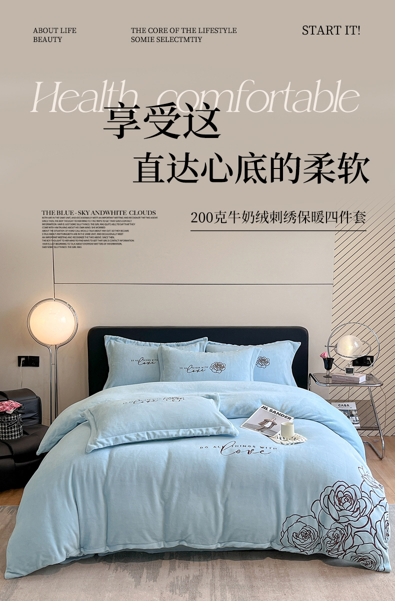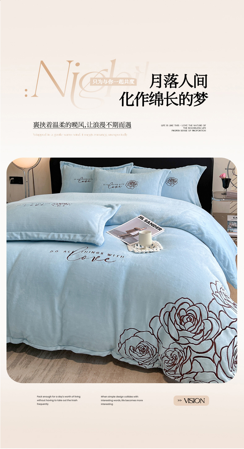 当前位置: 91家纺网 > 商品网购 > 床品套件 > 四件套 > 牛奶绒四件套 > 你好美丽 2025新款牛奶绒A类200克四件套刺绣香韵-花之语 香韵蓝