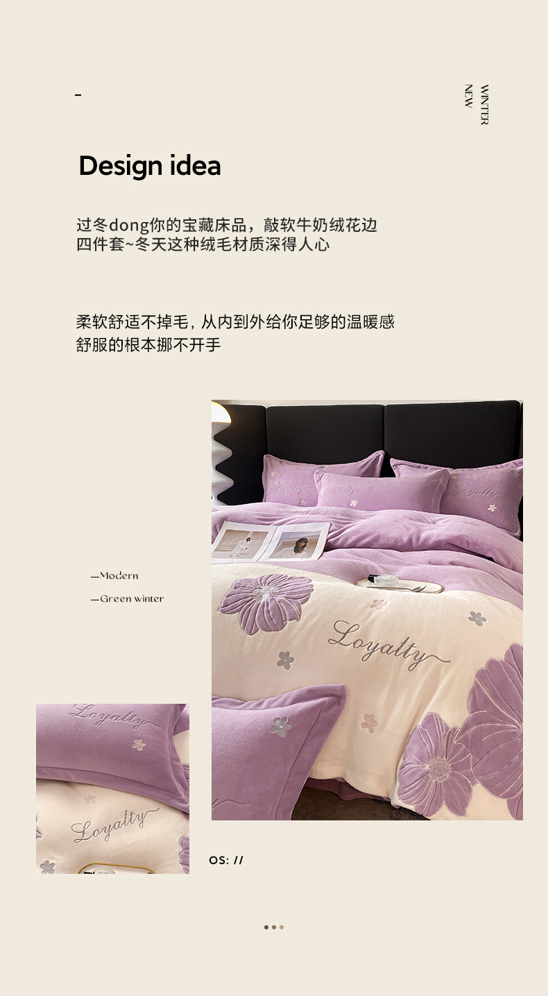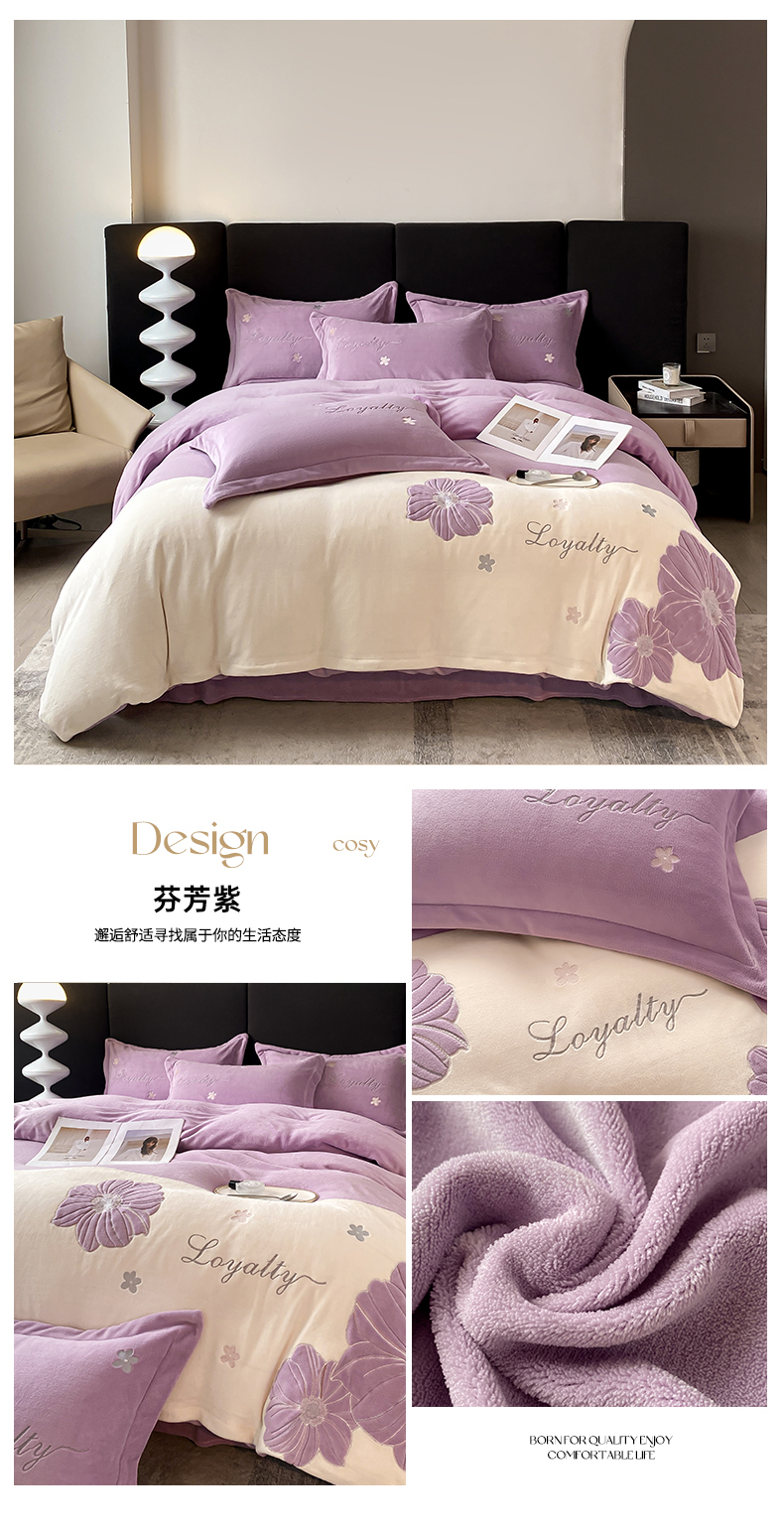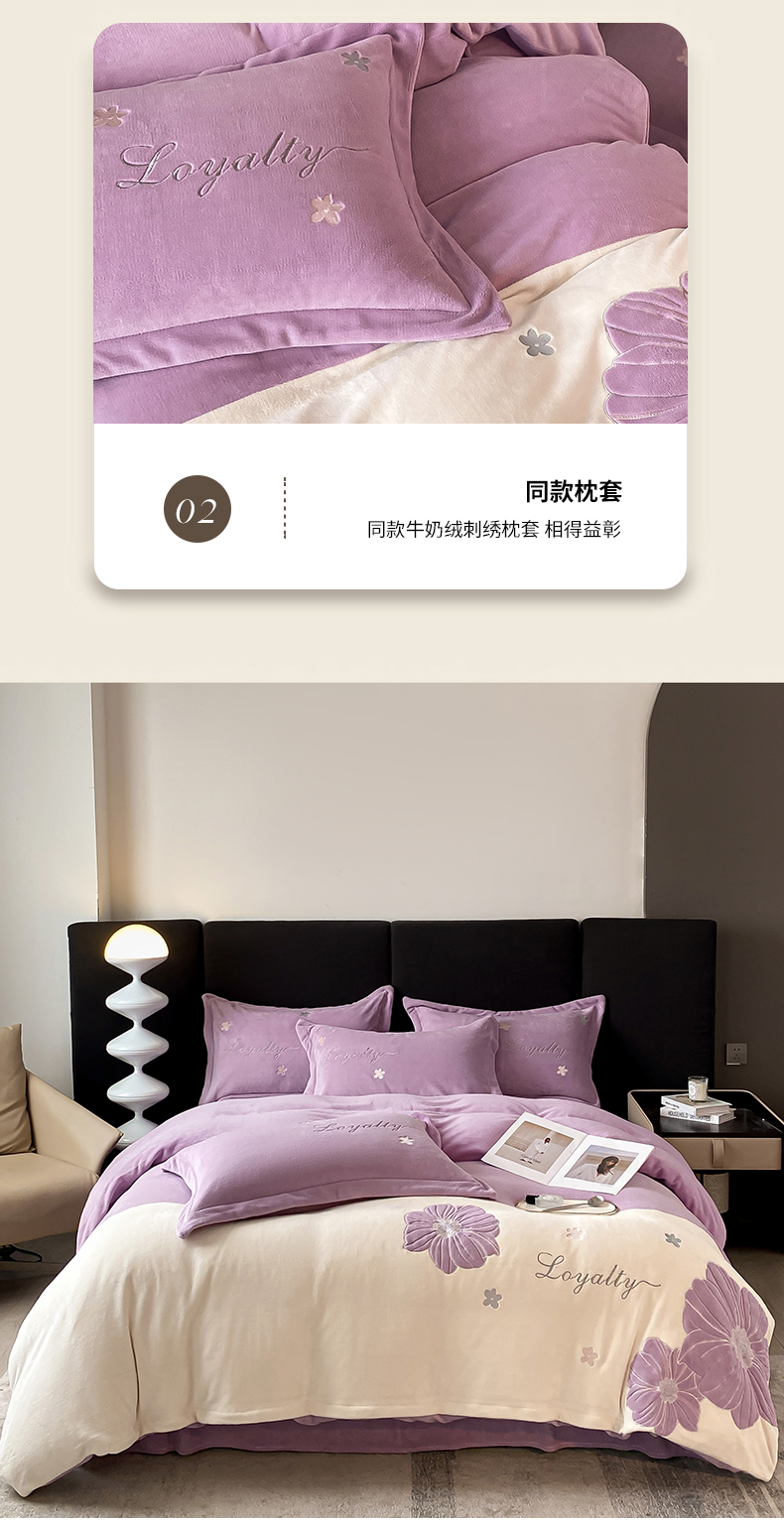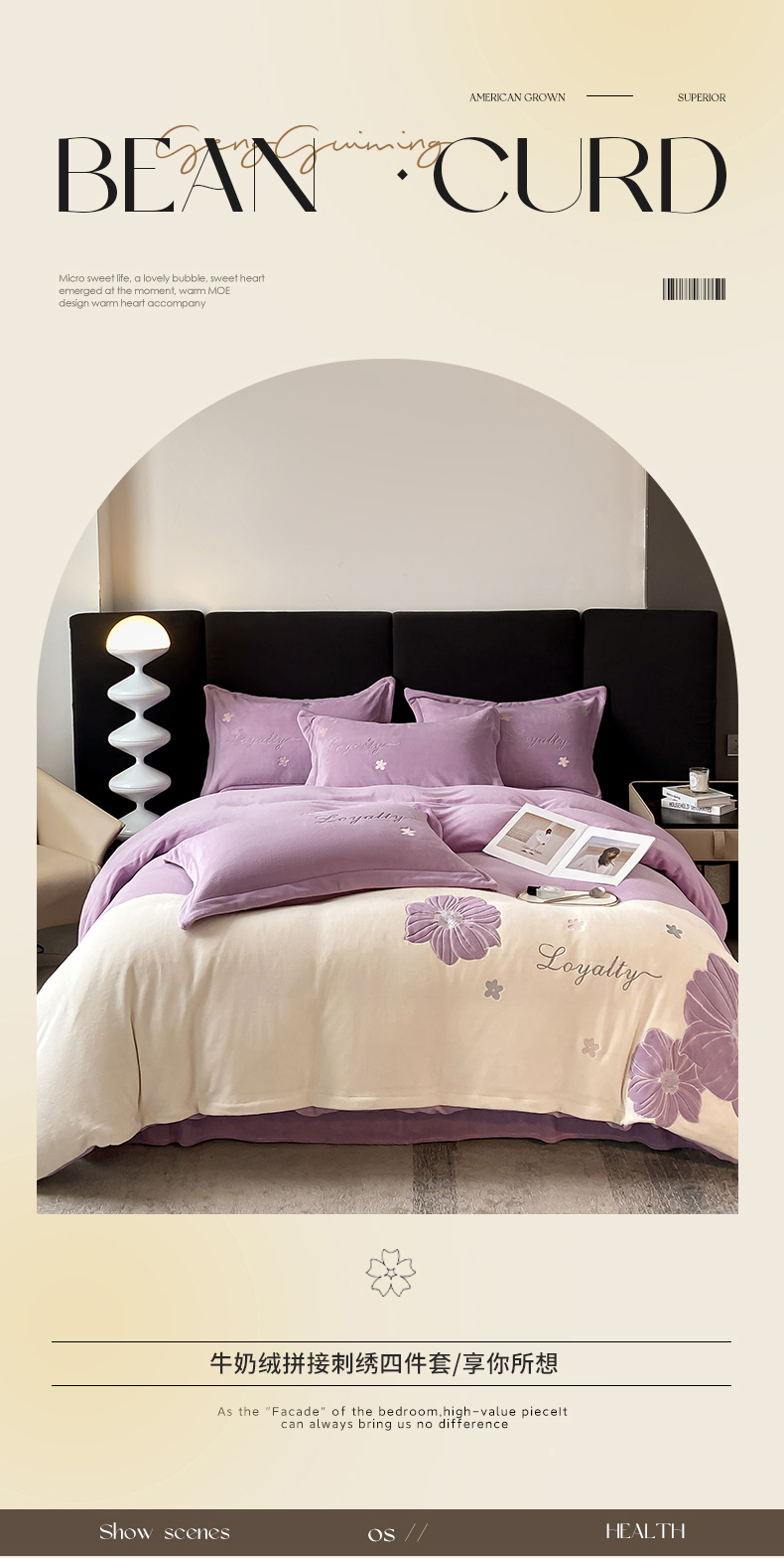 当前位置: 91家纺网 > 商品网购 > 床品套件 > 四件套 > 牛奶绒四件套 > 你好美丽 2025新款200克A类牛奶绒贴布绣大阪四件套雅漾-芬芳 芬芳紫