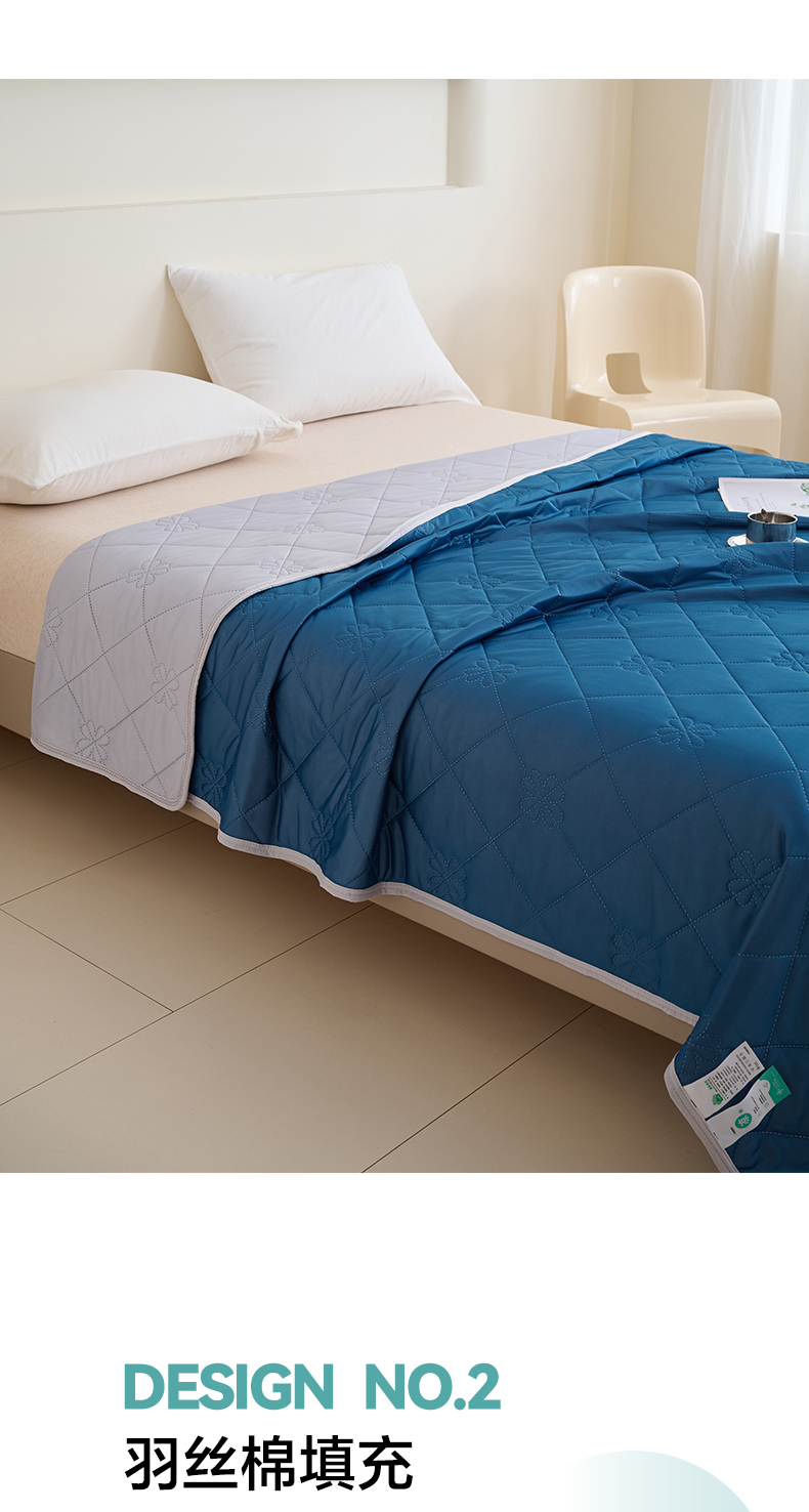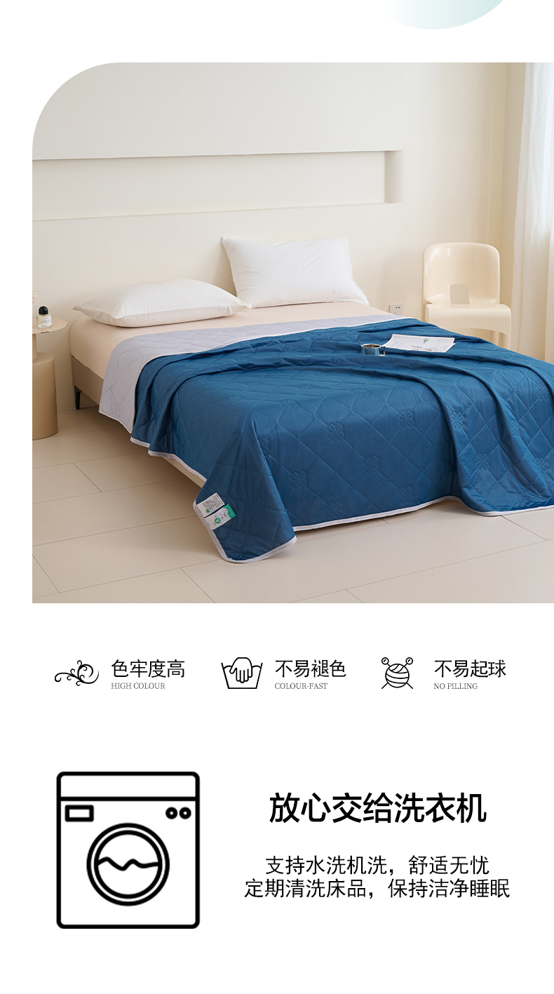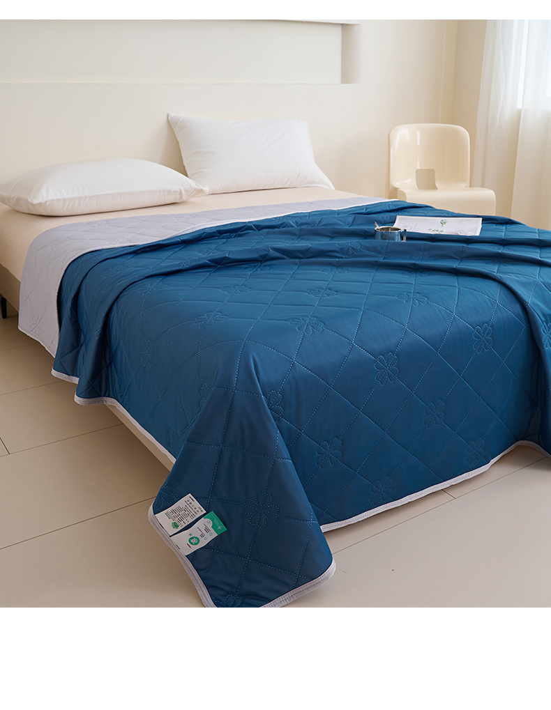 商品名称:畅销被业 2025新款A类凉感丝纯色压花夏被系列直播外贸跨境 湖蓝