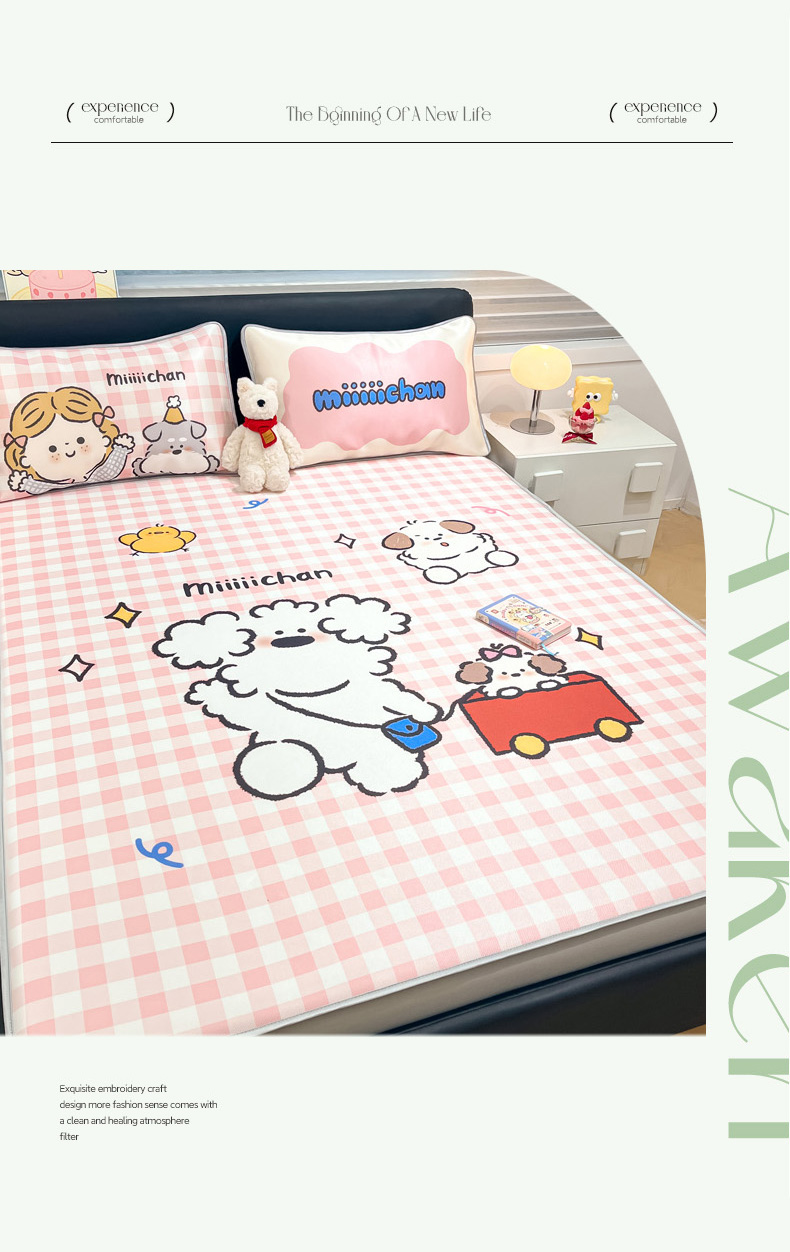 当前位置: 91家纺网 > 商品网购 > 床上用品 > 凉席 > 冰丝席 > 暮思家居 2025新款正版miiiiichan可爱卡通大版数码印花A类1200D冰丝凉席三件套平铺床笠 狗狗乐园
