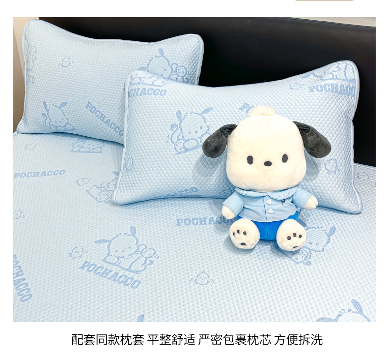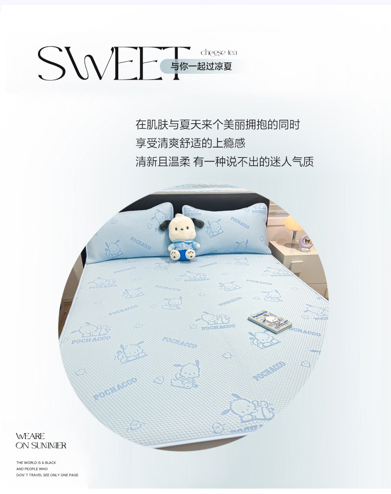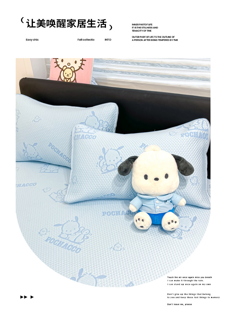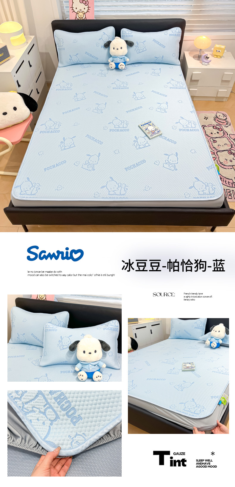 当前位置: 91家纺网 > 商品网购 > 床上用品 > 凉席 > 凉席套件 > 2025新款三丽鸥正版授权A类提花冰豆豆凉席平铺款床笠款系列_1409 冰豆豆-帕恰狗-蓝
