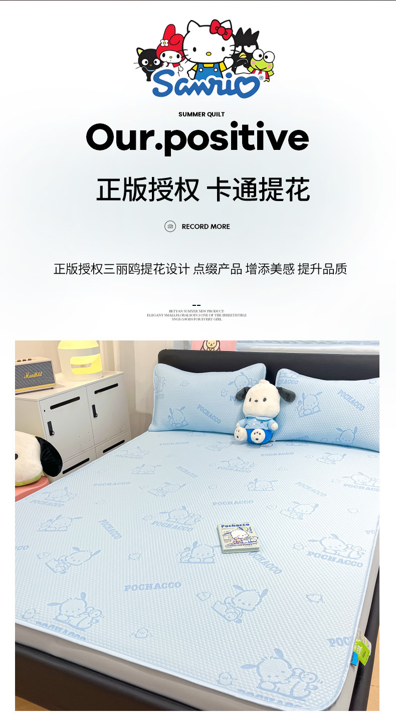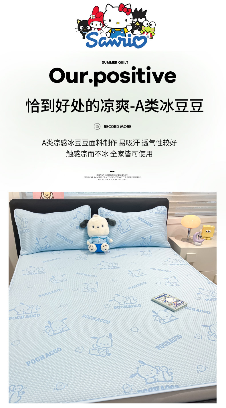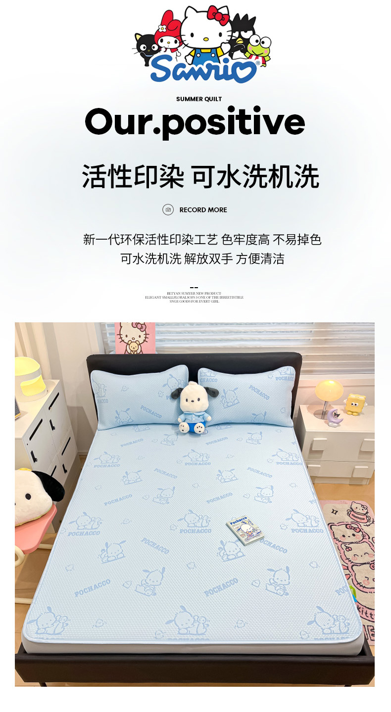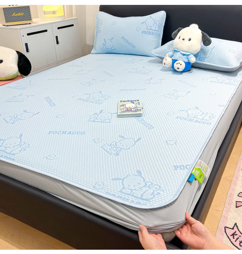 当前位置: 91家纺网 > 商品网购 > 床上用品 > 凉席 > 凉席套件 > 2025新款三丽鸥正版授权A类提花冰豆豆凉席平铺款床笠款系列_1409 冰豆豆-帕恰狗-蓝