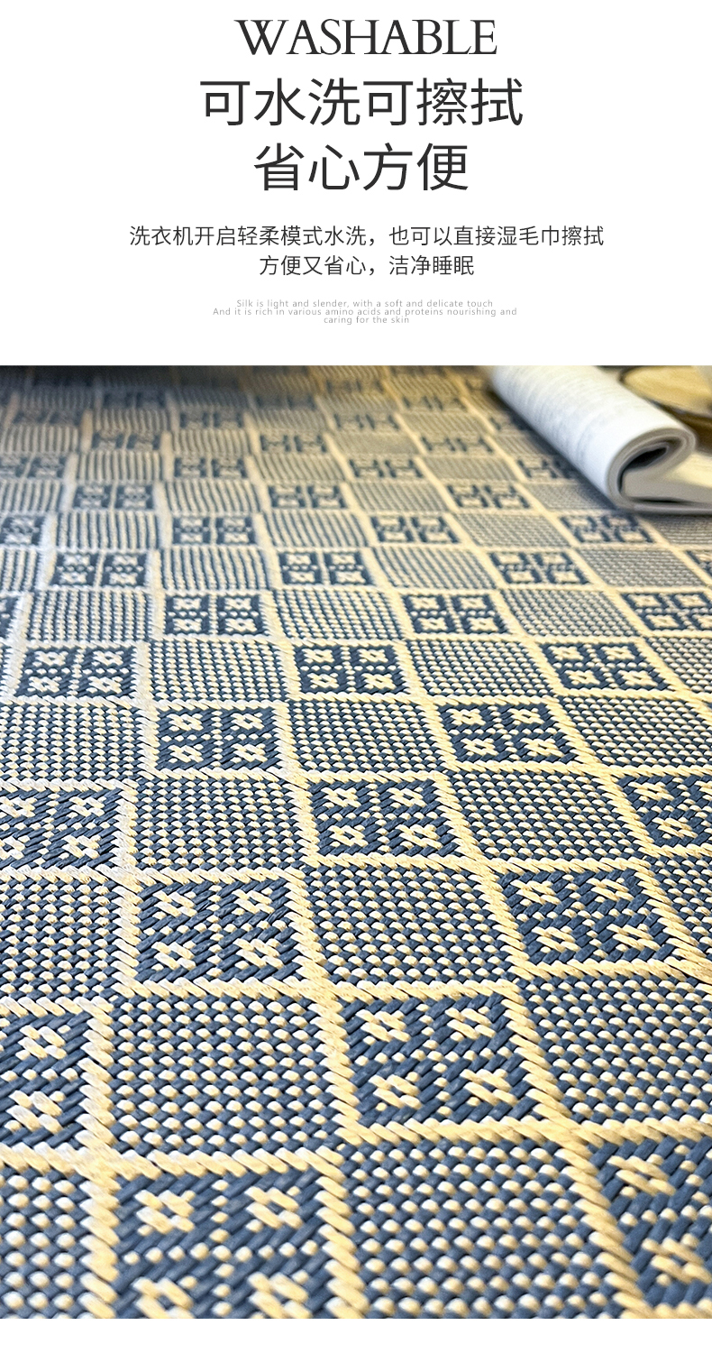 商品名称:麒豆豆 2025新款花边床笠款冰藤席-夏之语 花青