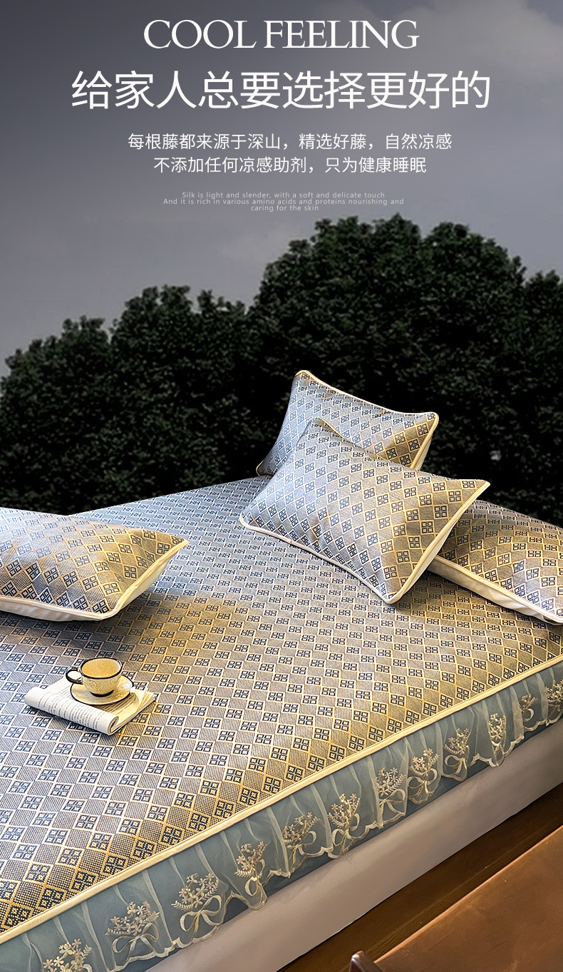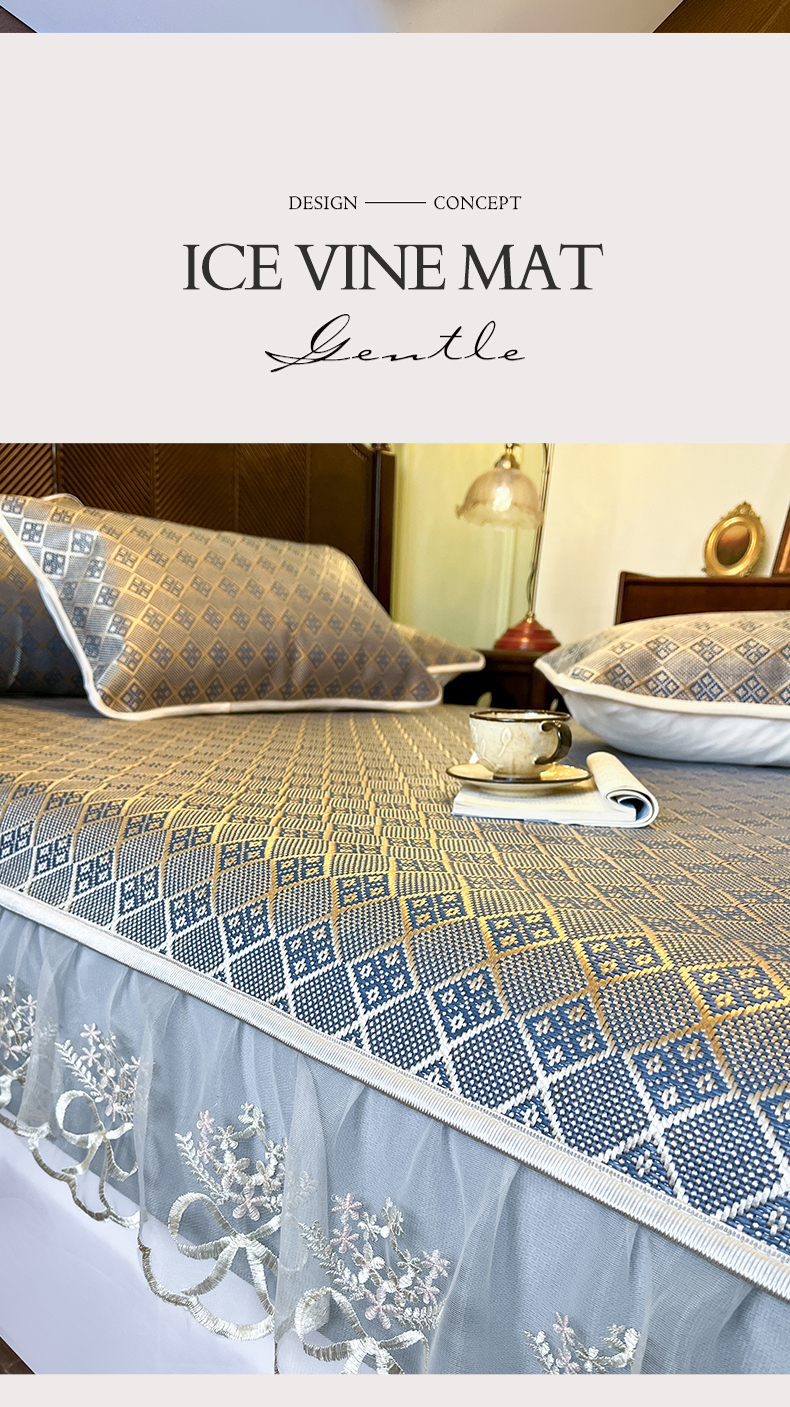 麒豆豆 2025新款花边床笠款冰藤席-夏之语 花青