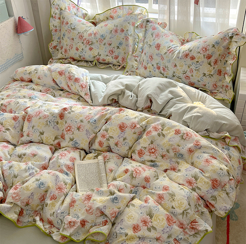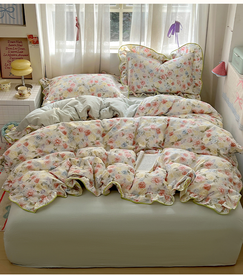 当前位置: 91家纺网 > 商品网购 > 床品套件 > 四件套 > 其它四件套 > 春光里 2025新款亲肤舒适木棉皱皱纱花边四件套 澜花
