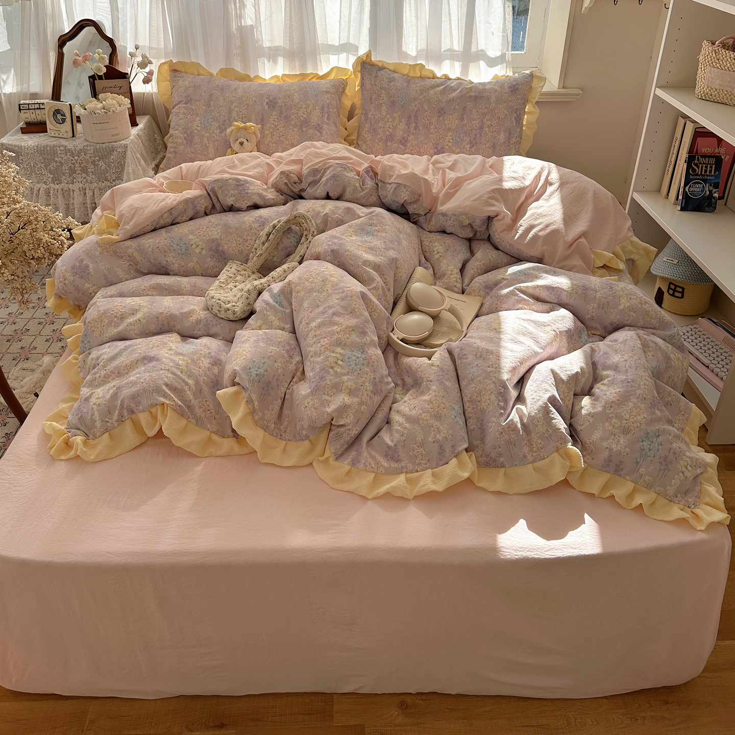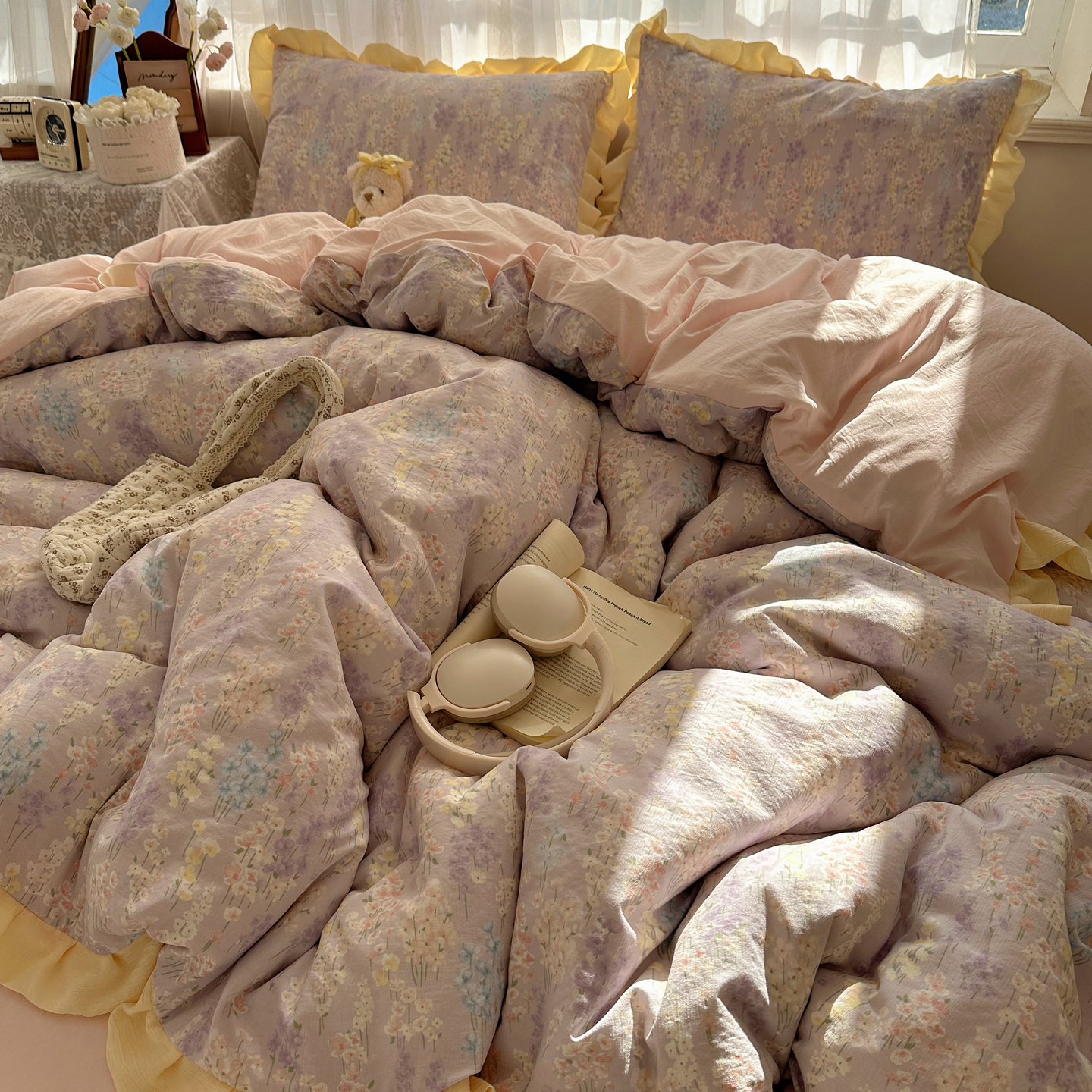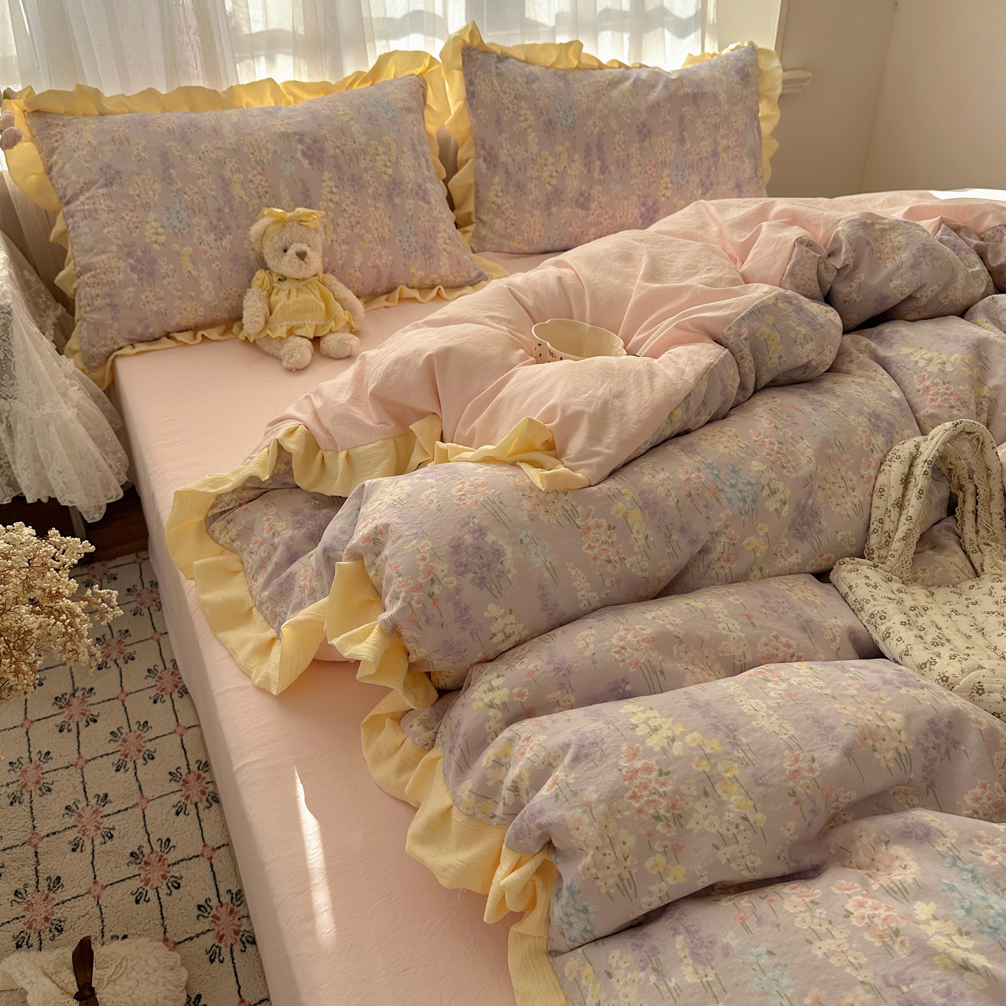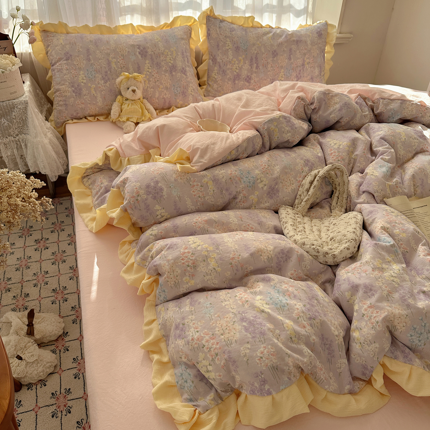 当前位置: 91家纺网 > 商品网购 > 床品套件 > 四件套 > 双层纱四件套 > 顾里家纺 2025新款韩系花边皱皱纱四件套 花涧溪