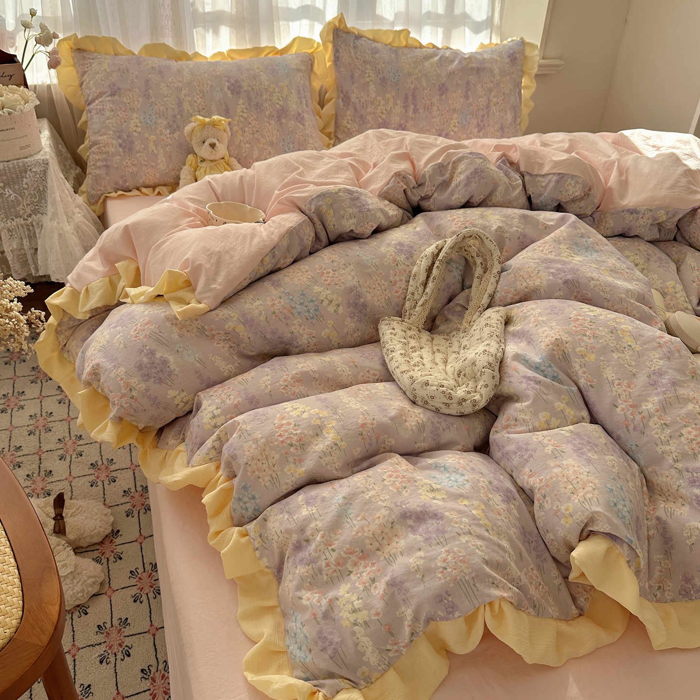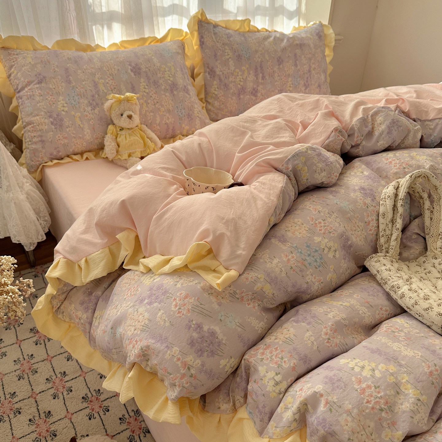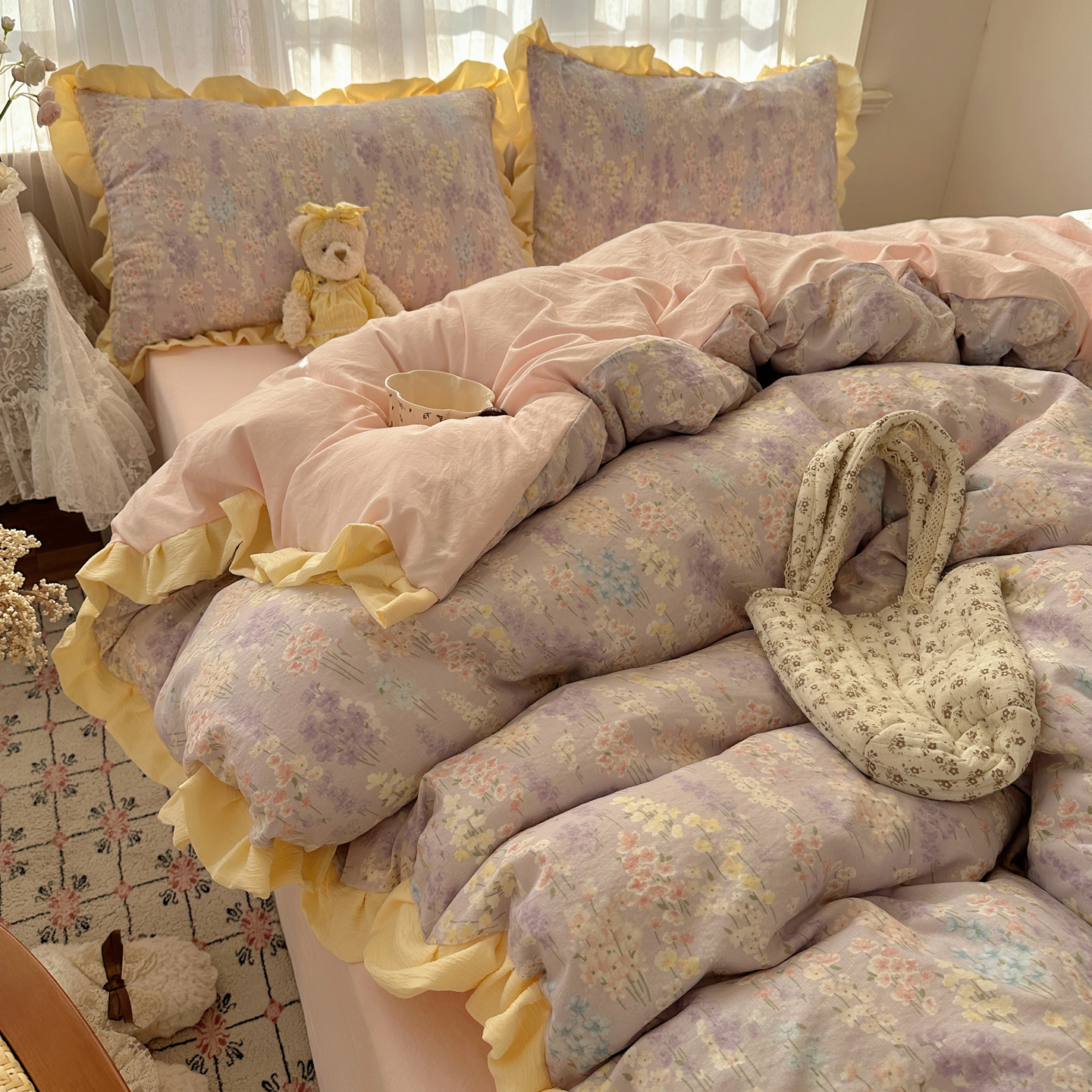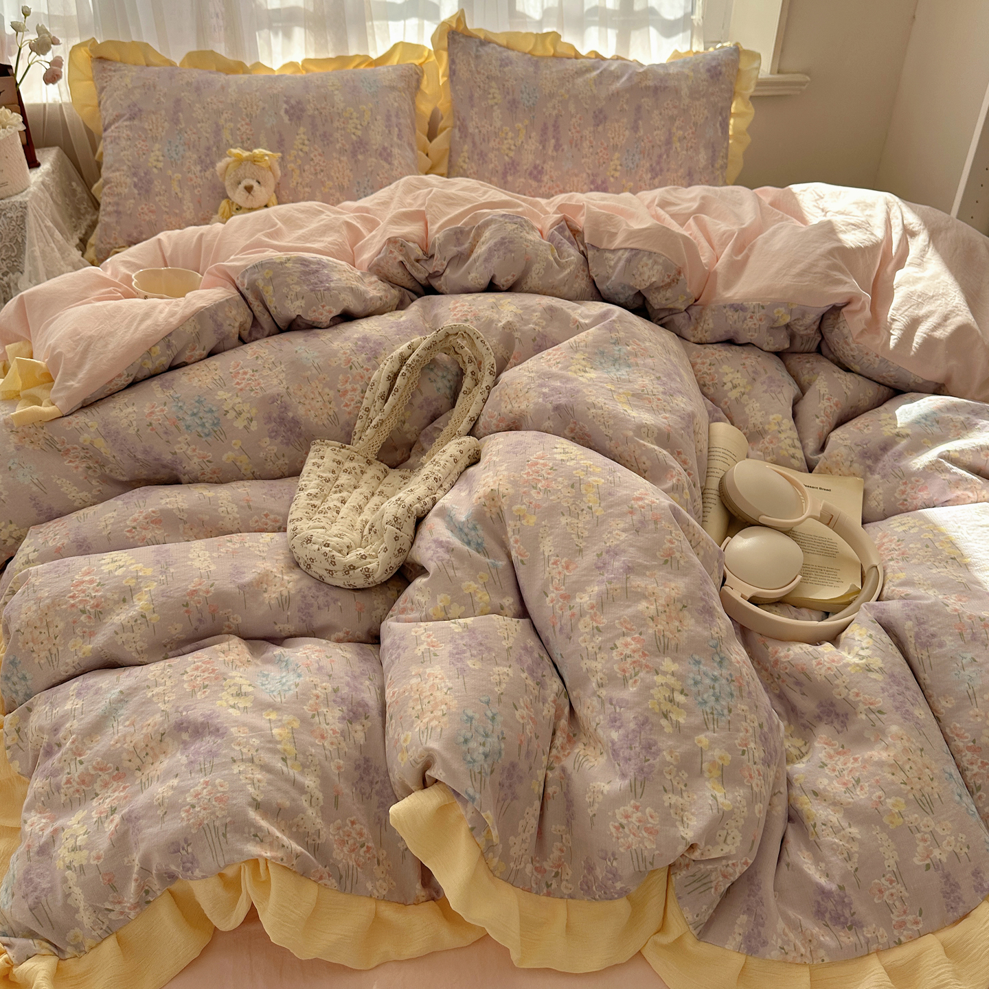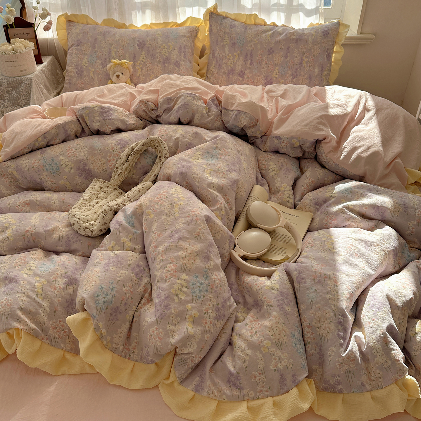 当前位置: 91家纺网 > 商品网购 > 床品套件 > 四件套 > 双层纱四件套 > 顾里家纺 2025新款韩系花边皱皱纱四件套 花涧溪