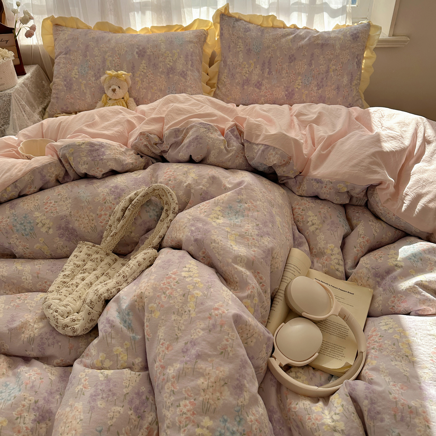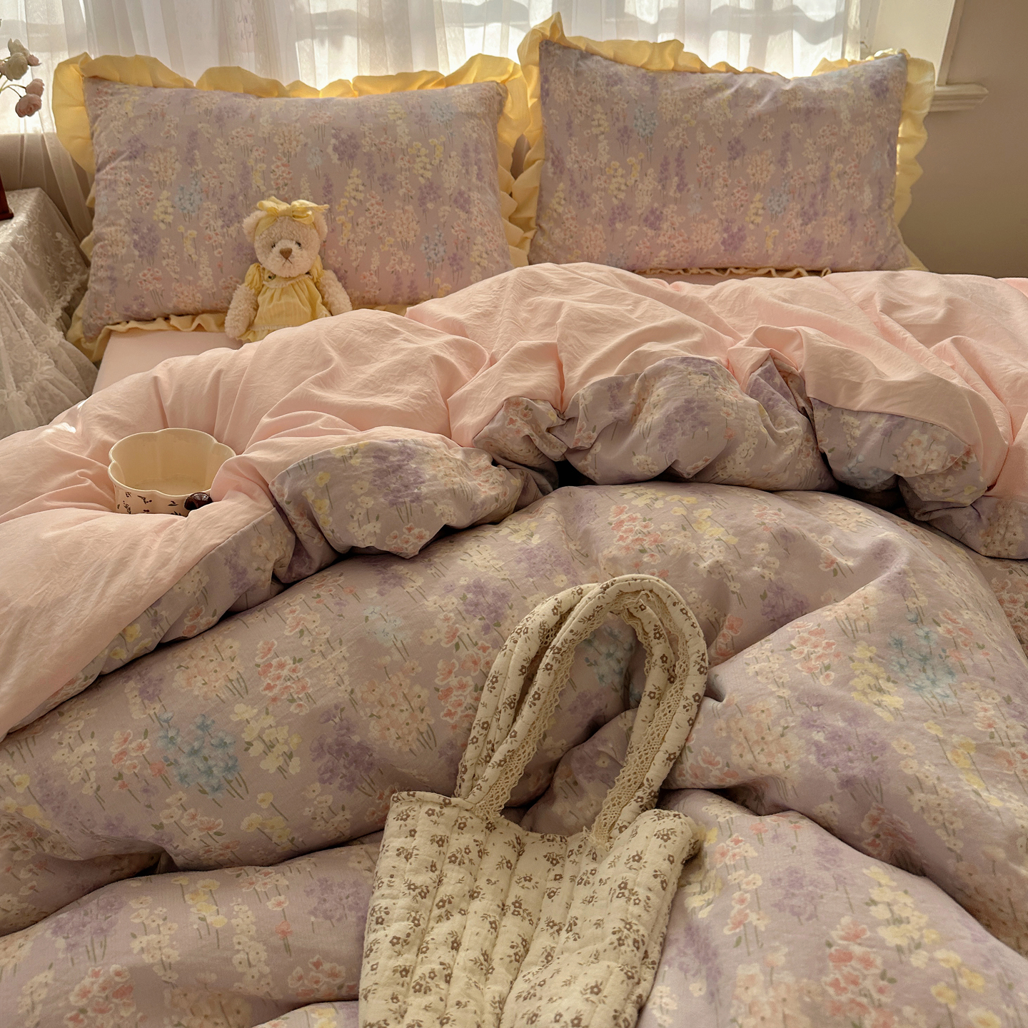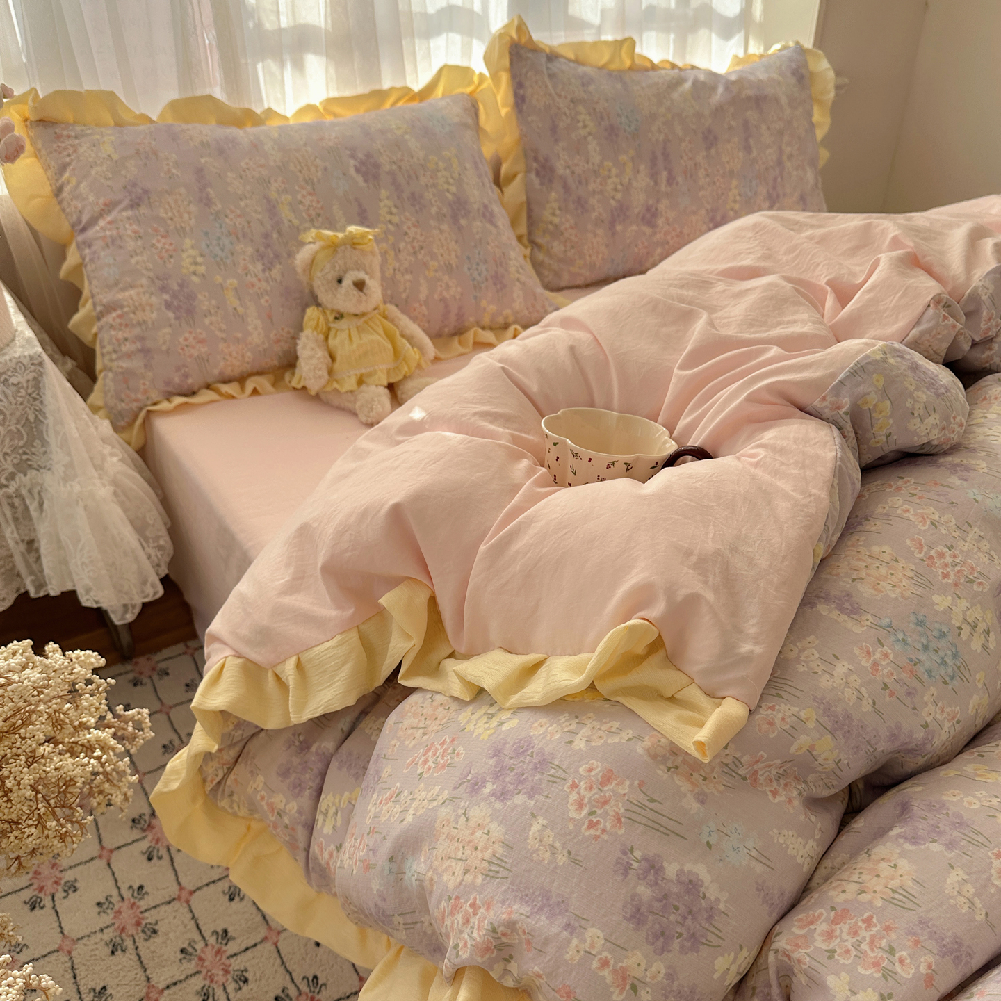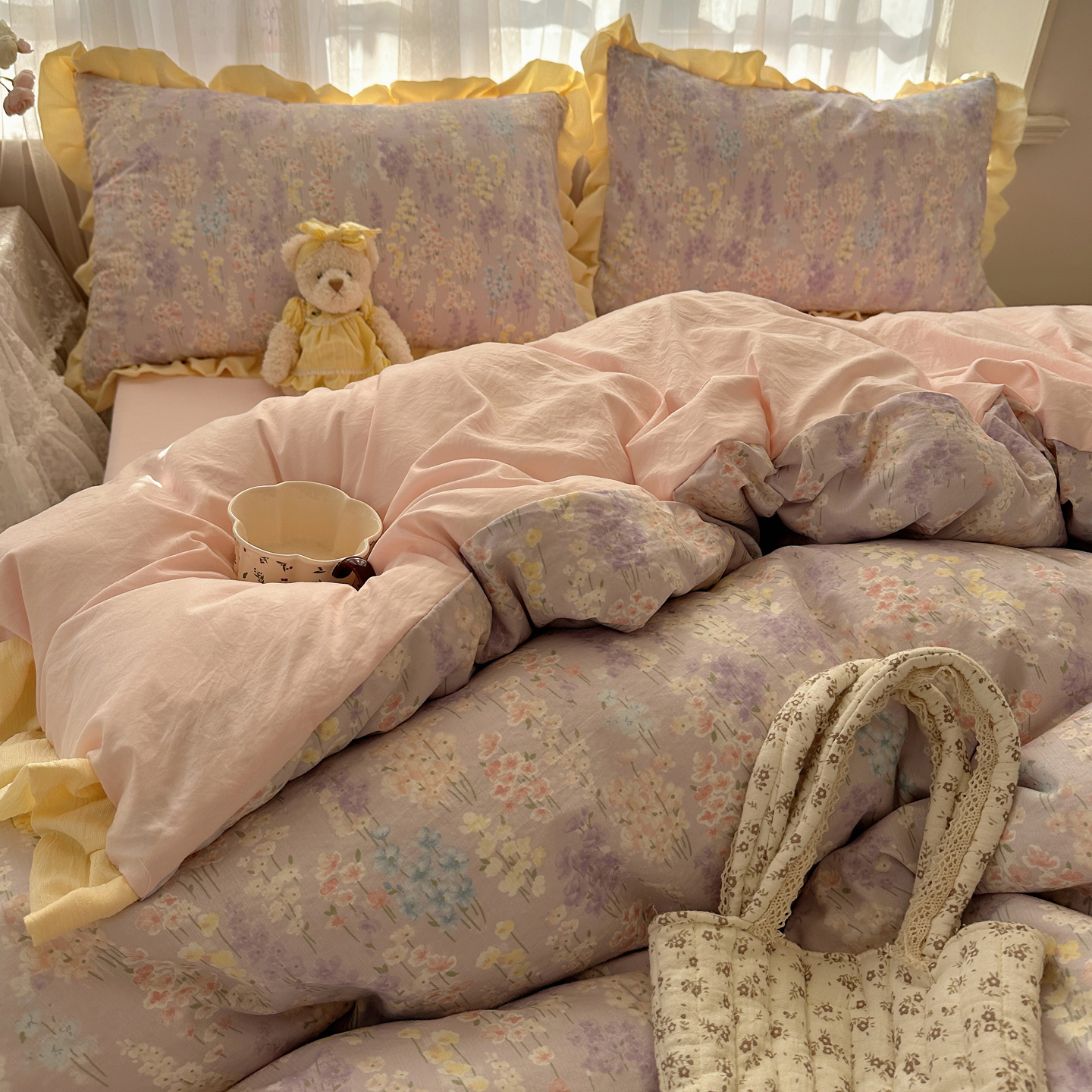 当前位置: 91家纺网 > 商品网购 > 床品套件 > 四件套 > 双层纱四件套 > 顾里家纺 2025新款韩系花边皱皱纱四件套 花涧溪