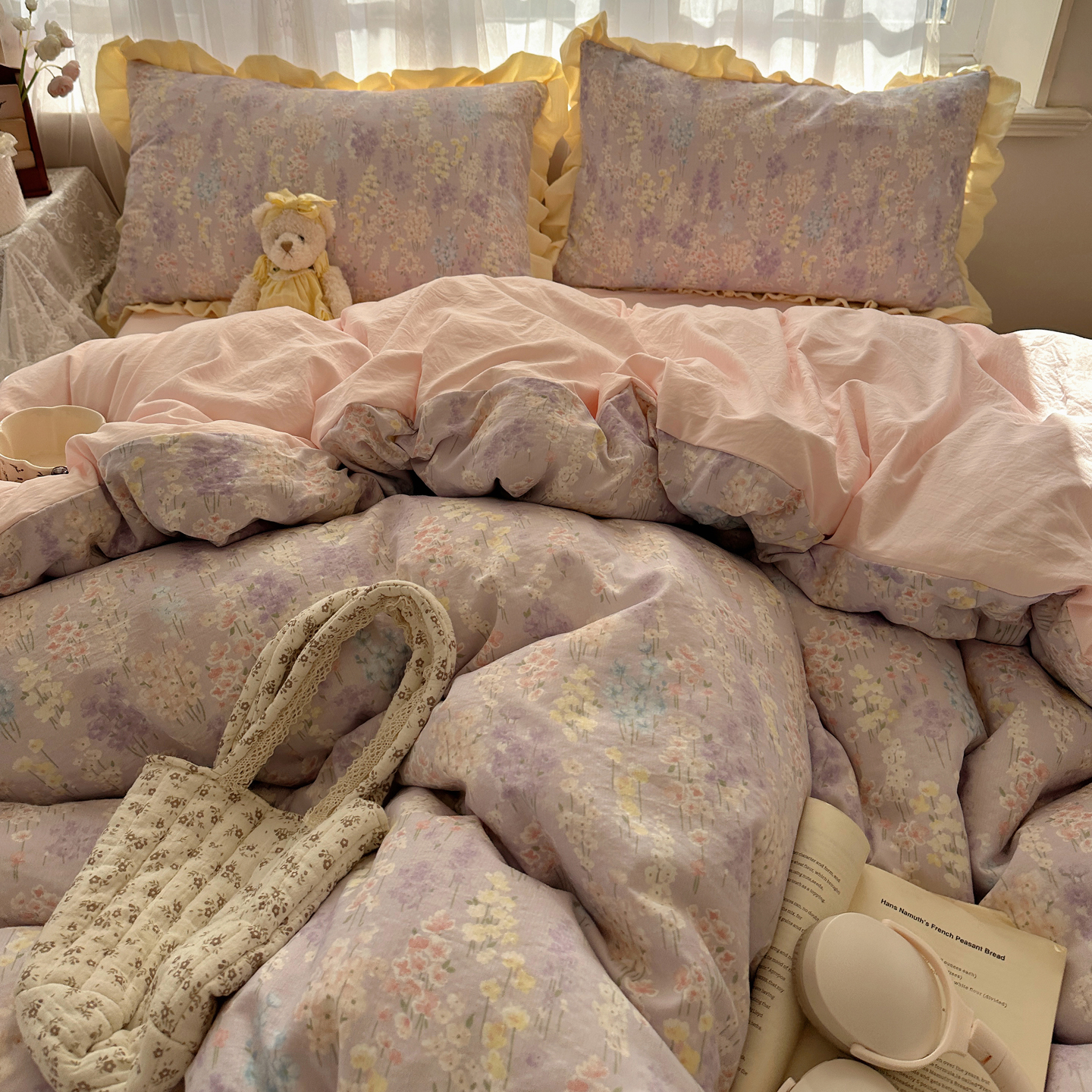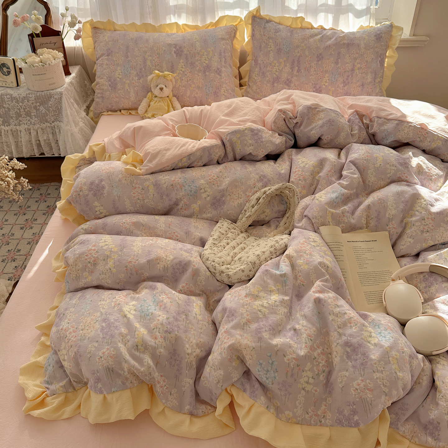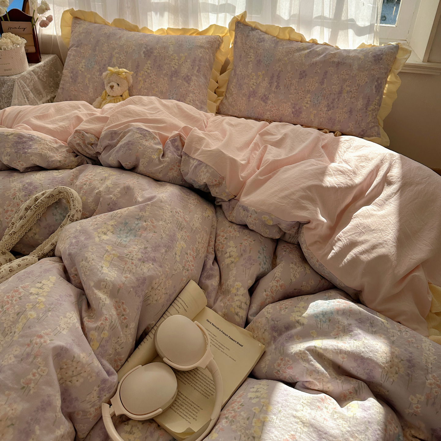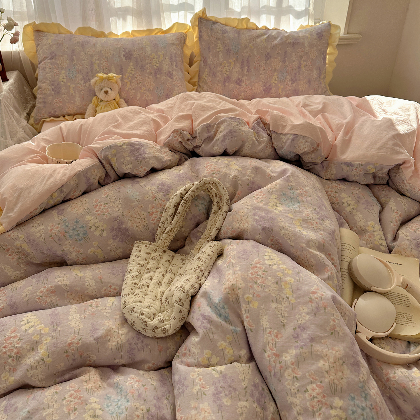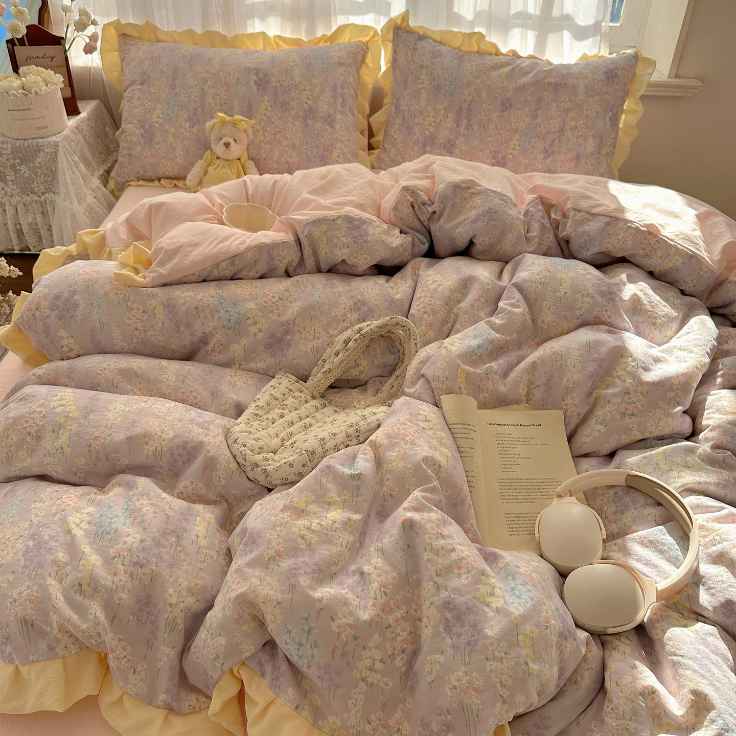 当前位置: 91家纺网 > 商品网购 > 床品套件 > 四件套 > 双层纱四件套 > 顾里家纺 2025新款韩系花边皱皱纱四件套 花涧溪