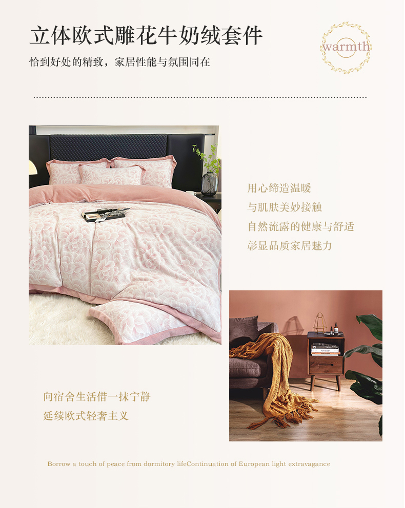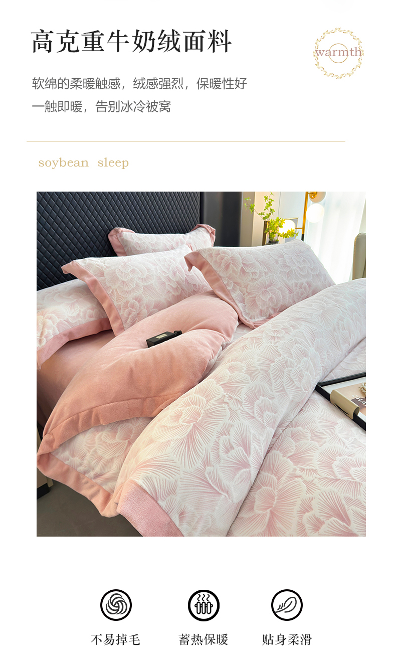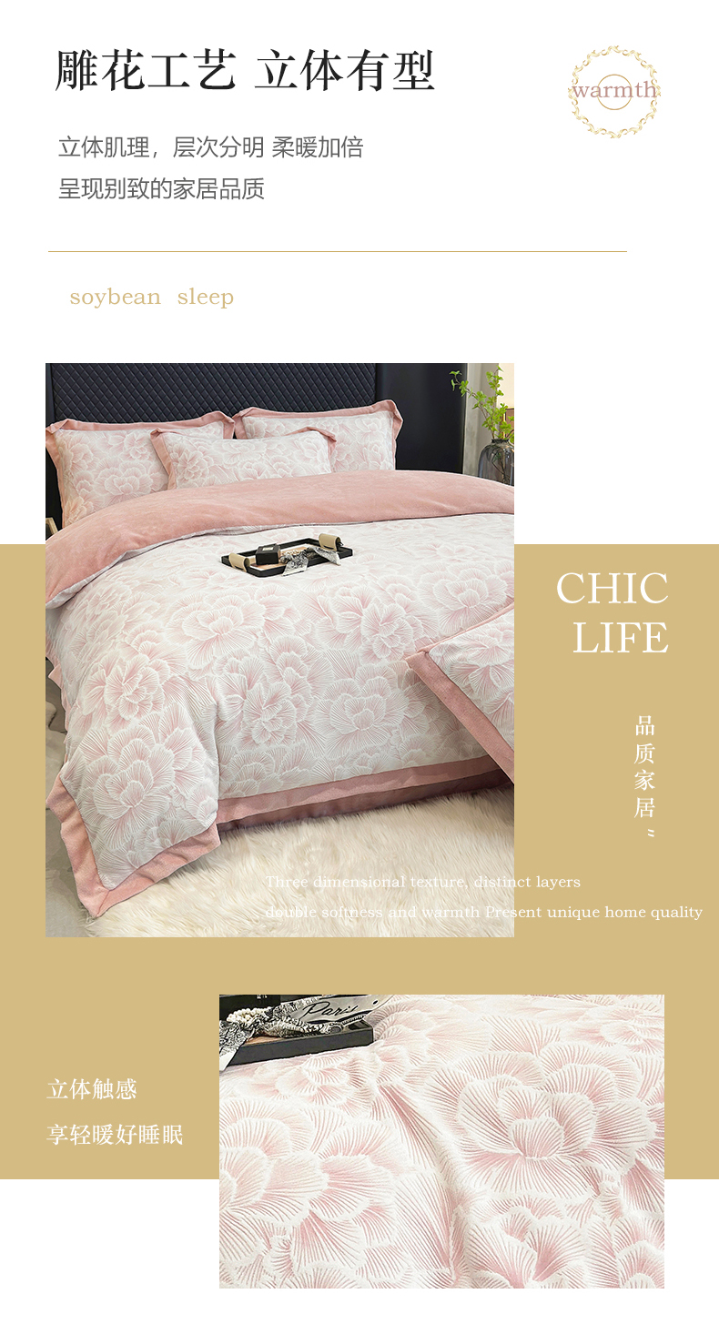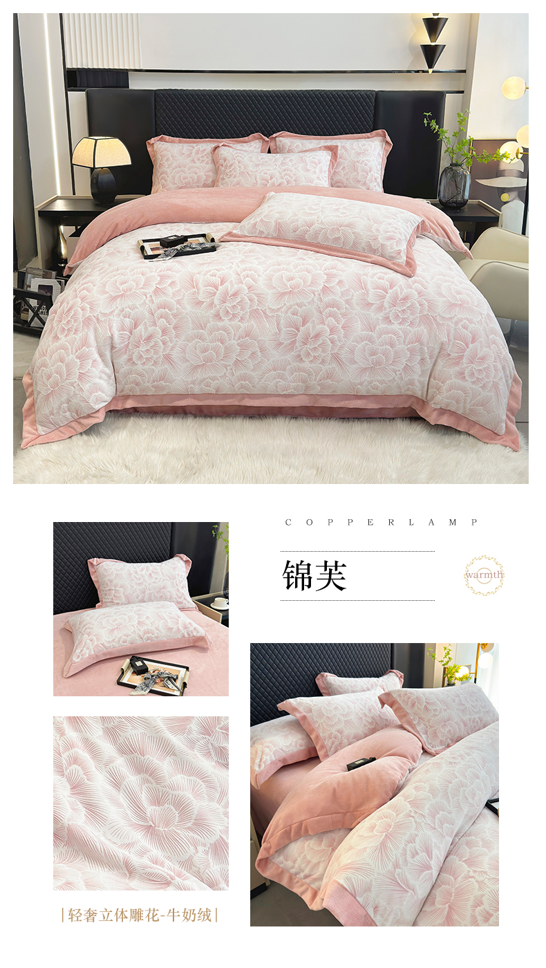 梦精灵家纺 2025新款高克重加厚雕花牛奶绒四件套 锦芙