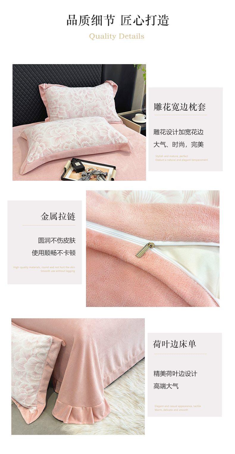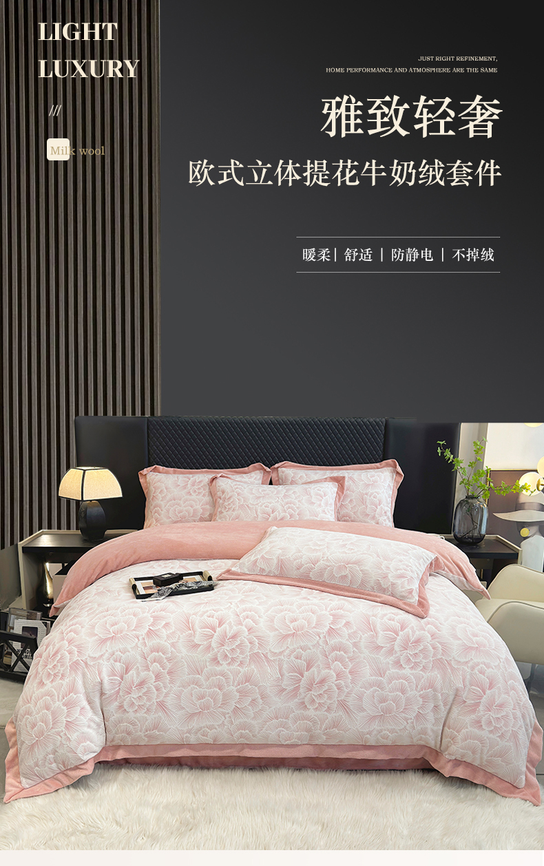 商品名称:梦精灵家纺 2025新款高克重加厚雕花牛奶绒四件套 锦芙