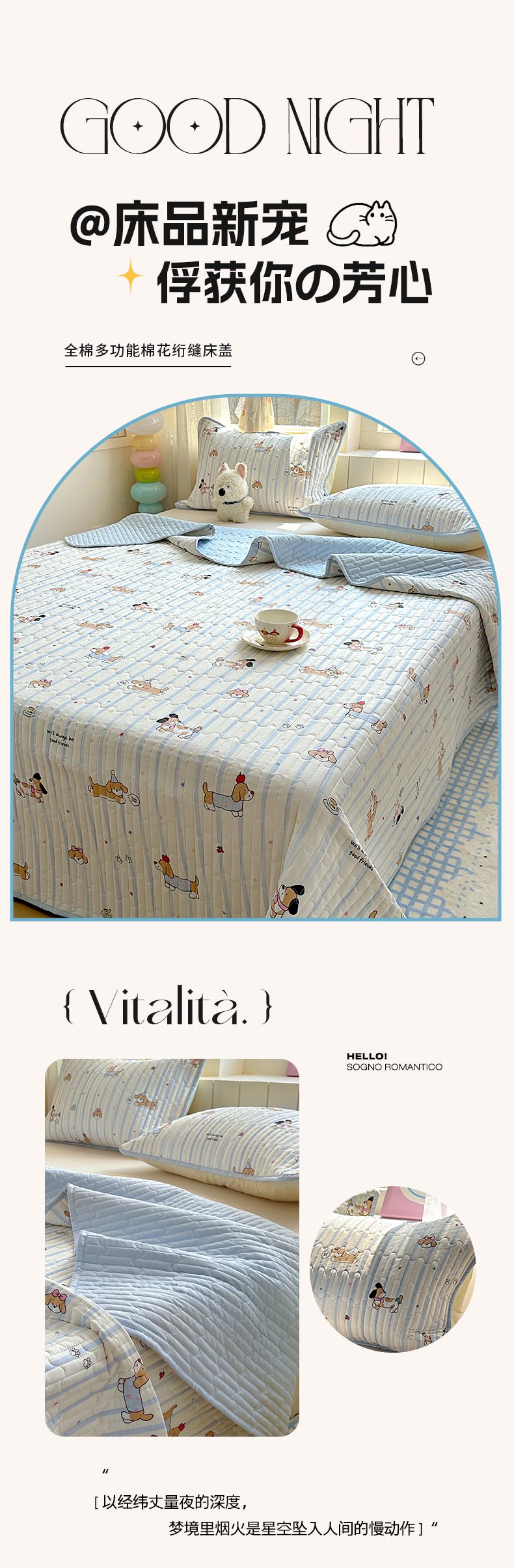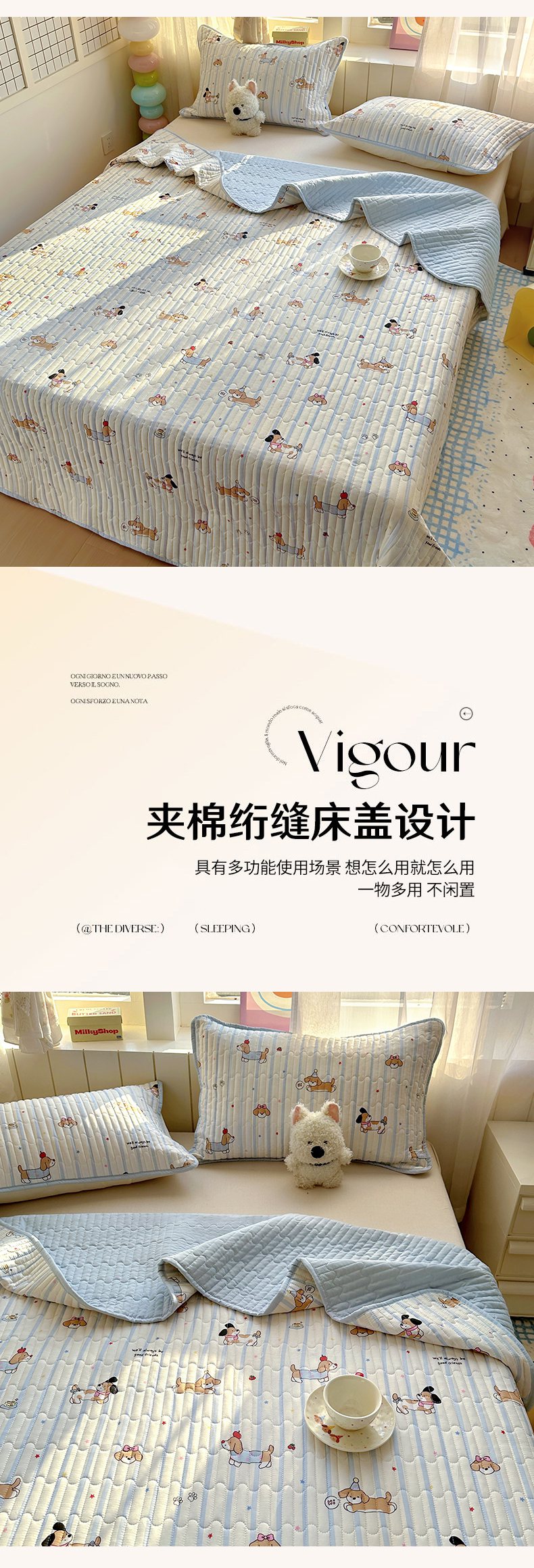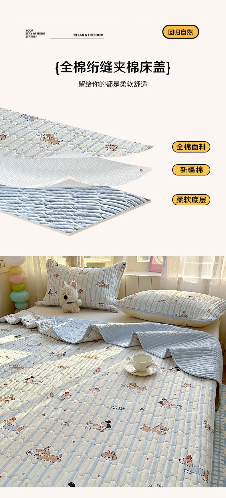 • 91家纺网 家纺一手货源 找家纺 暖萌 2025新款A类全棉棉花床盖印花三件套 宠物时间-米,宠物时间-米