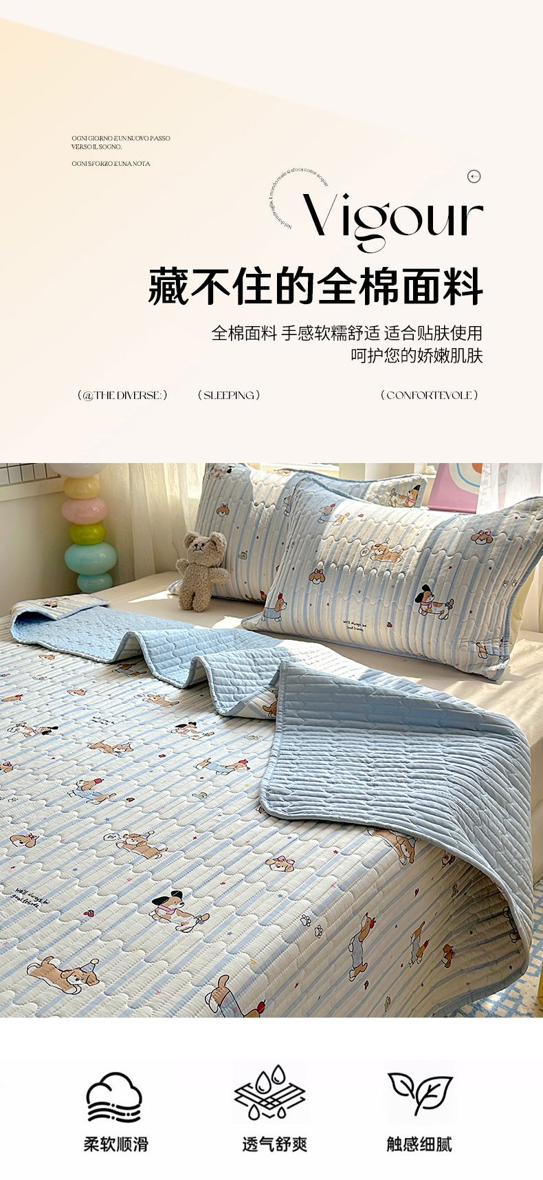 (总)暖萌 2025新款A类全棉棉花床盖印花三件套,仙草,糖纸童年,比利熊,采薇兔,宠物时间-米,黑白涂鸦,花蜜-绿,浆果小兔,快乐魔法,拉布兔兔,觅秋,碎花小熊,糖果幼儿园,童趣绘彩,幽兰花谷,遇见浪漫