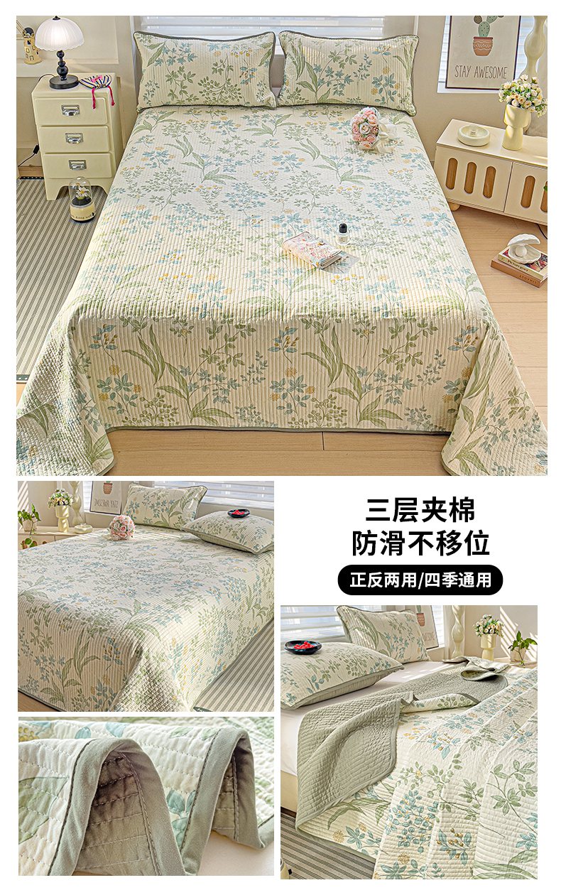 • 91家纺网 家纺一手货源 找家纺 暖萌 2025新款A类全棉棉花床盖印花系列三件套 幽兰花谷,幽兰花谷