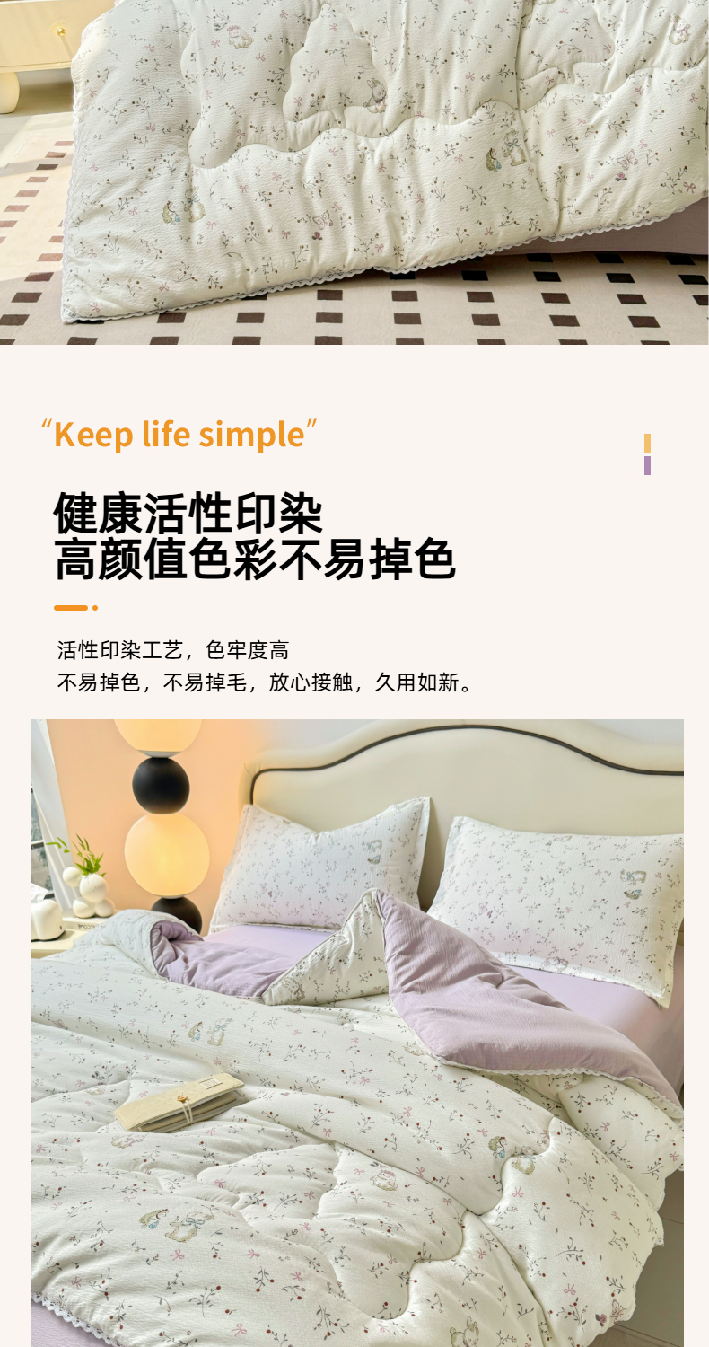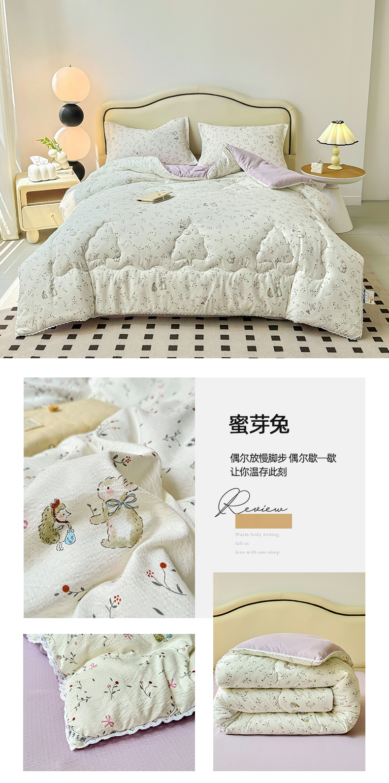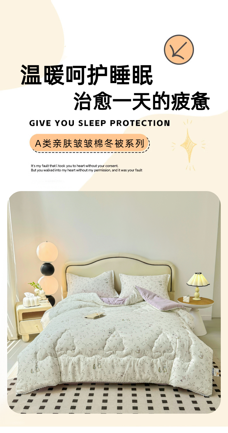 • 91家纺网 家纺一手货源 找家纺 鑫贝阳 2025新款A类亲肤邹邹纱冬被被子被芯 蜜芽兔