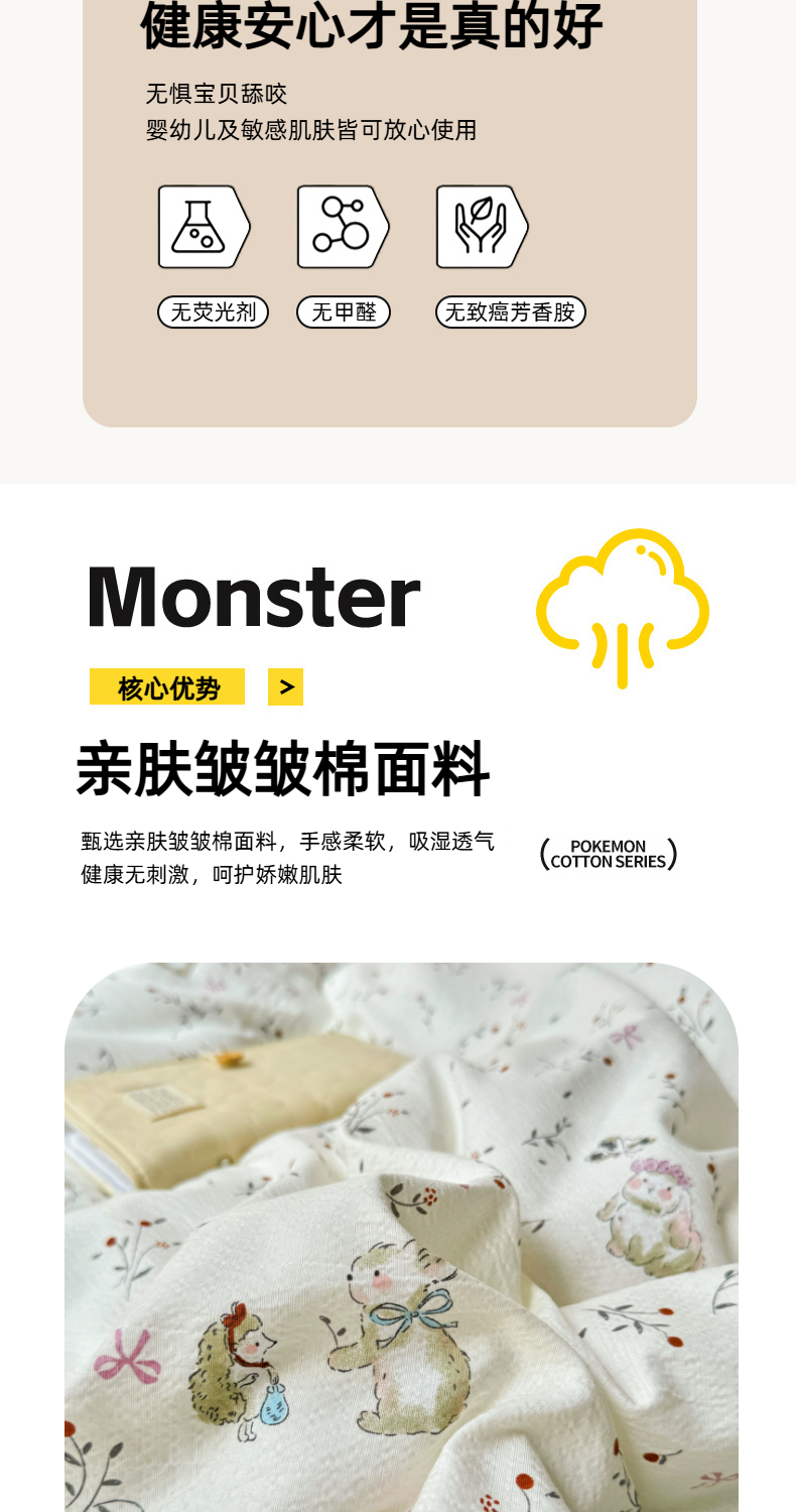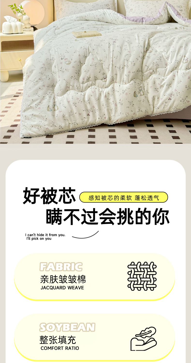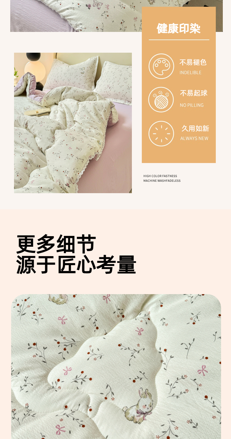 • 91家纺网 家纺一手货源 找家纺 鑫贝阳 2025新款A类亲肤邹邹纱冬被被子被芯 蜜芽兔