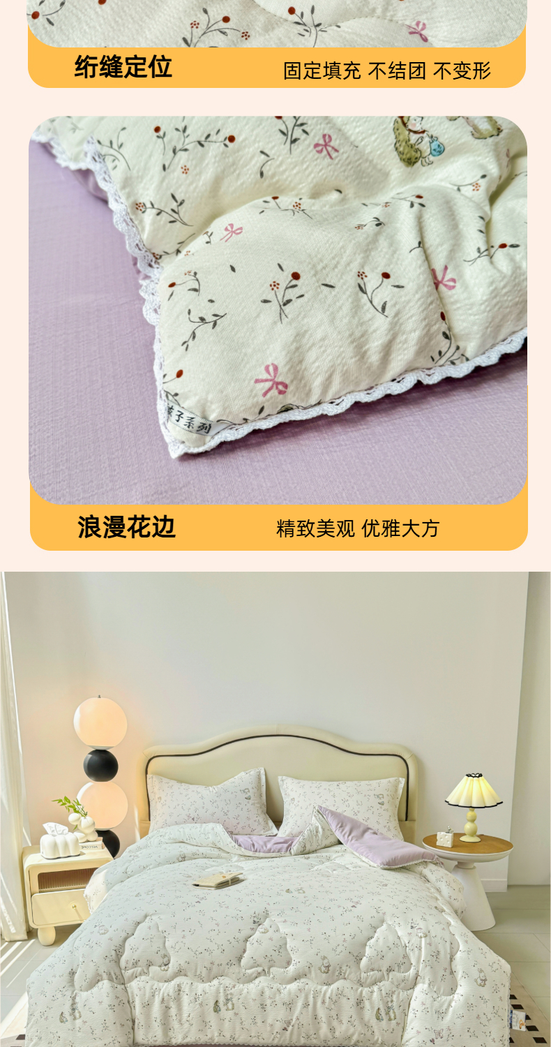 (总)鑫贝阳 2025新款A类亲肤邹邹纱冬被被子被芯,彩色蝴蝶结,兰香入梦,美娜,蜜芽兔,心动波点,音乐家