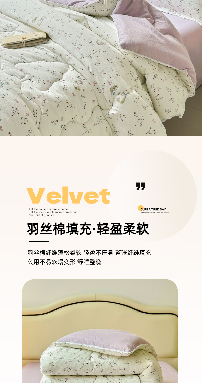 (总)鑫贝阳 2025新款亲肤水洗棉小花边印花夏被,动物乐园,爱心笑脸,花海,花漫,萝卜兔,夏花,小草莓,蘑菇森林,绚熊,小恐龙,星空粉