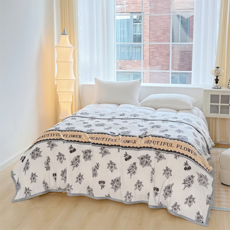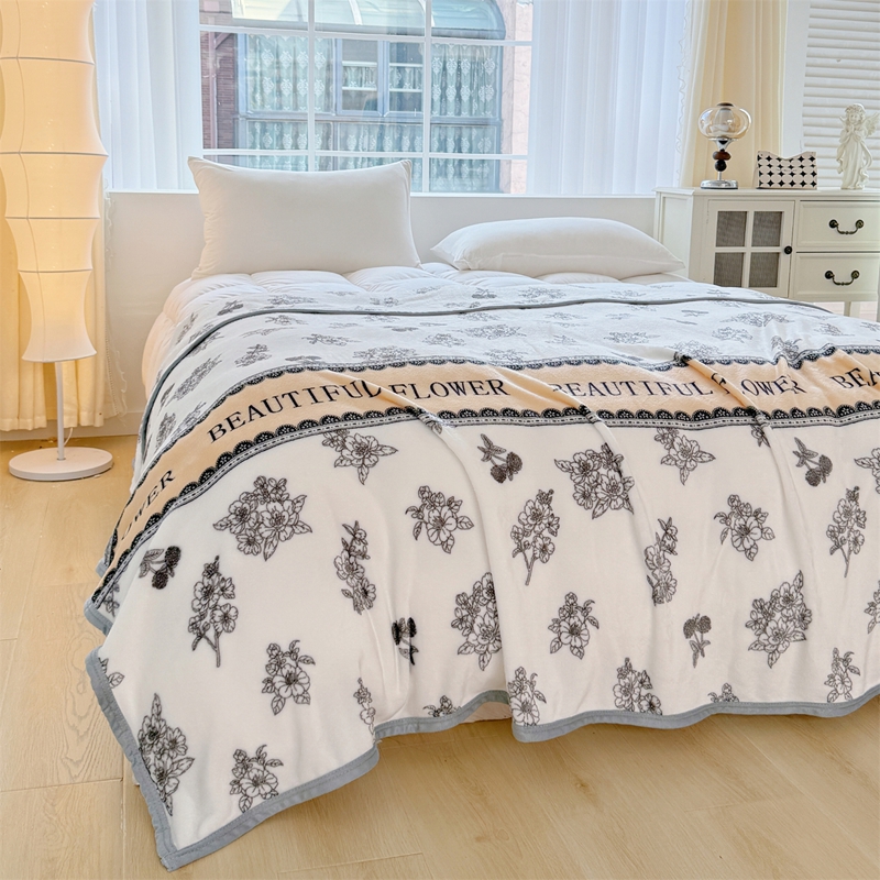 商品名称:梵心 2025新款云貂绒毛毯法兰绒毛毯牛奶绒毛毯爆款盖毯直播跨境专供-可定制克重 花影