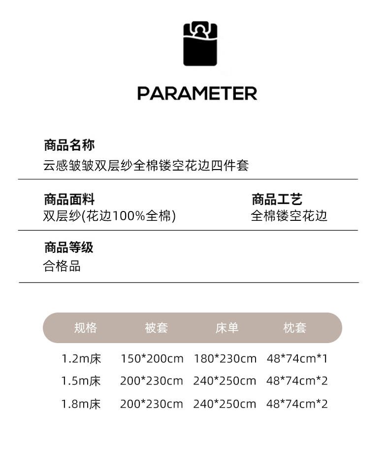 商品名称:乐沐家纺 2025新款云感皱皱双层纱全棉镂空花边四件套 春日兔语