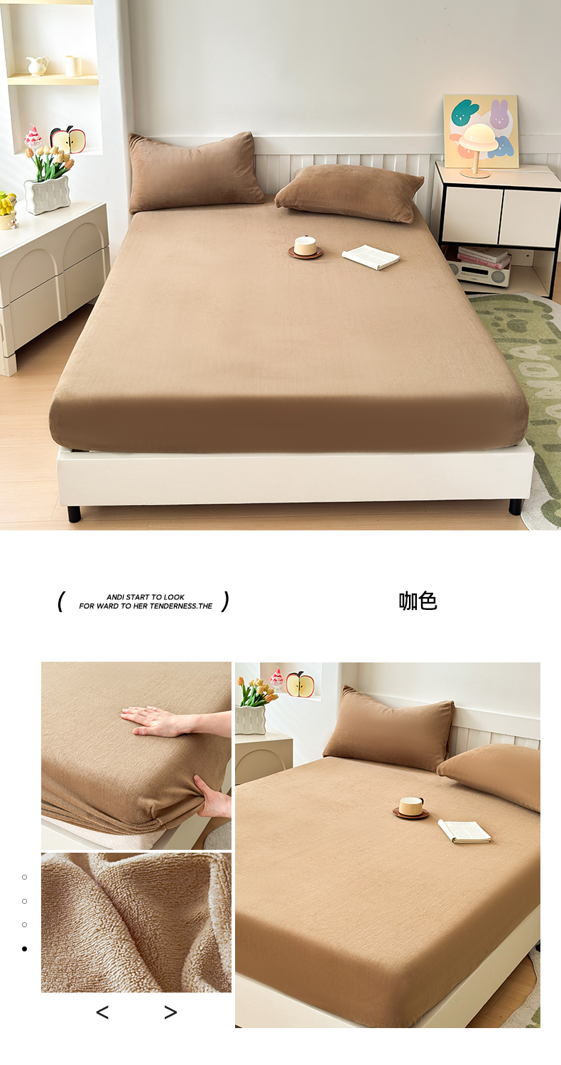 • 91家纺网 家纺一手货源 找家纺 富阿娜家纺 2025新款牛奶绒纯色床笠三件套 咖色