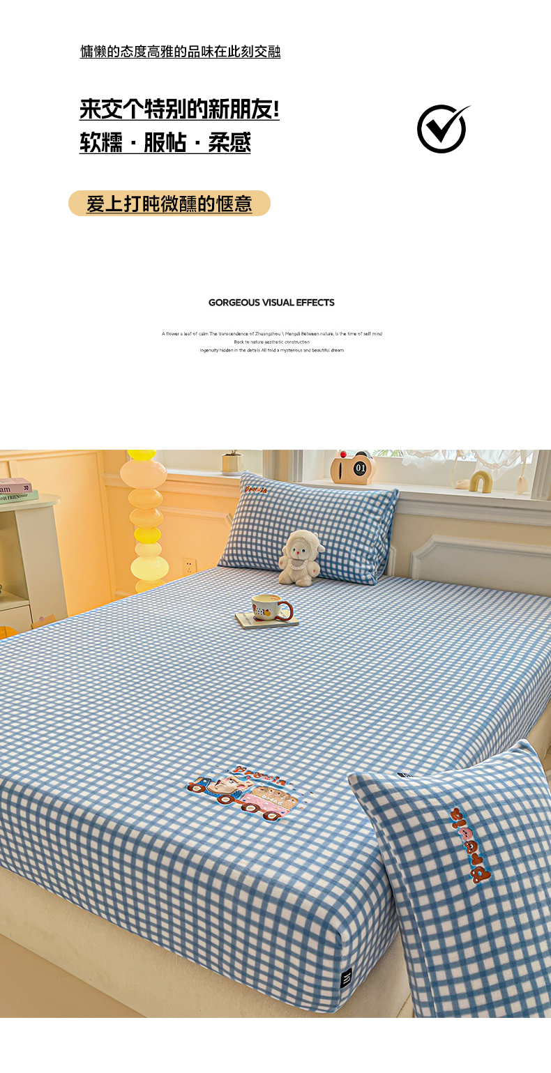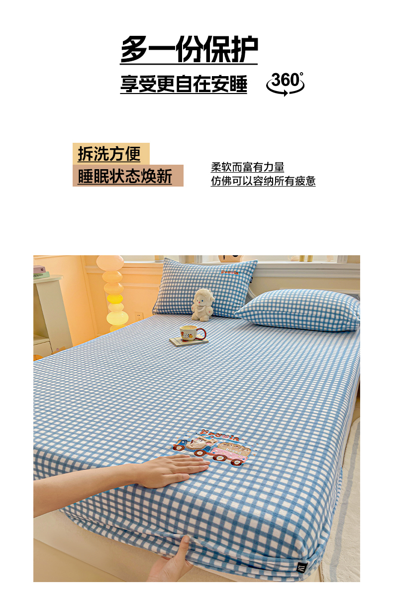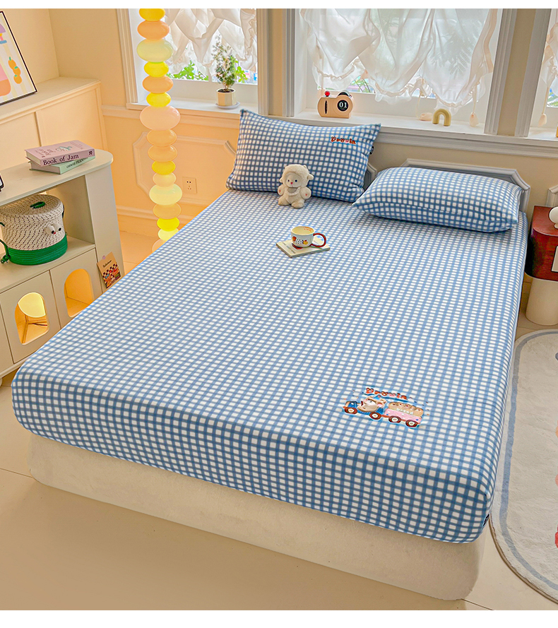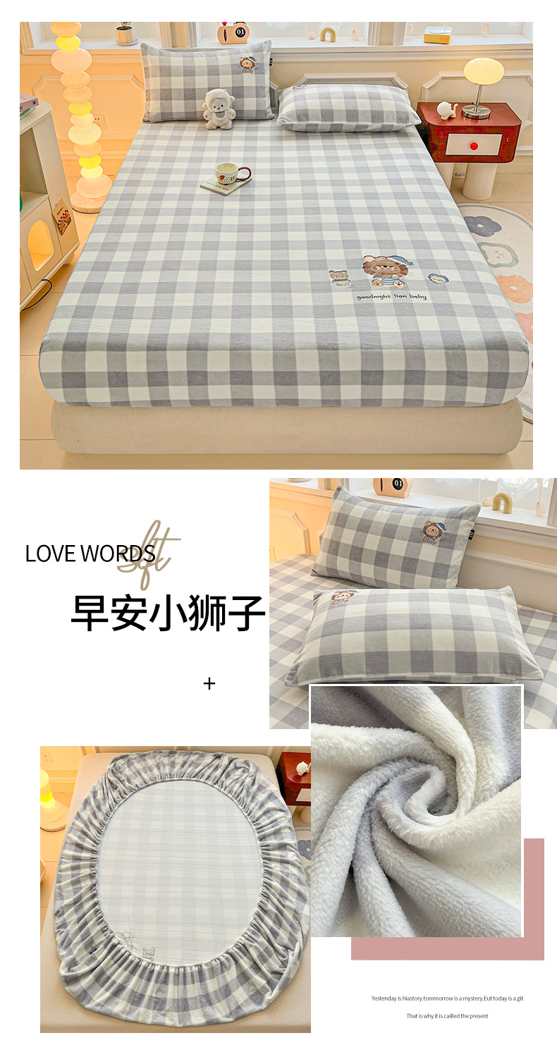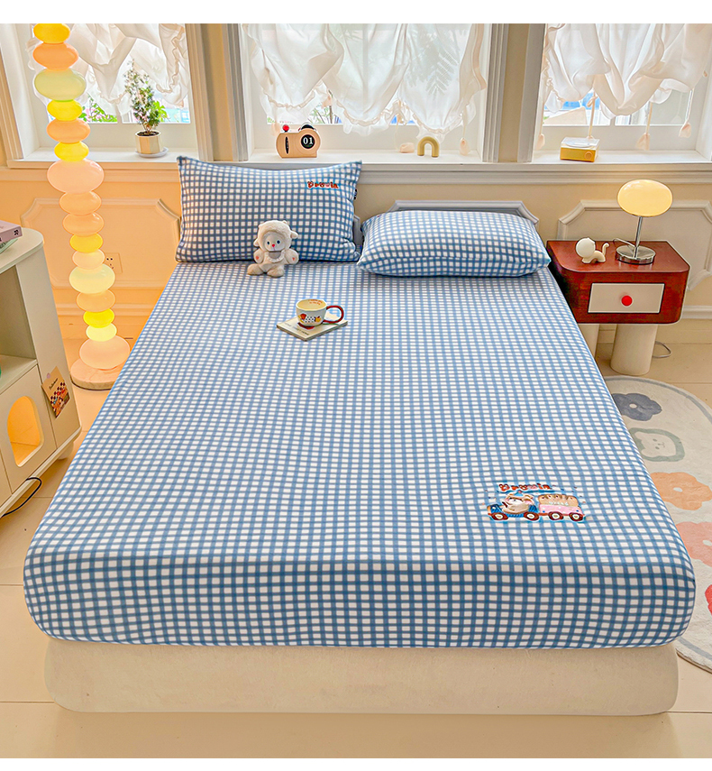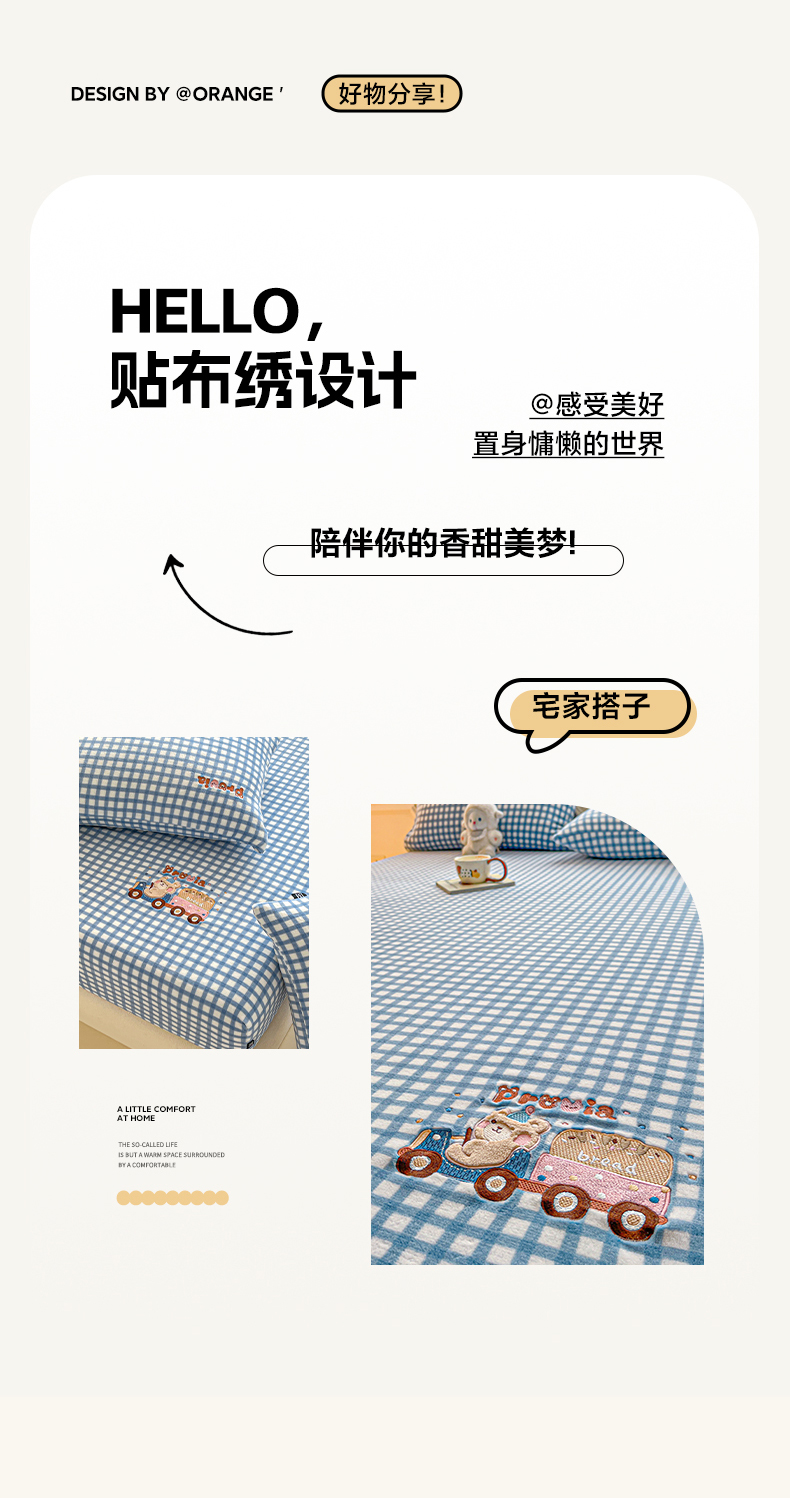乐美家纺 2025新款A类高克重贴布绣牛奶绒床笠三件套 面包熊