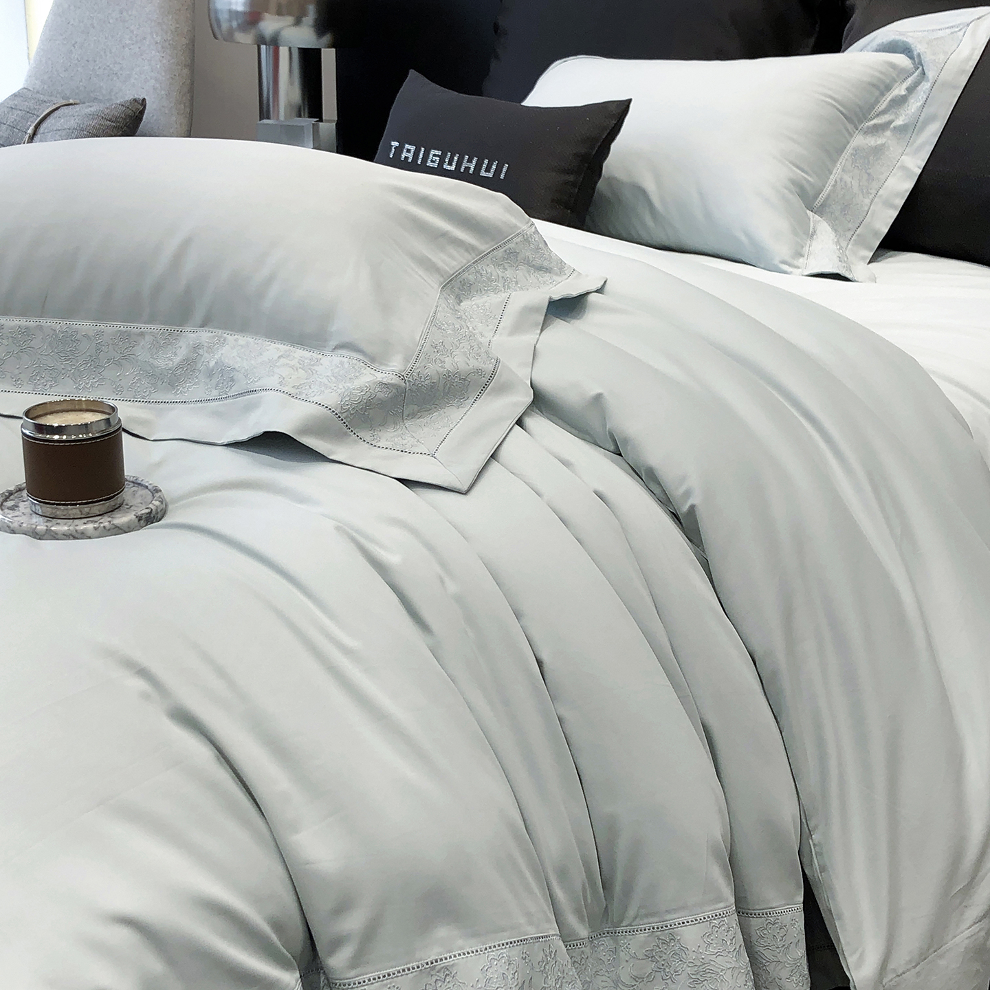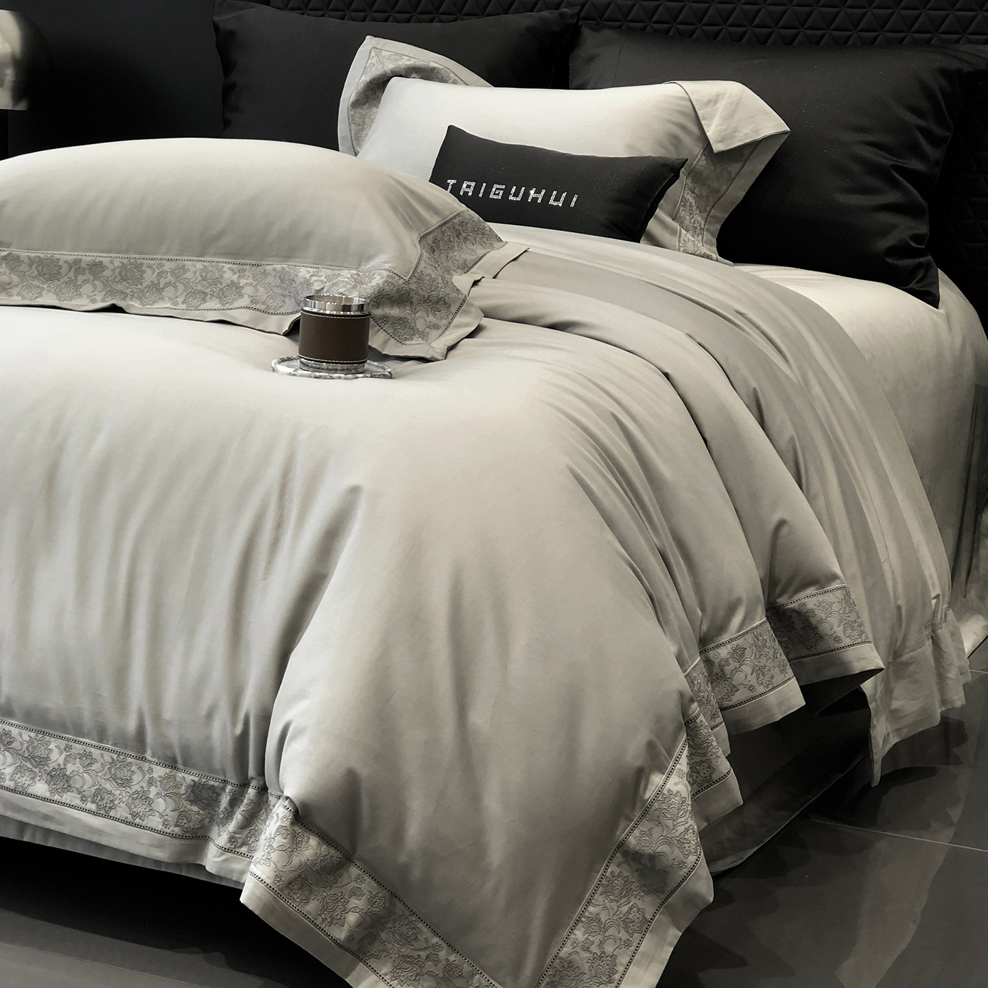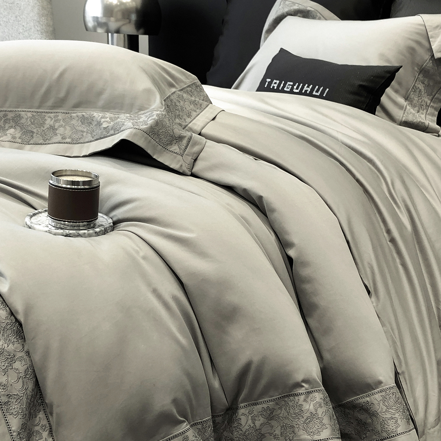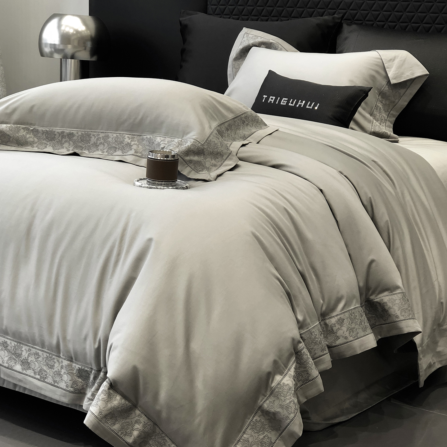 太古汇家居 2025新款全棉“磨毛芙蕾特”镂空系列四件套 磨毛芙蕾特-大象灰