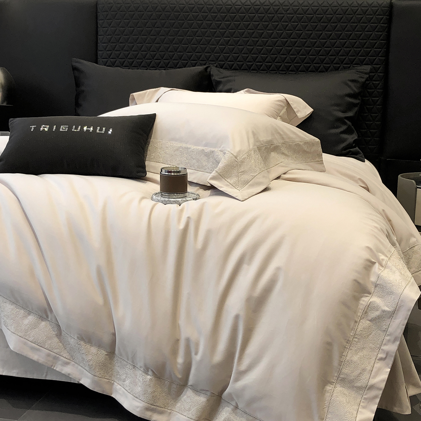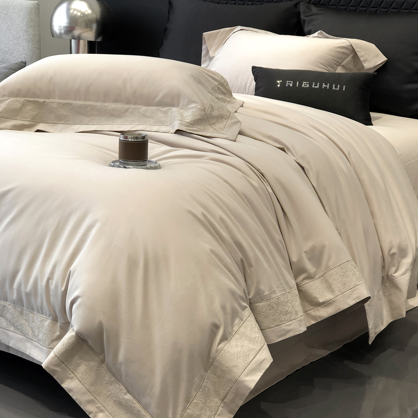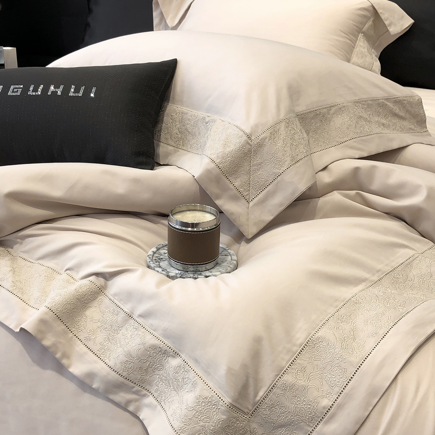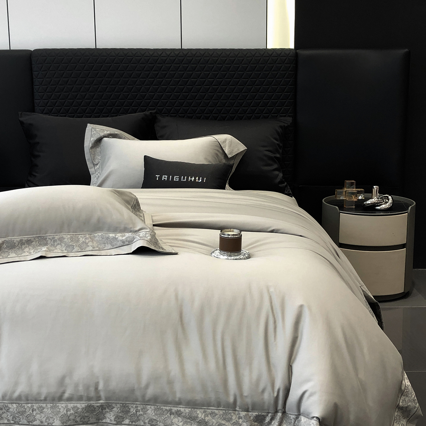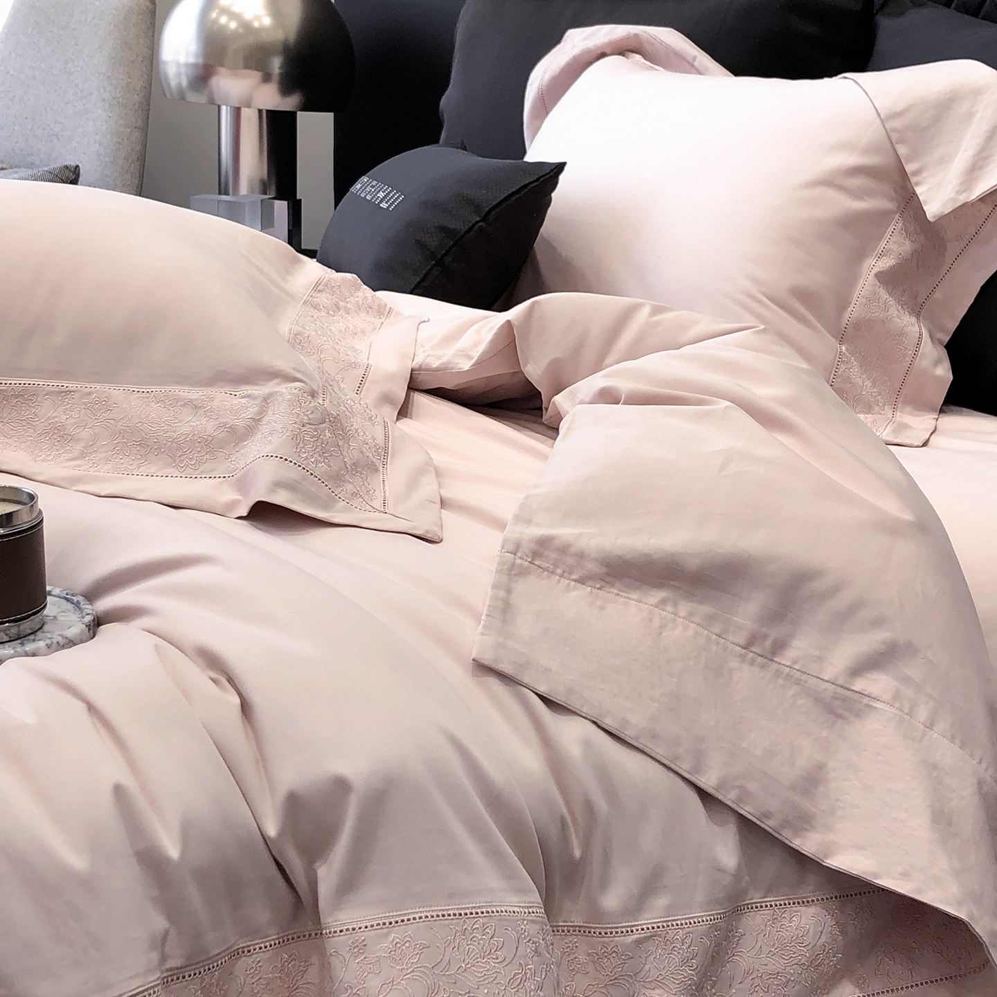太古汇家居 2025新款全棉“磨毛芙蕾特”镂空系列四件套 磨毛芙蕾特-大象灰