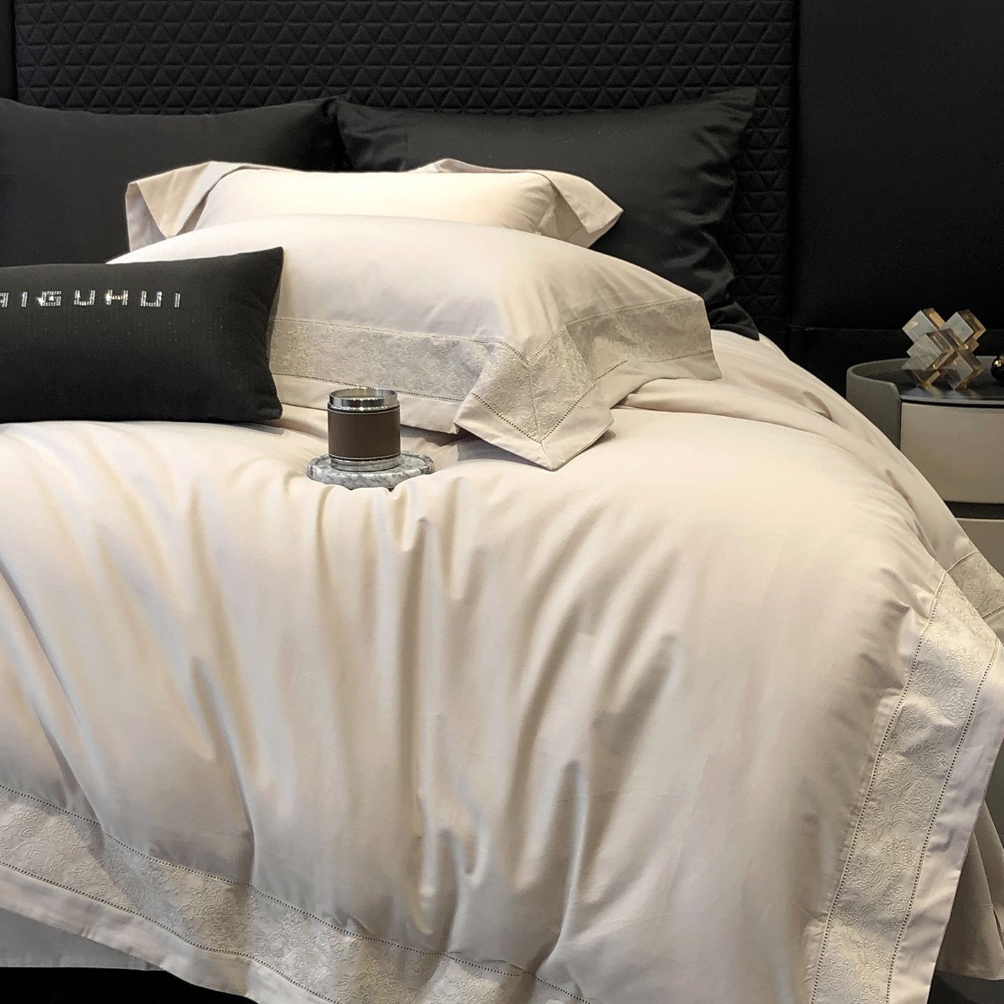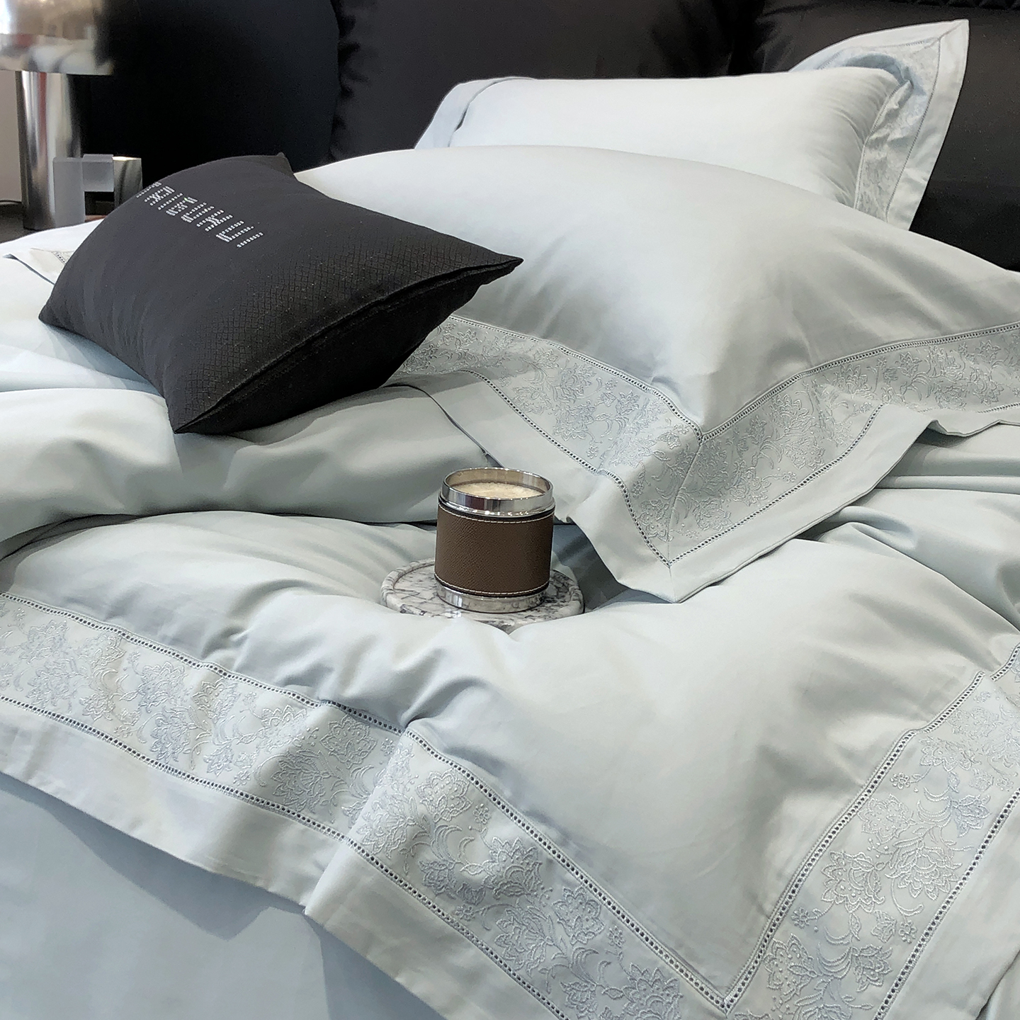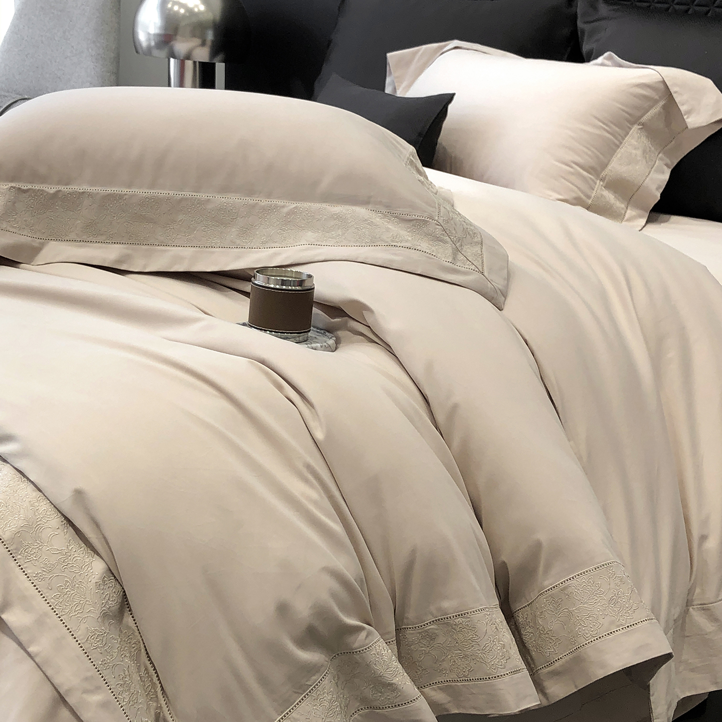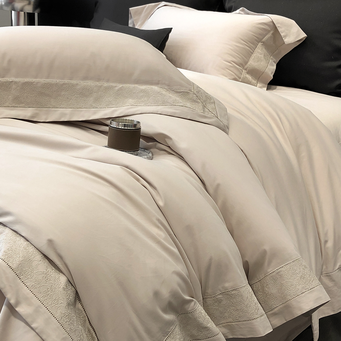 太古汇家居 2025新款全棉“磨毛芙蕾特”镂空系列四件套 磨毛芙蕾特-大象灰