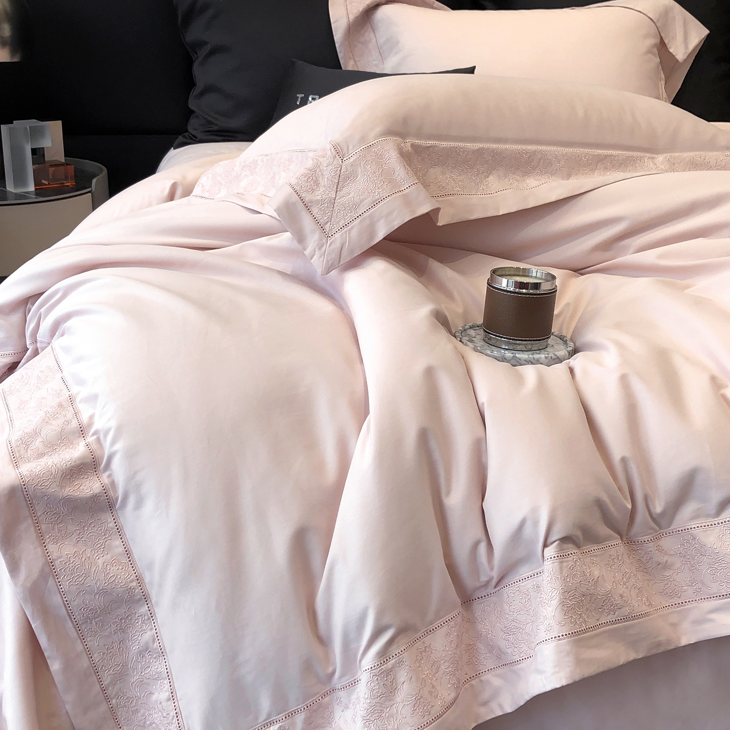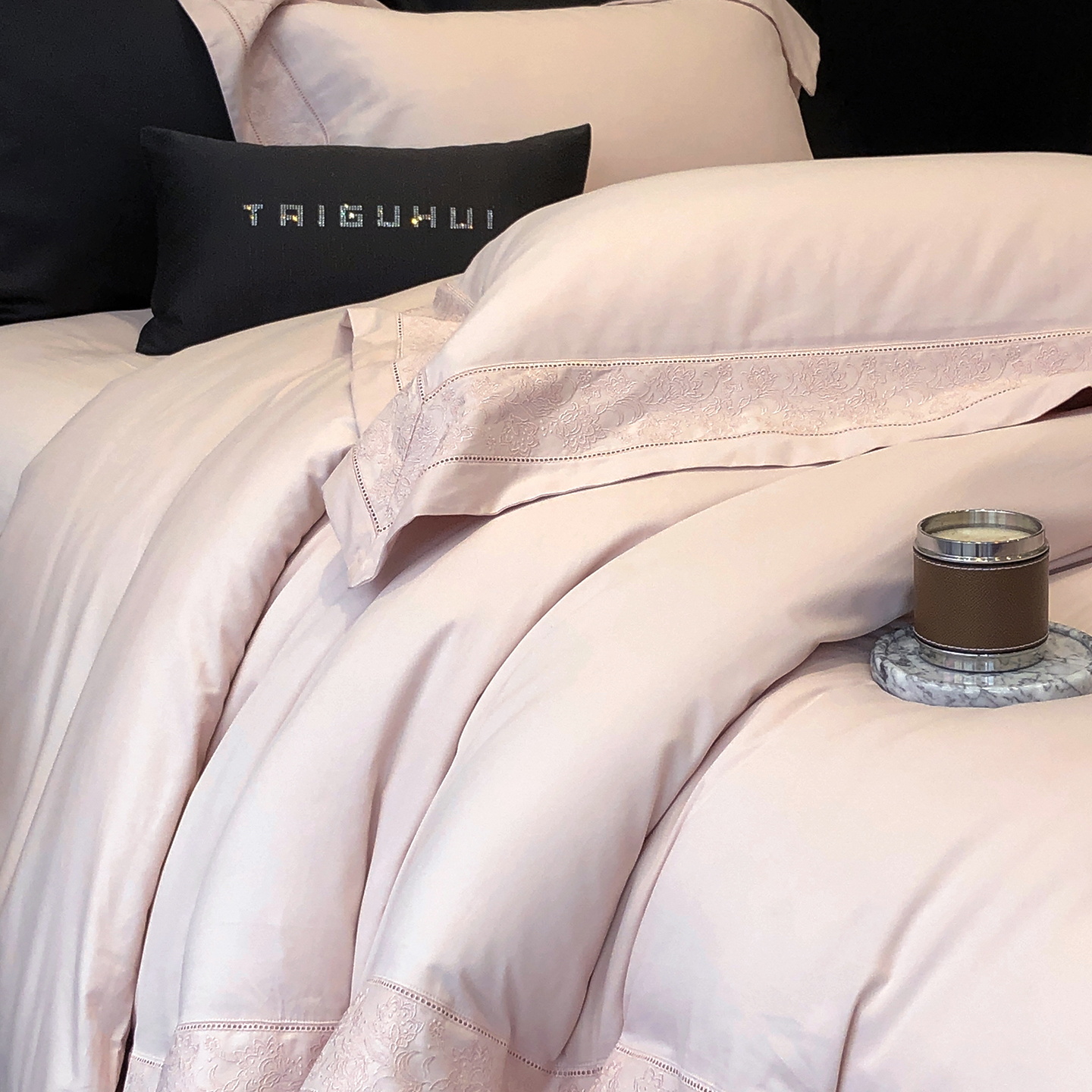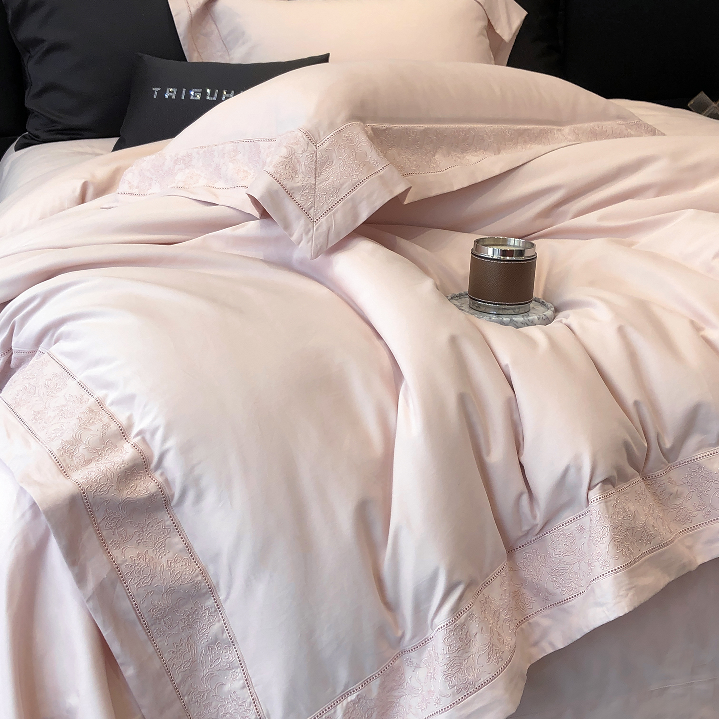 (总)太古汇家居 2025新款打孔镂空宽边格拉夫系列四件套,格拉夫-粉,格拉夫-红,格拉夫-蓝,格拉夫-米白