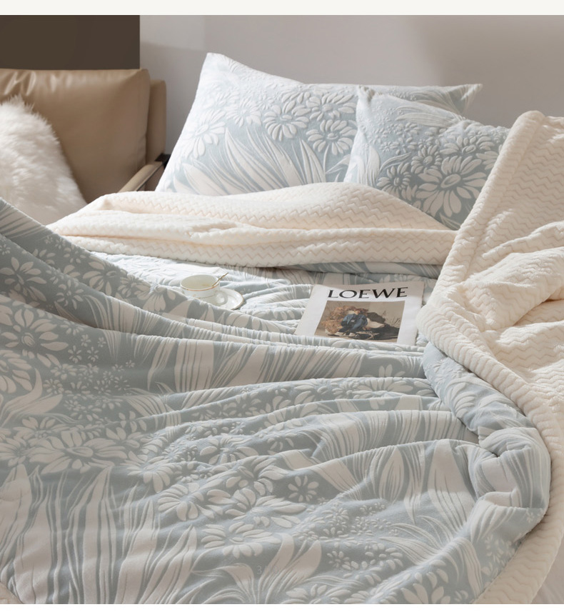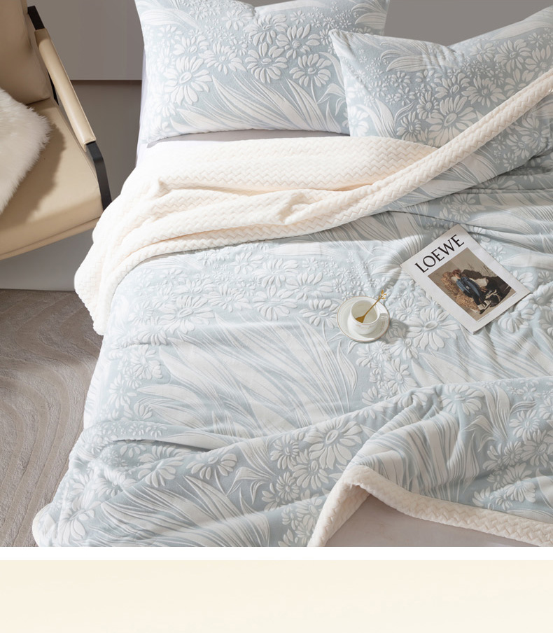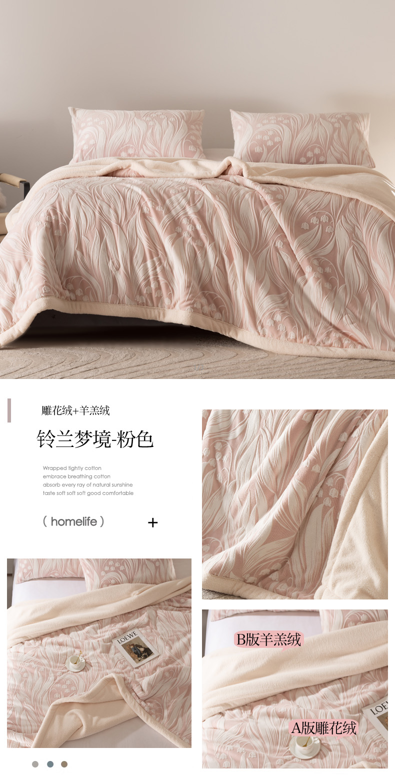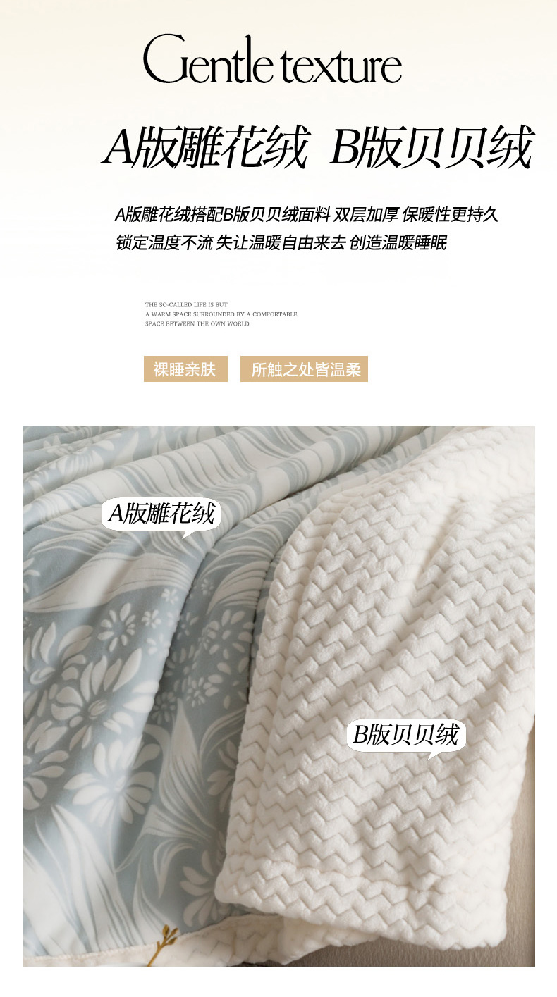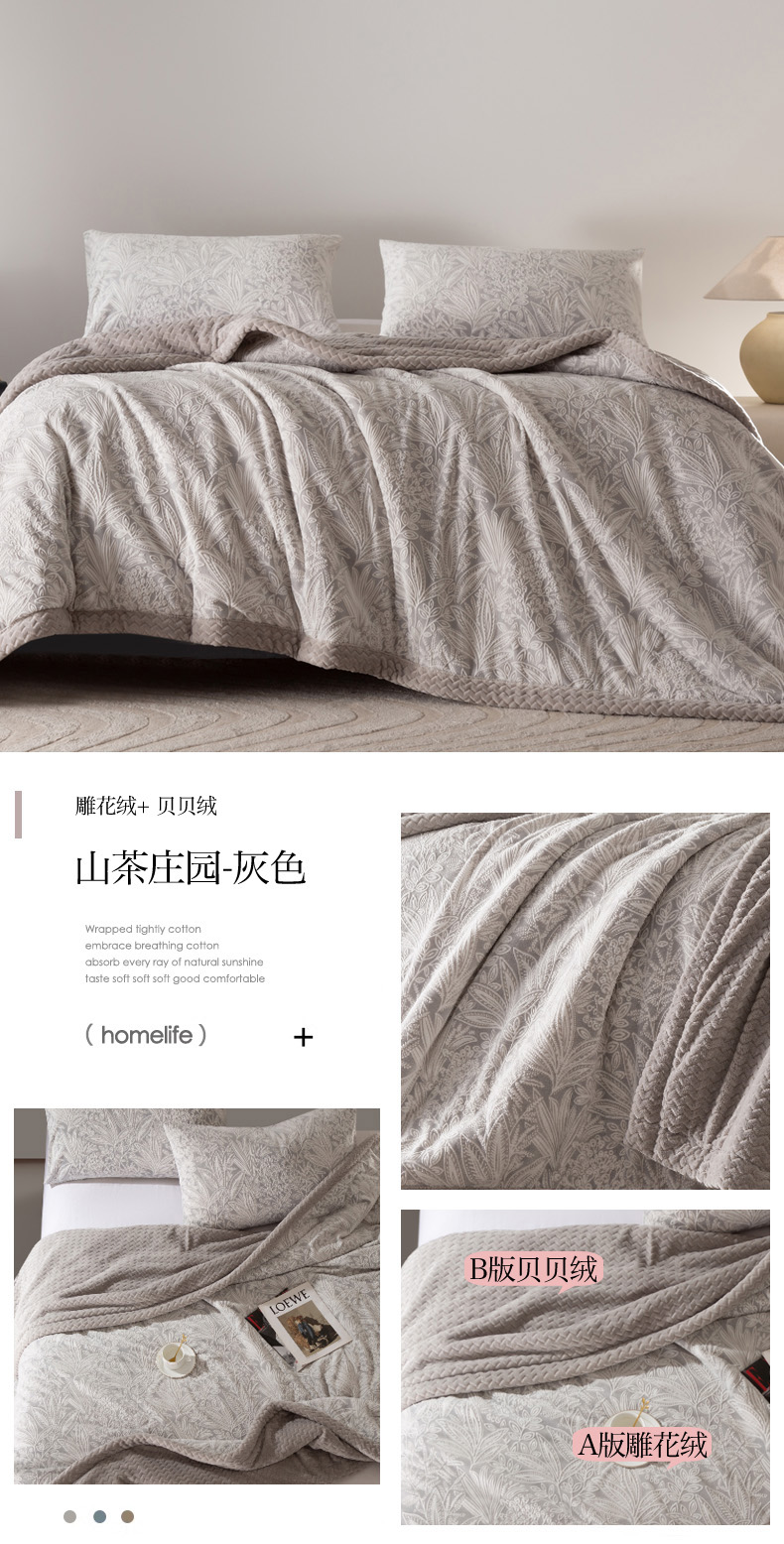 当前位置: 91家纺网 > 商品网购 > 毛毯休闲毯绒毯 > 毛毯 > 印季家纺 2025新款三层夹棉花卉款-雕花绒毛毯毯子多功能盖毯 雕花绒+贝贝绒-山茶庄园-灰色