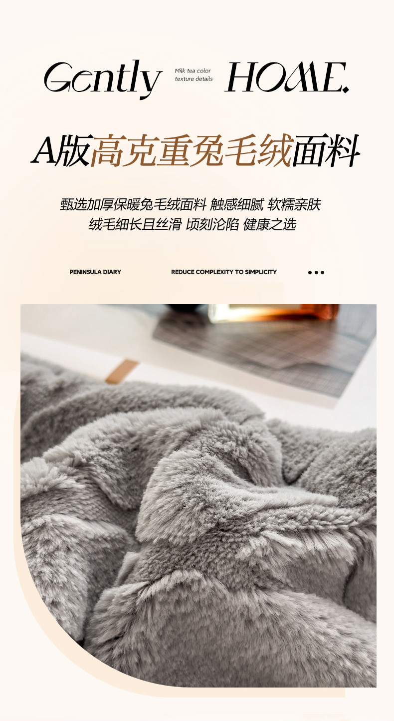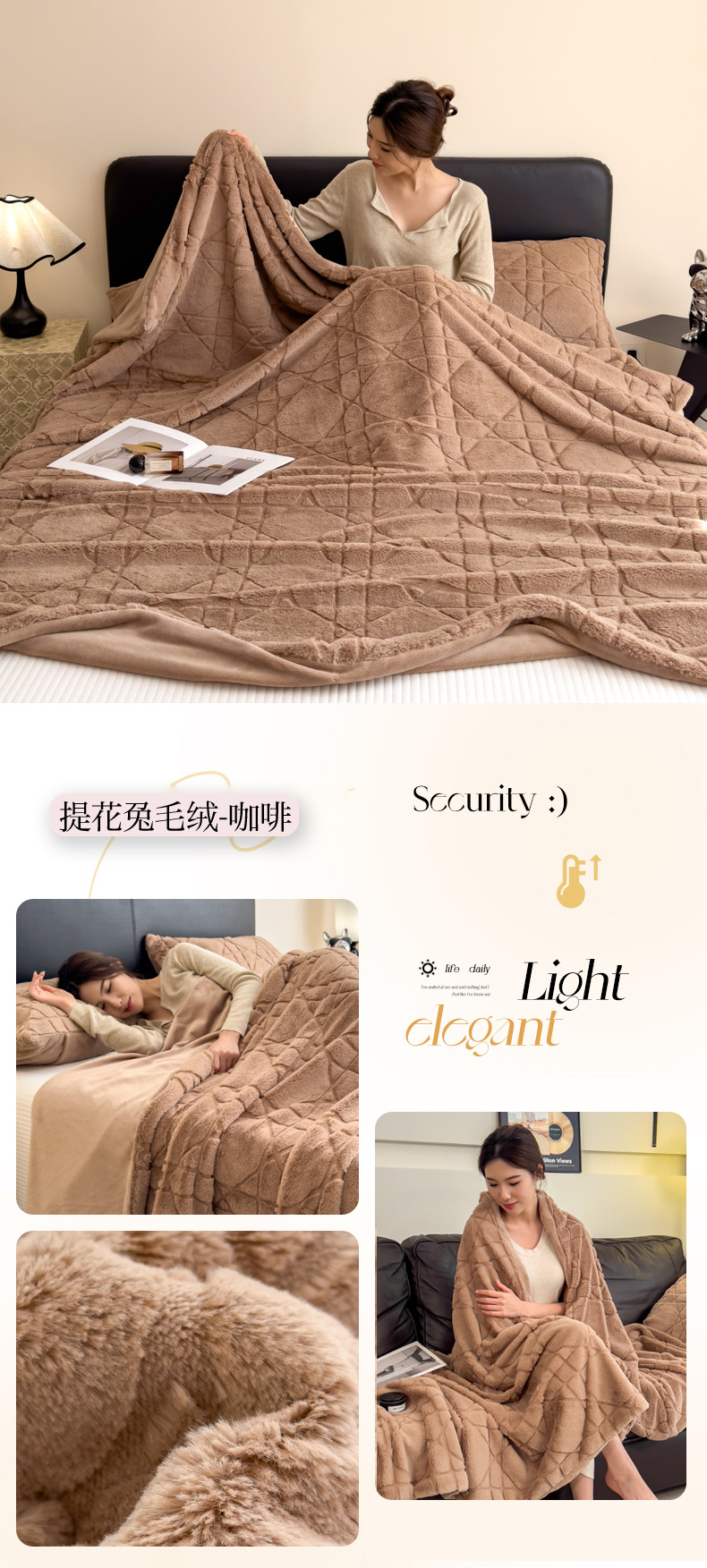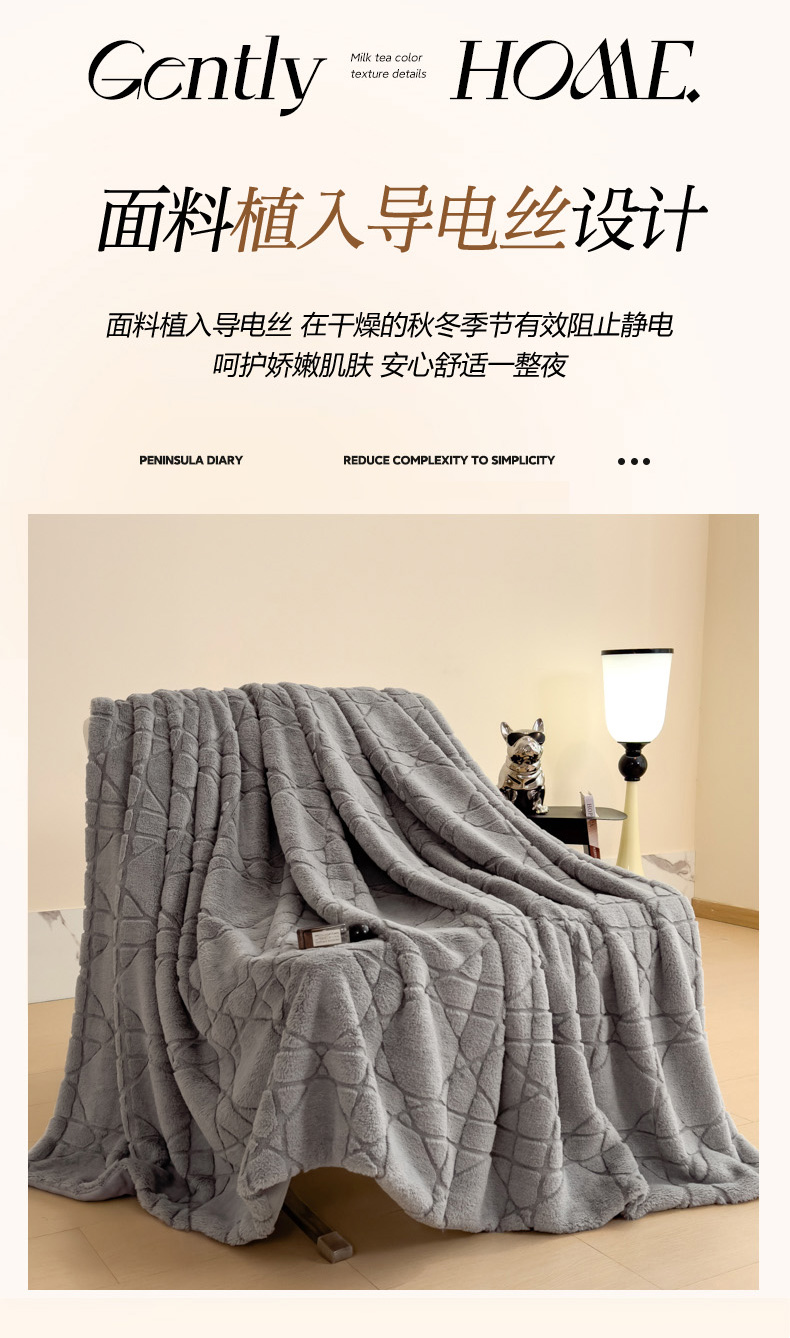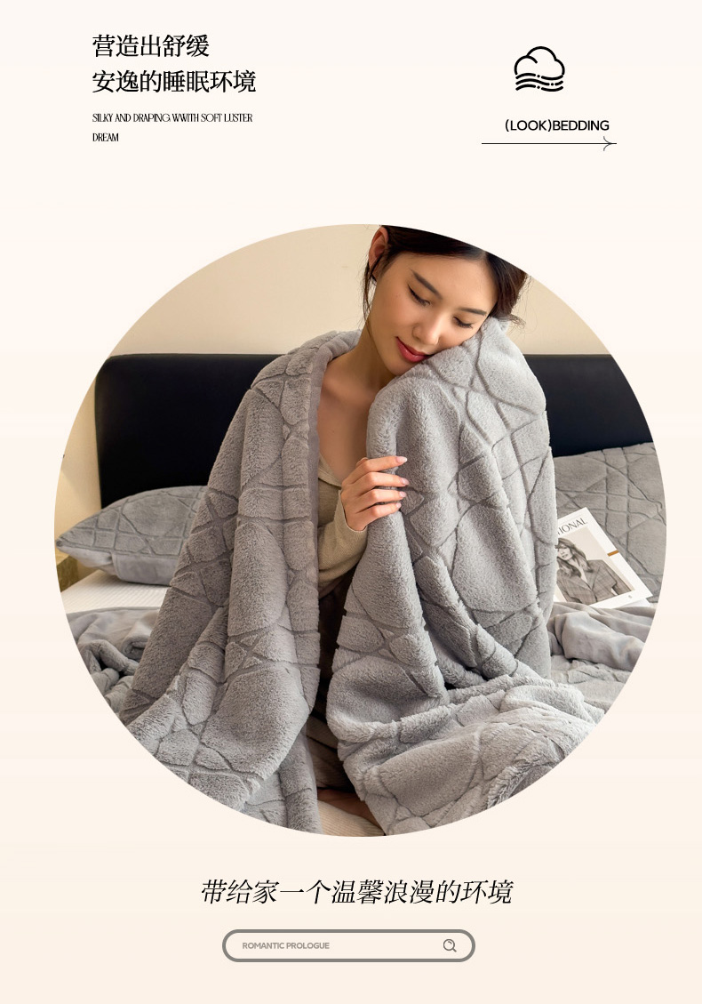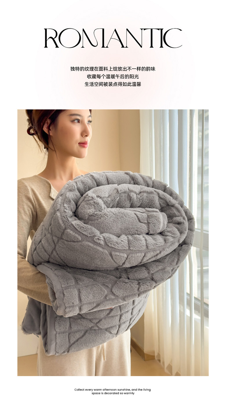 商品名称:印季家纺 2025新款双层提花兔毛绒毛毯毯子 提花兔毛绒-浅灰