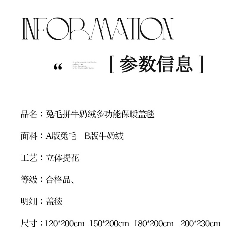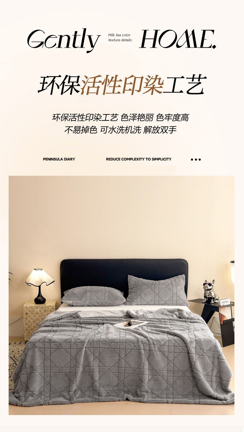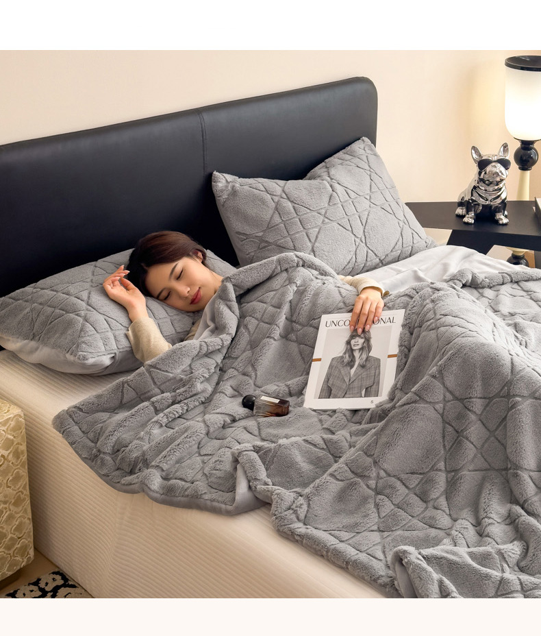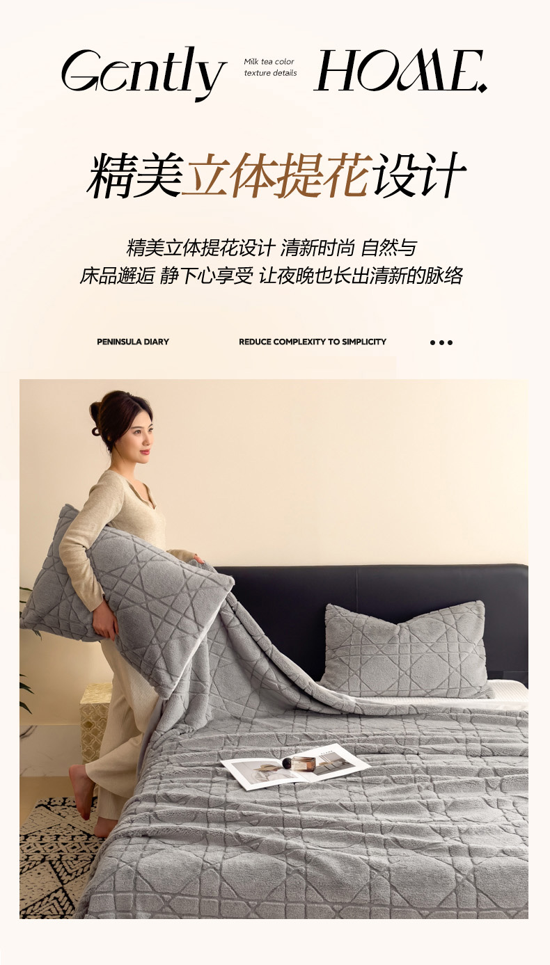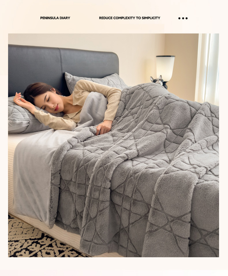 商品名称:印季家纺 2025新款双层提花兔毛绒毛毯毯子 提花兔毛绒-浅灰