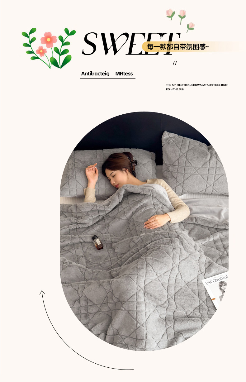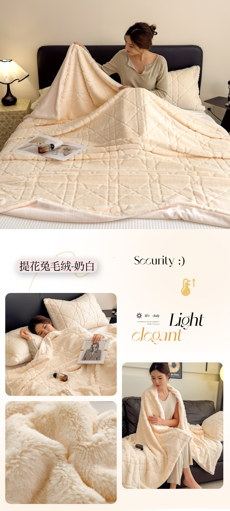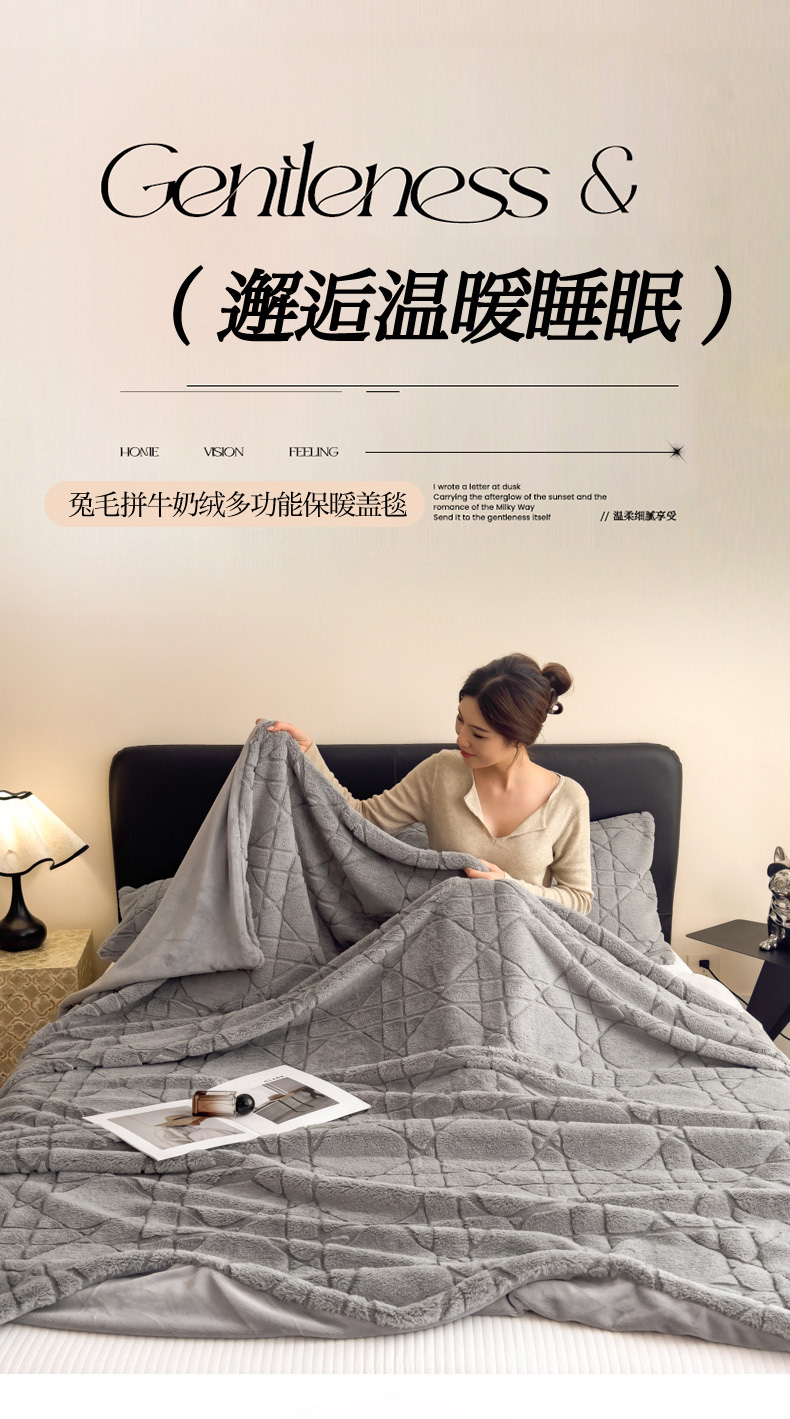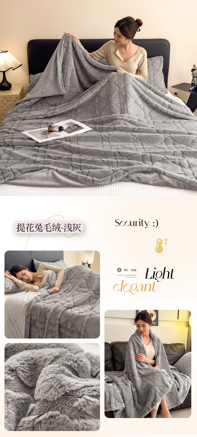 印季家纺 2025新款双层提花兔毛绒毛毯毯子 提花兔毛绒-浅灰