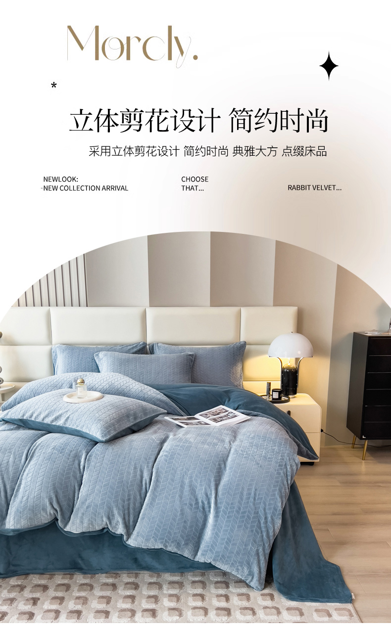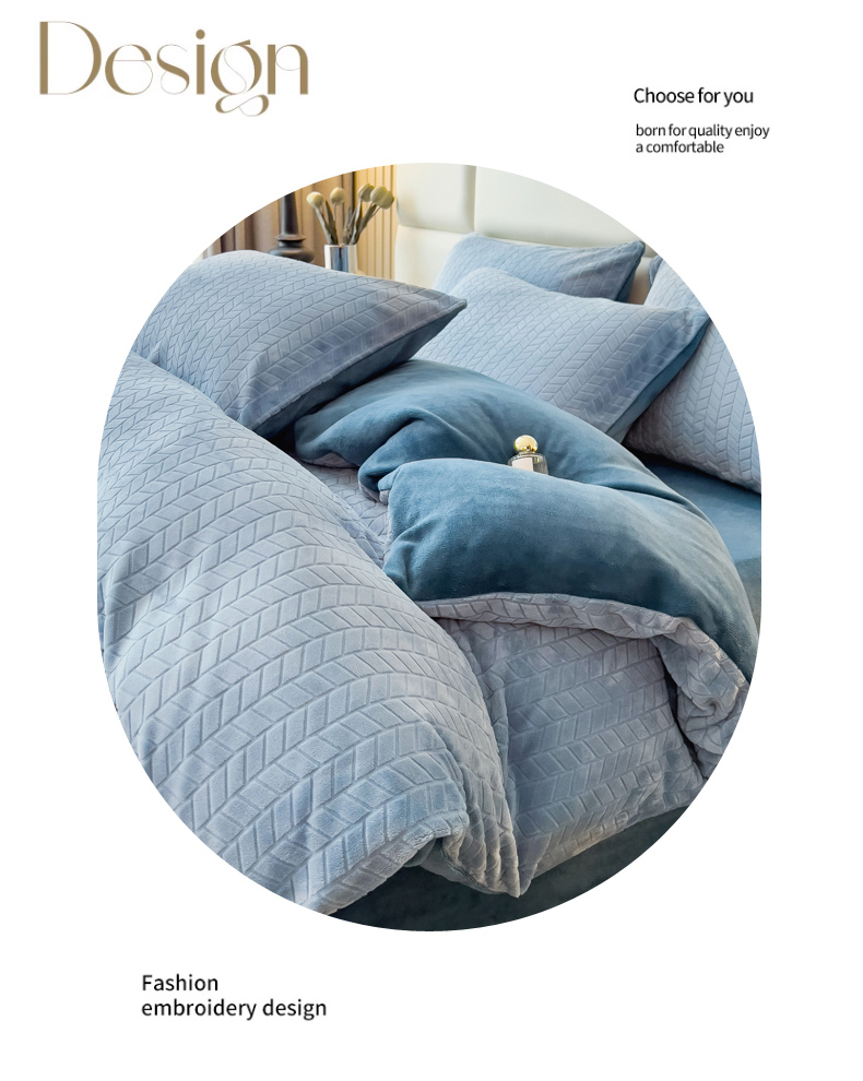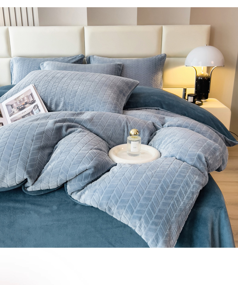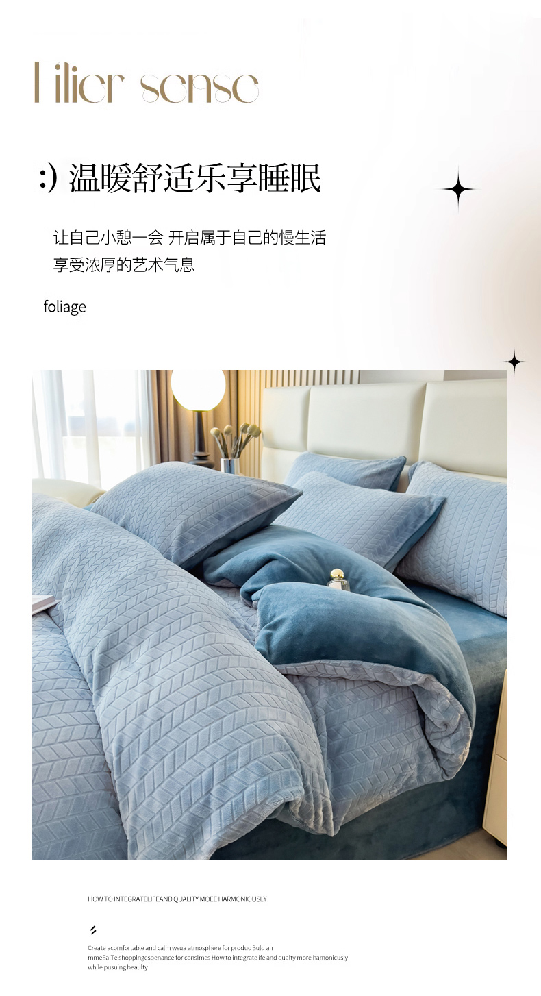 当前位置: 91家纺网 > 商品网购 > 床品套件 > 四件套 > 牛奶绒四件套 > 印季家纺 2025新款立体剪花麦穗牛奶绒四件套 蓝灰