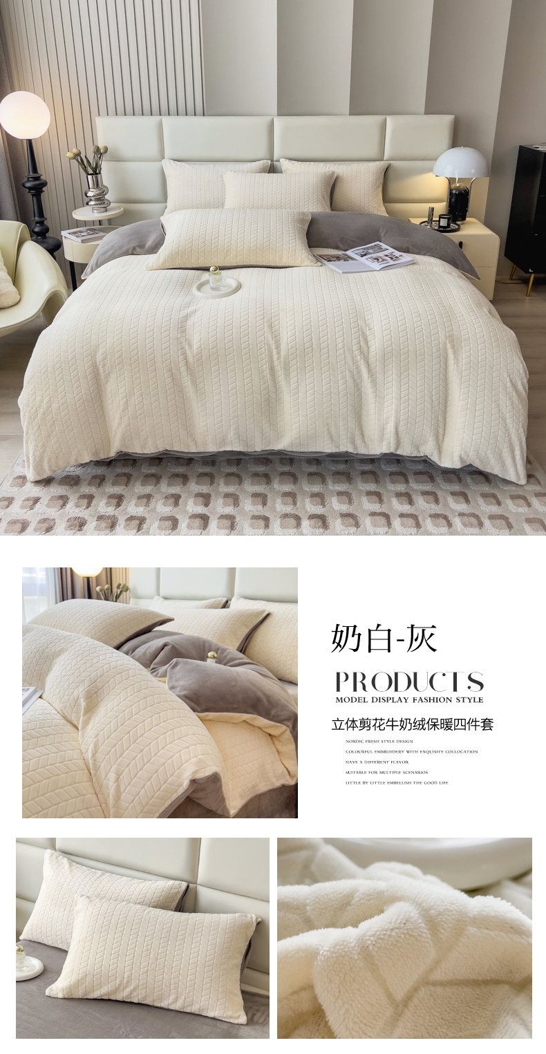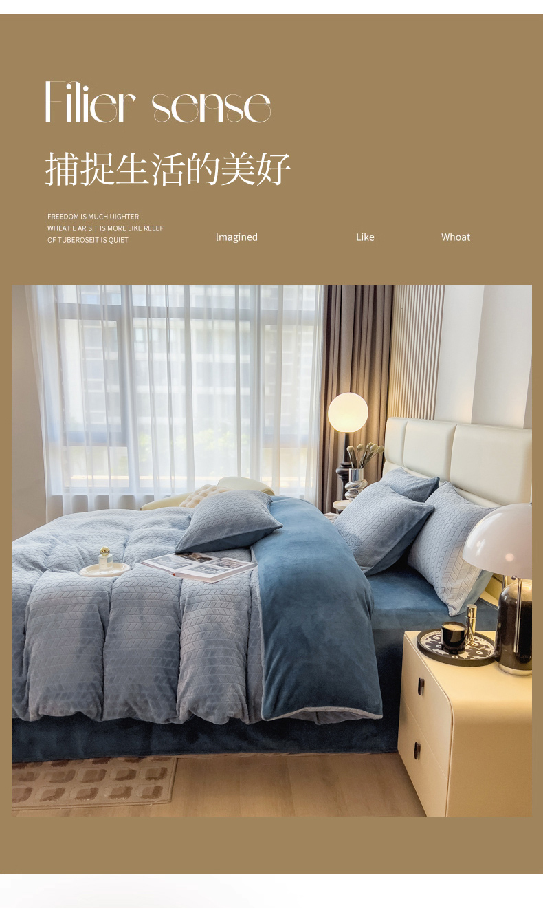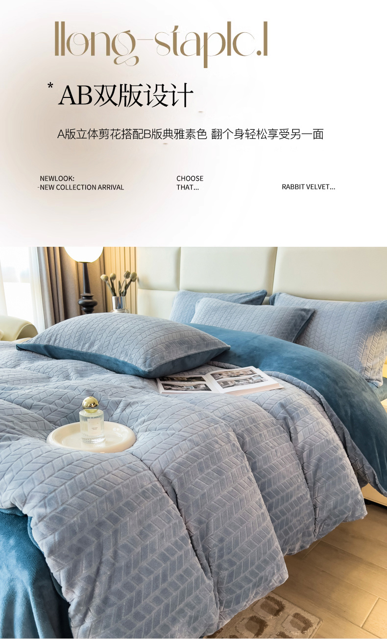 当前位置: 91家纺网 > 商品网购 > 床品套件 > 四件套 > 牛奶绒四件套 > 印季家纺 2025新款立体剪花麦穗牛奶绒四件套 蓝灰