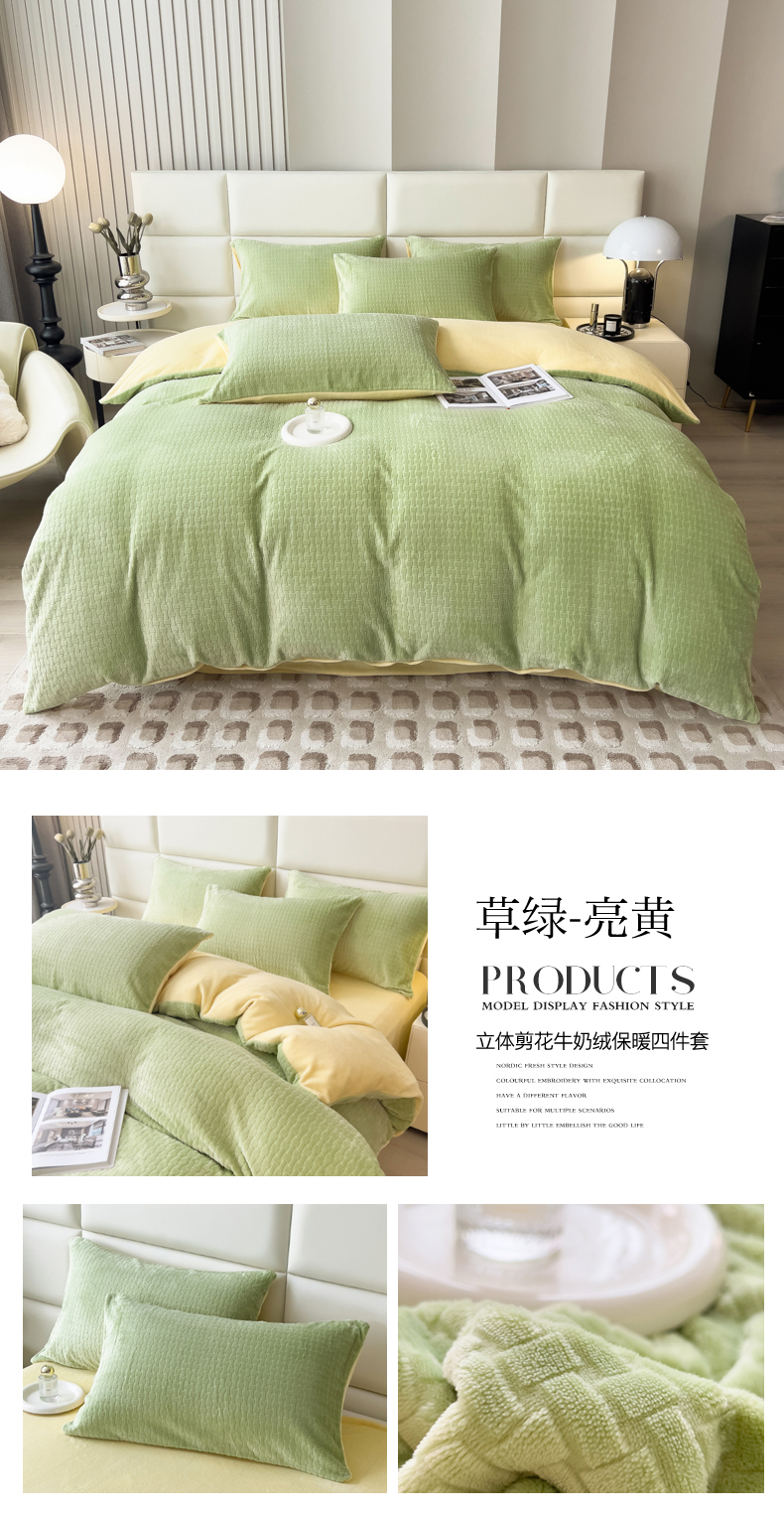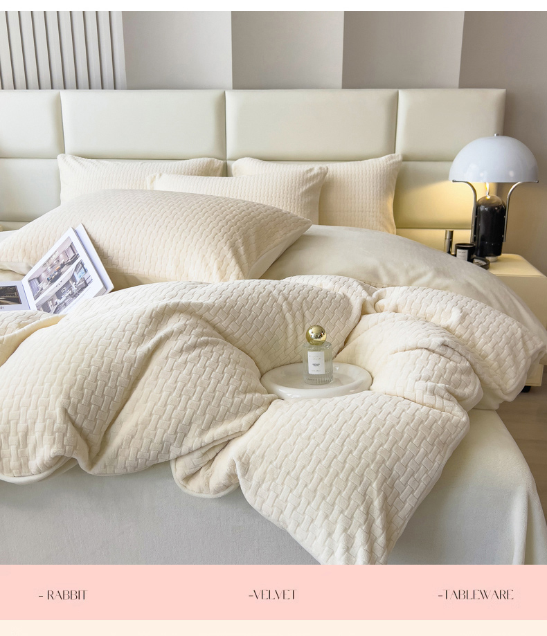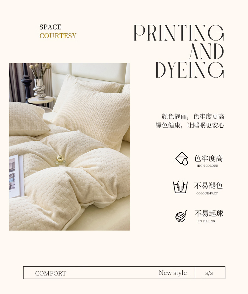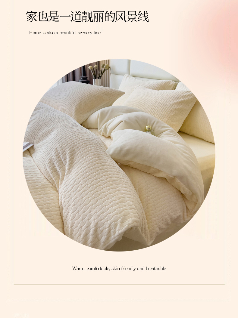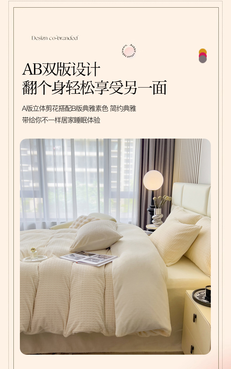当前位置: 91家纺网 > 商品网购 > 床品套件 > 四件套 > 牛奶绒四件套 > 印季家纺 2025新款立体剪花十字结牛奶绒四件套 奶白