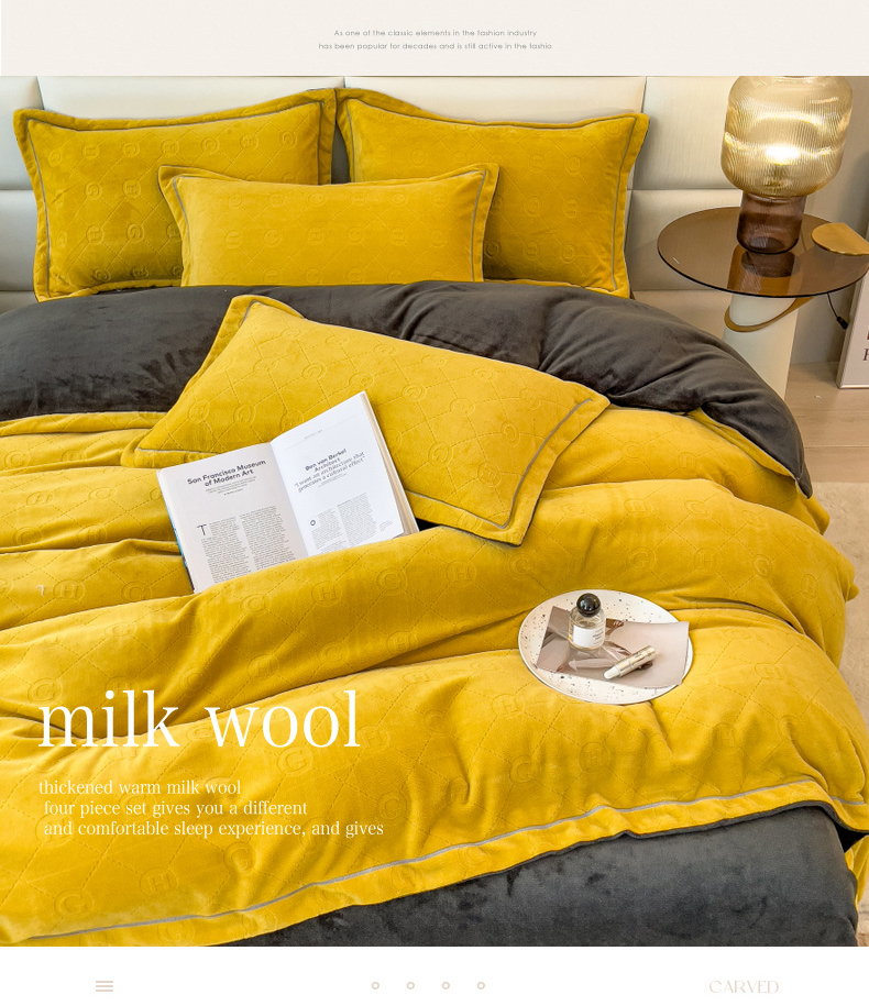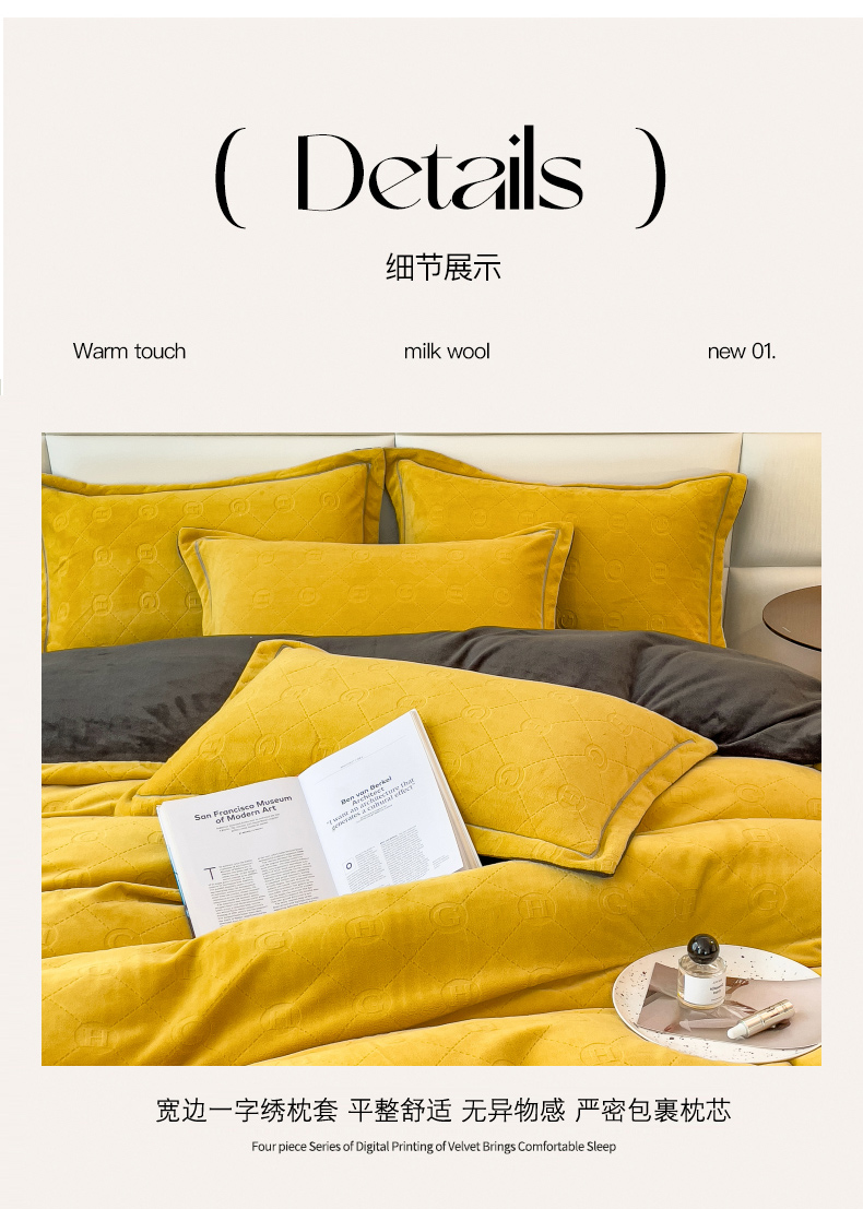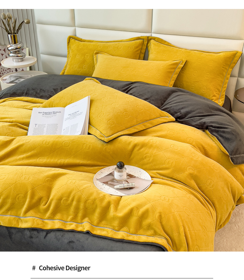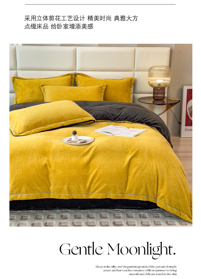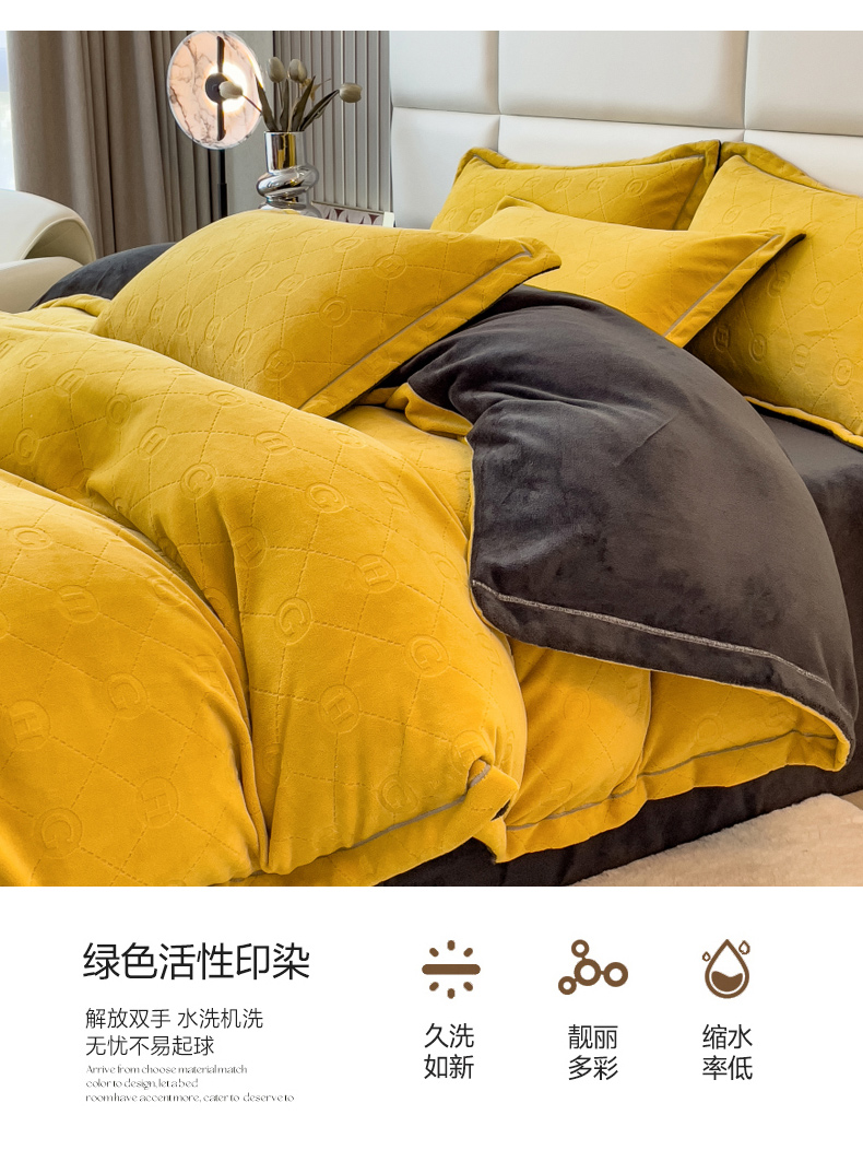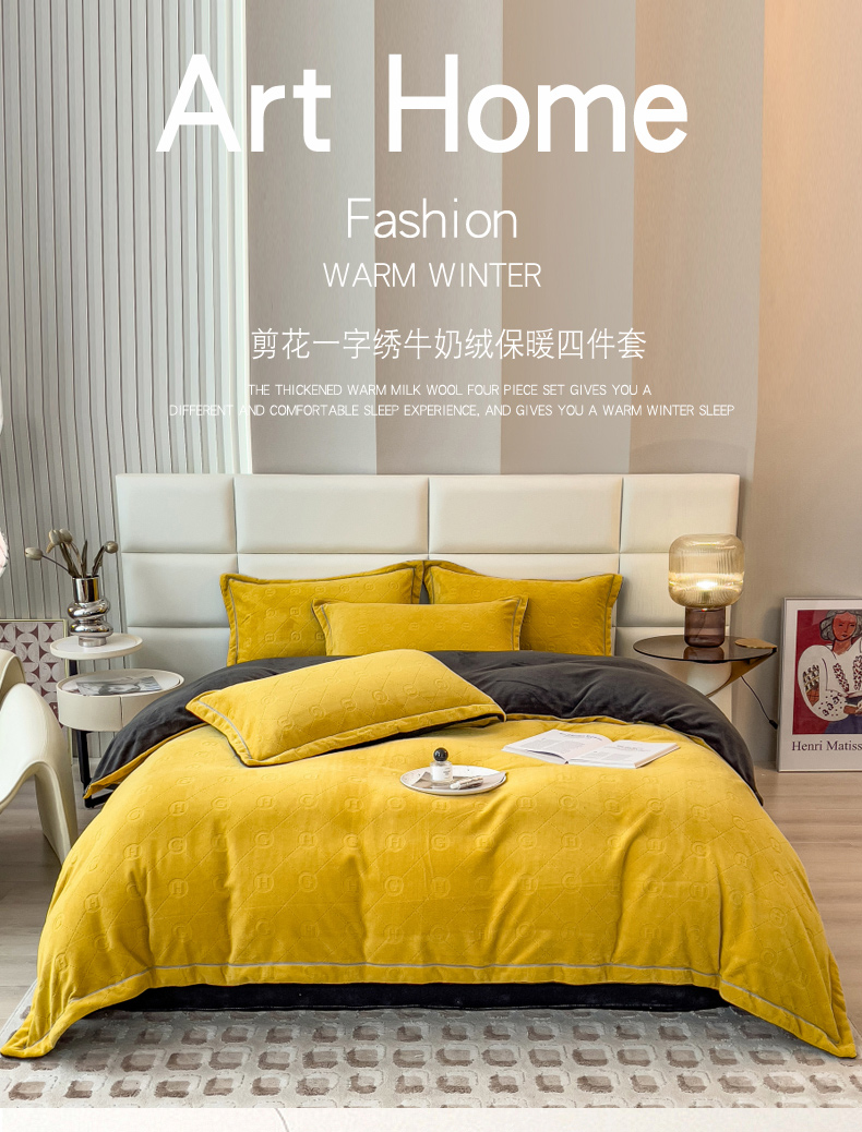 当前位置: 91家纺网 > 商品网购 > 床品套件 > 四件套 > 牛奶绒四件套 > 印季家纺 2025新款HG剪花一字绣牛奶绒四件套 亮黄-深灰