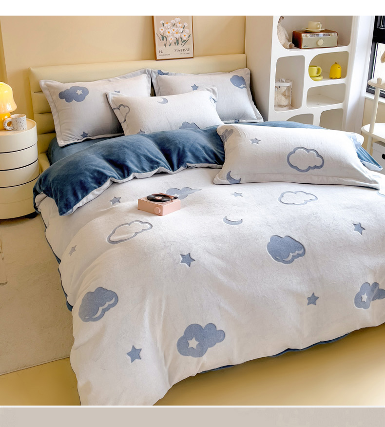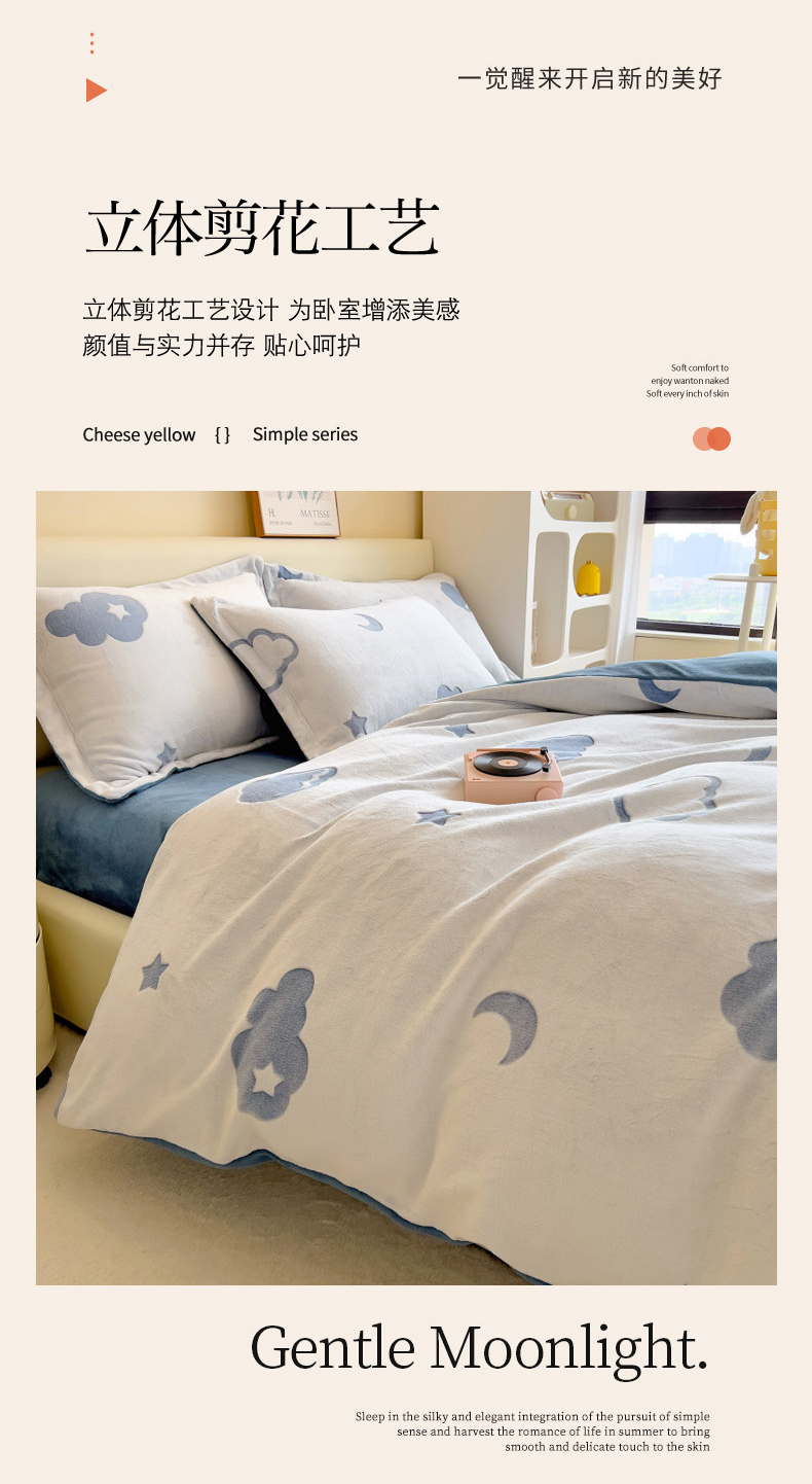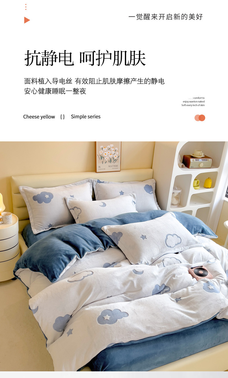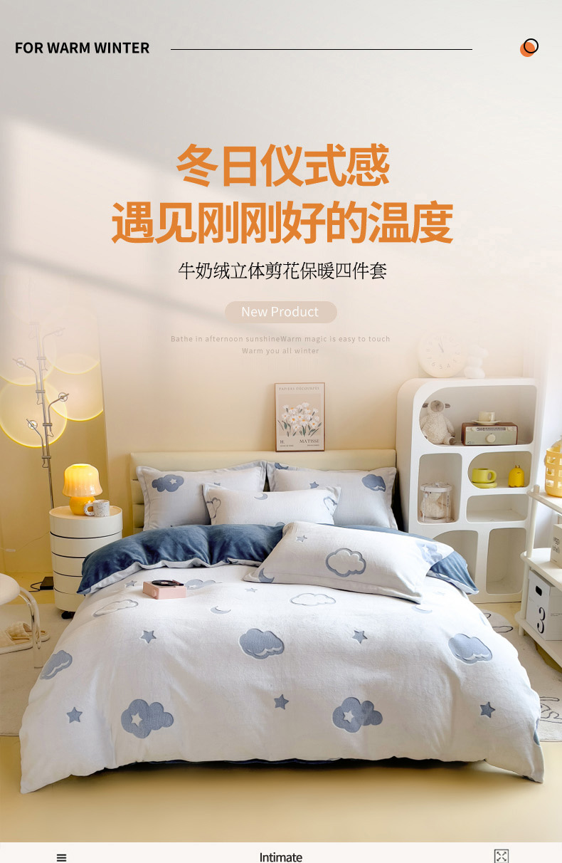 当前位置: 91家纺网 > 商品网购 > 床品套件 > 四件套 > 牛奶绒四件套 > 印季家纺 2025新款背印立体剪花牛奶绒四件套 夜空-蓝