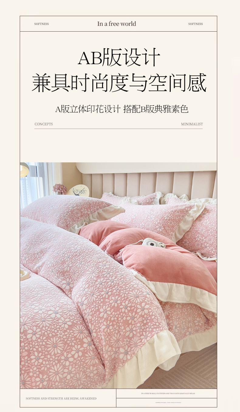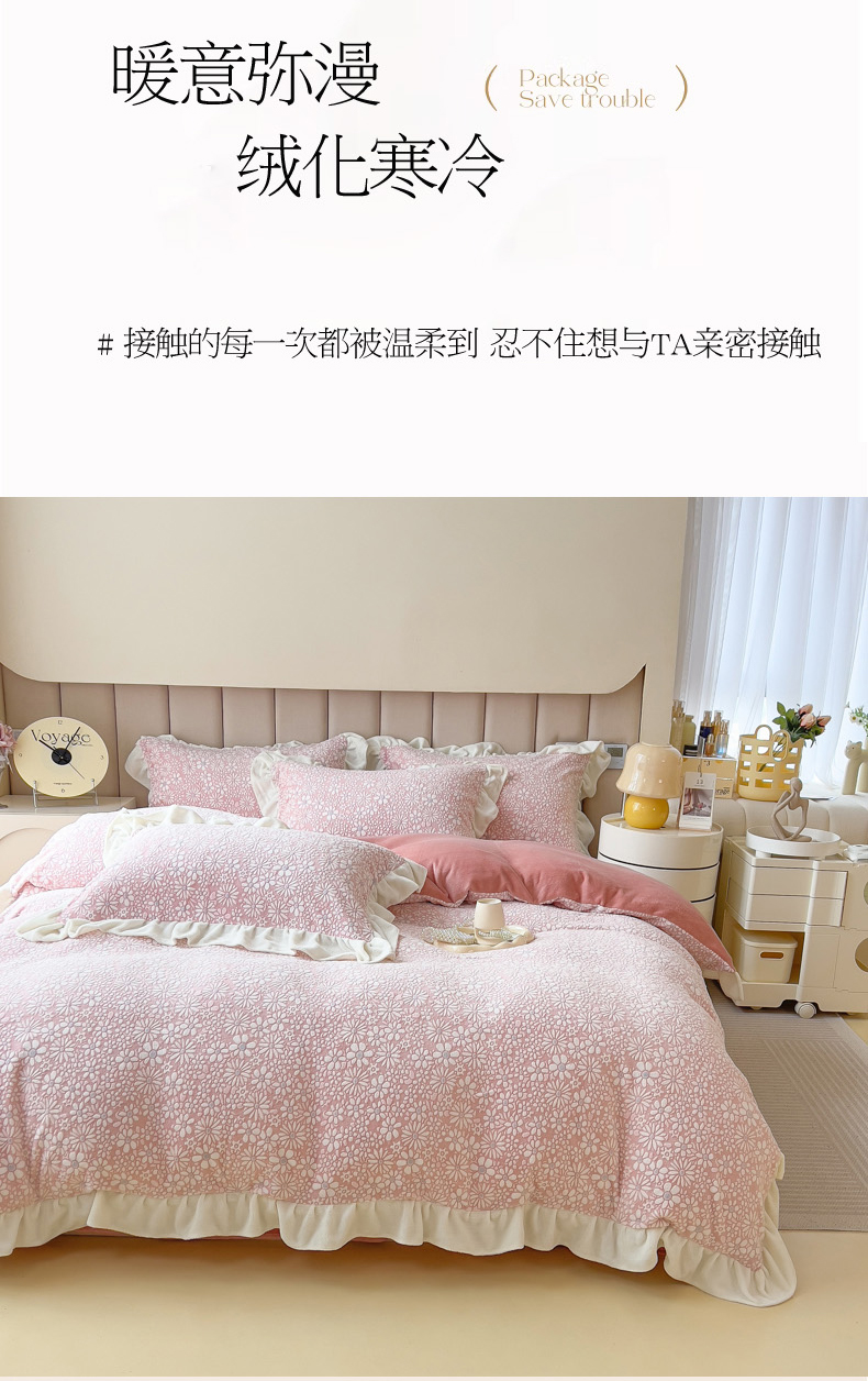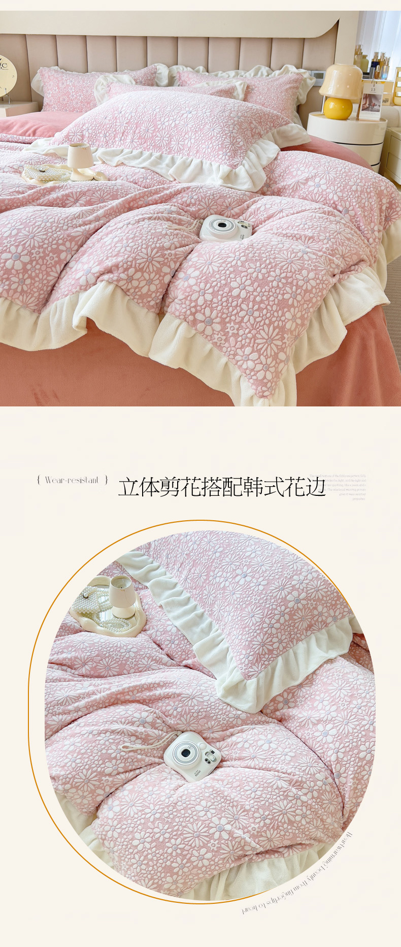 (总)印季家纺 2025新款花边款立体剪花牛奶绒四件套