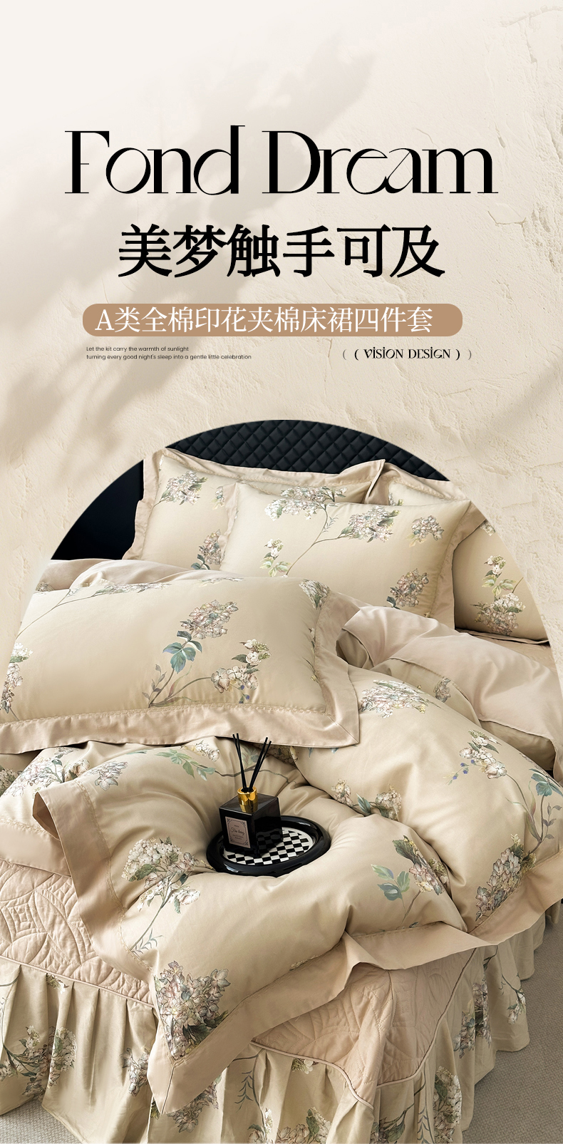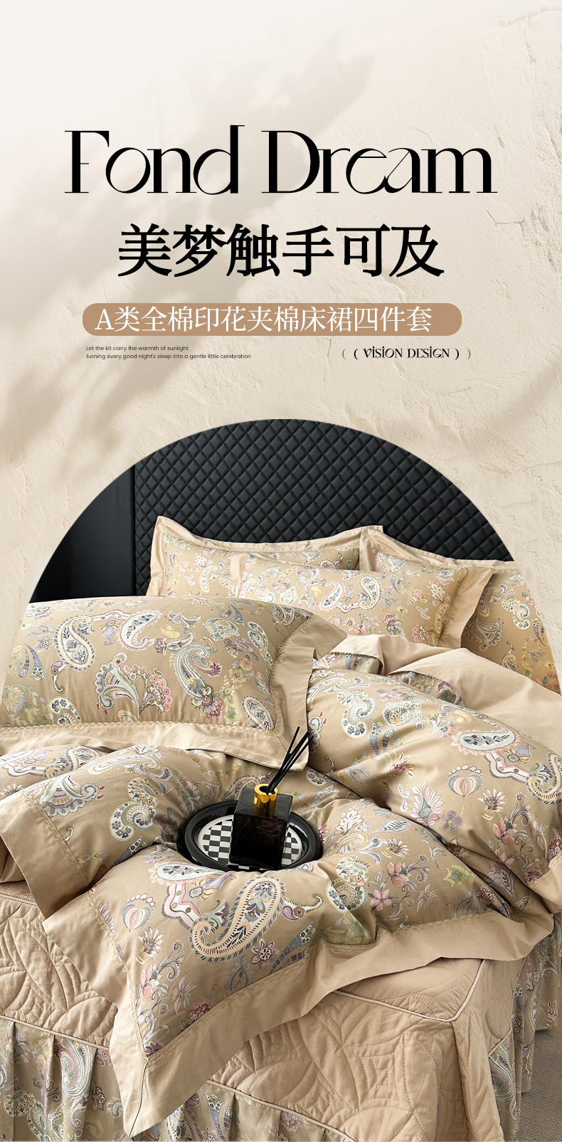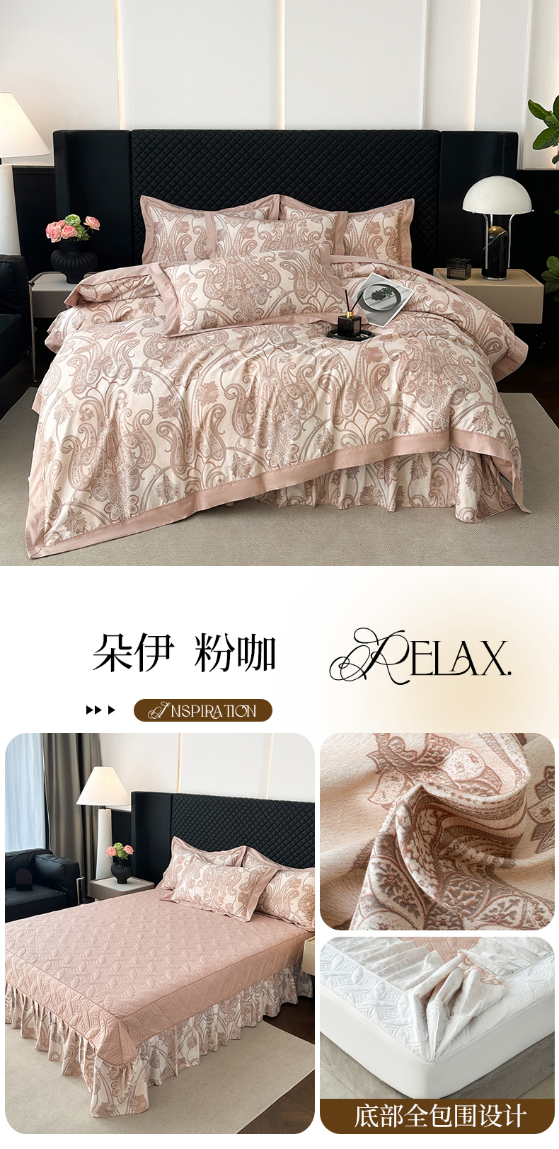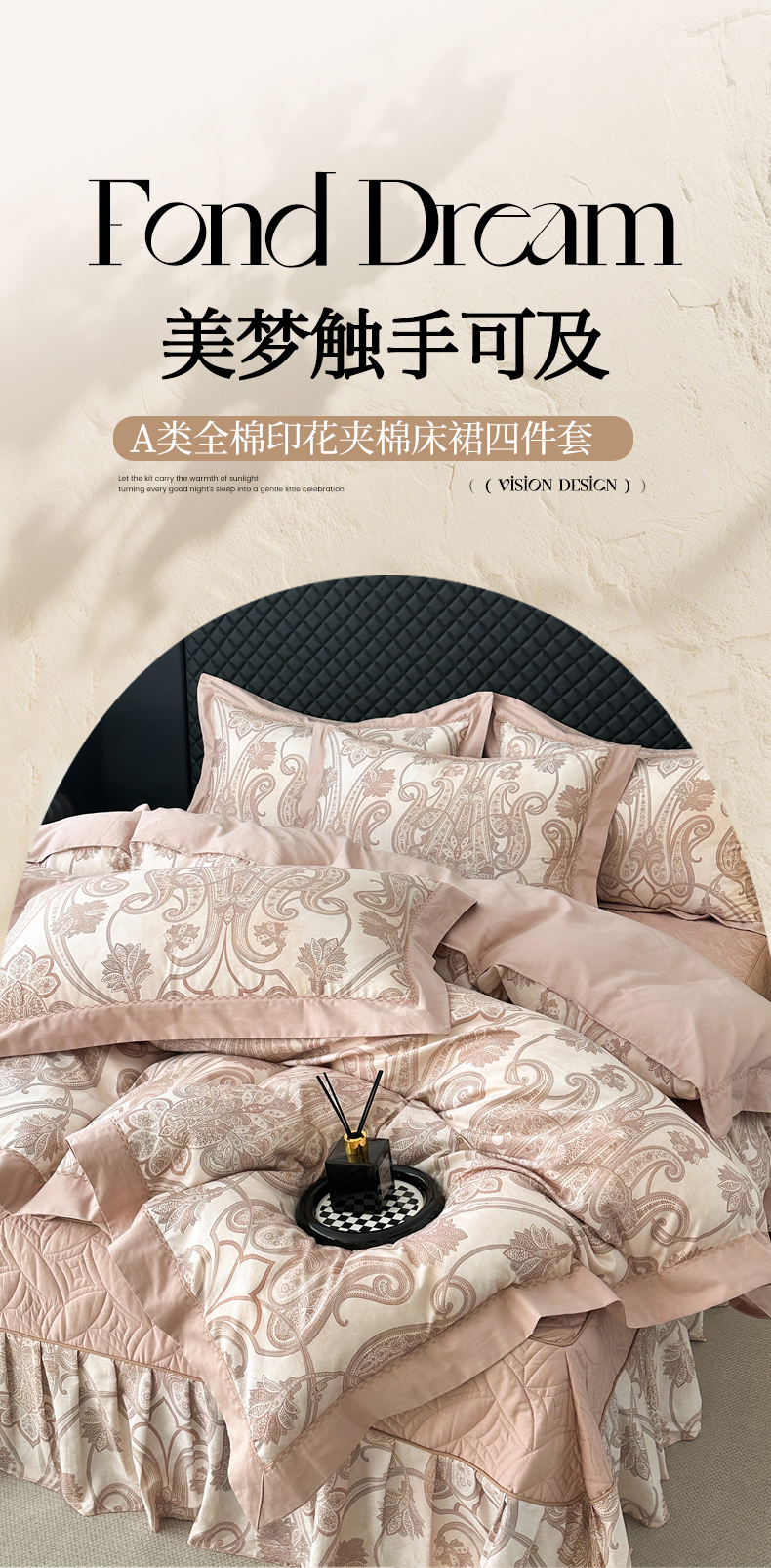 (总)福丽莱家纺 2025新款高端60纯棉数码印花夹棉床裙四件套,朵伊-粉咖,慕溪-粉,佩斯利-暖云棕,芙影-灰,薰衣之恋,吉祥如意,逆光-蓝,若婉-玫瑰粉,若婉-浅咖,金镂花园-浅咖,瑞贝卡