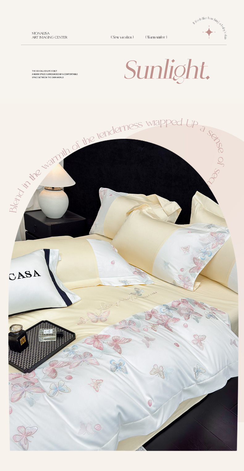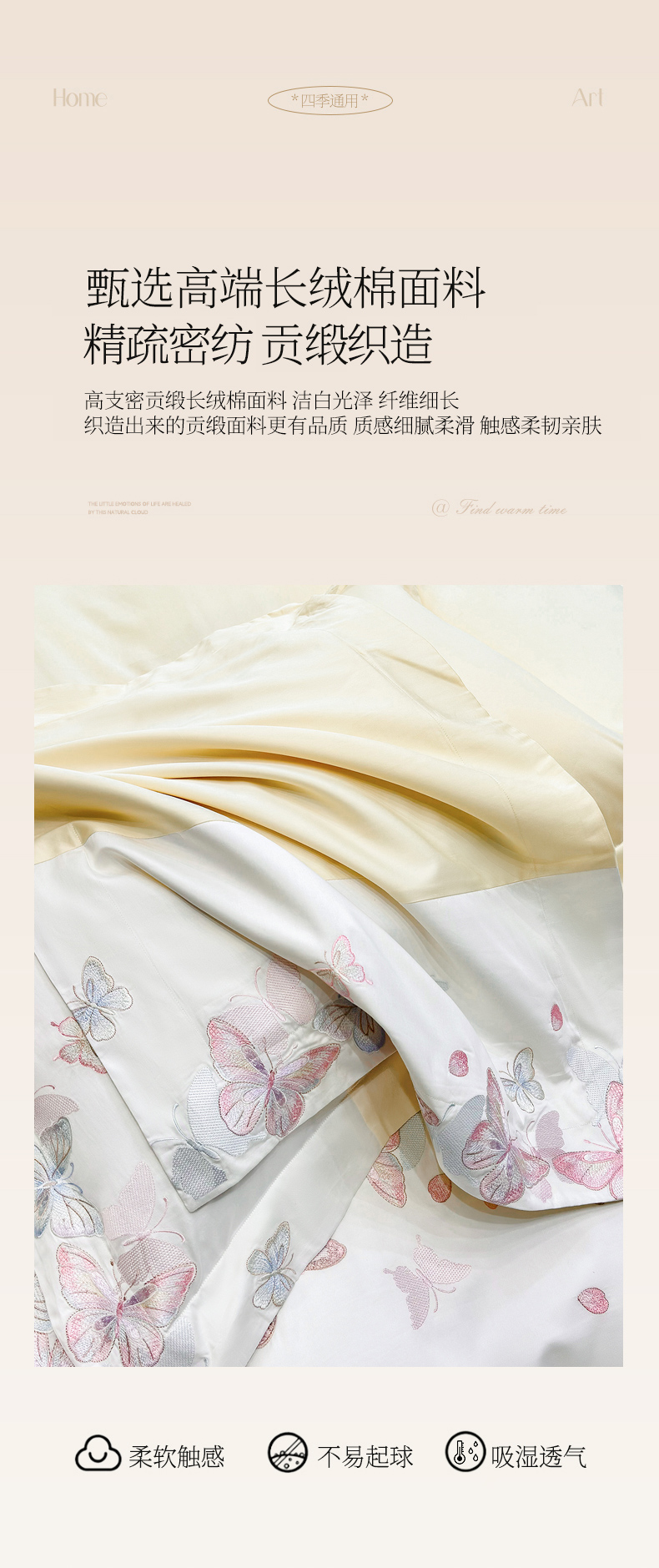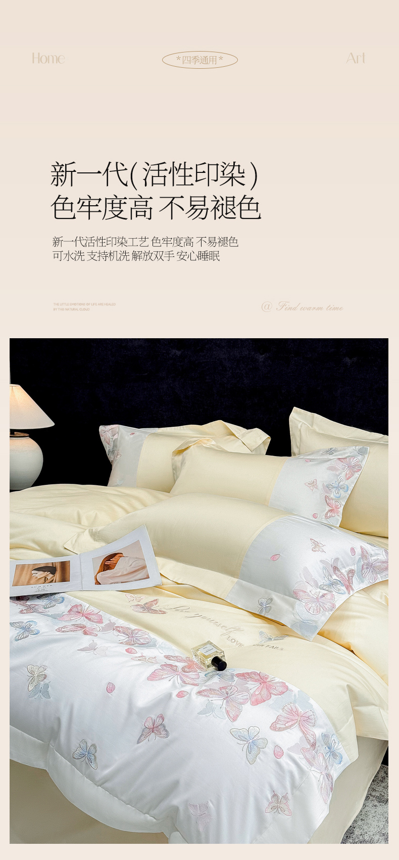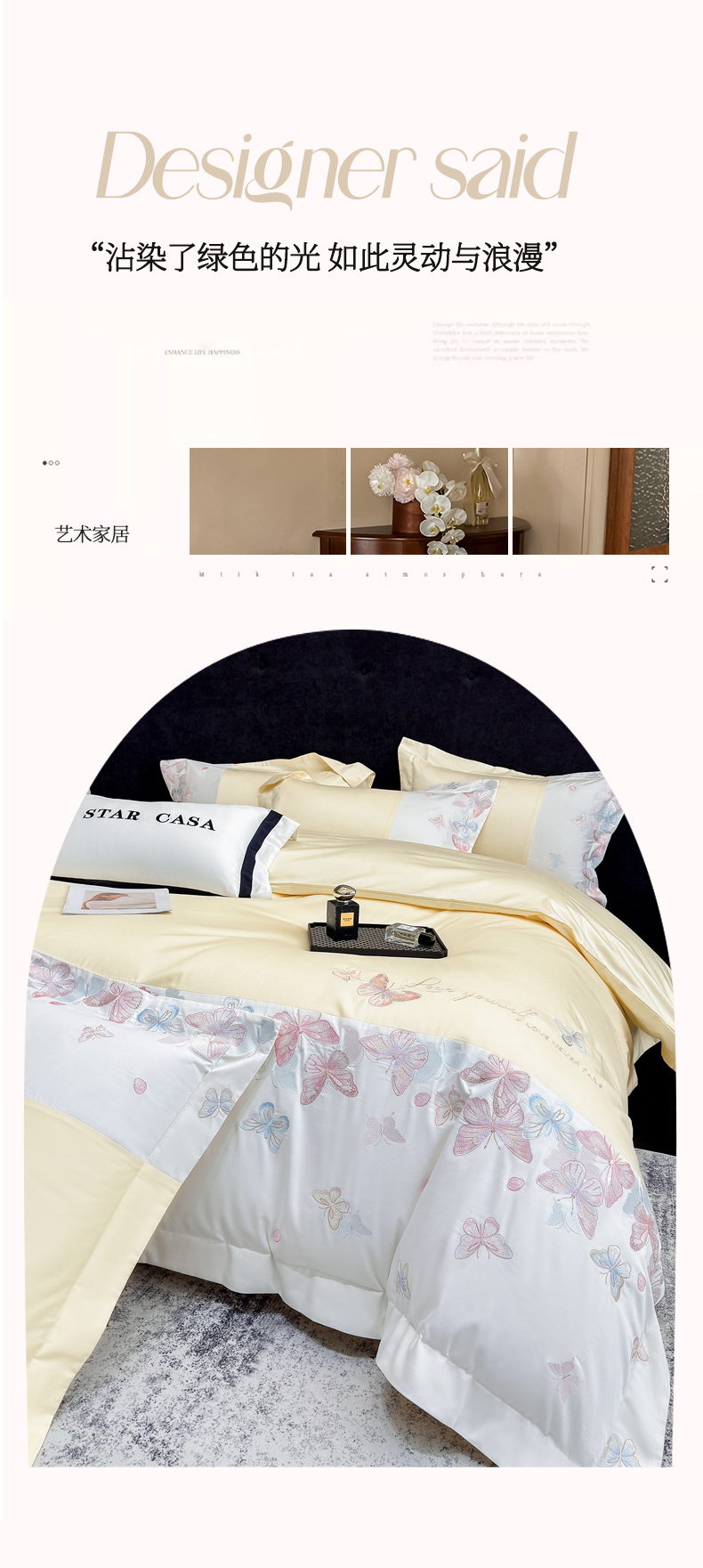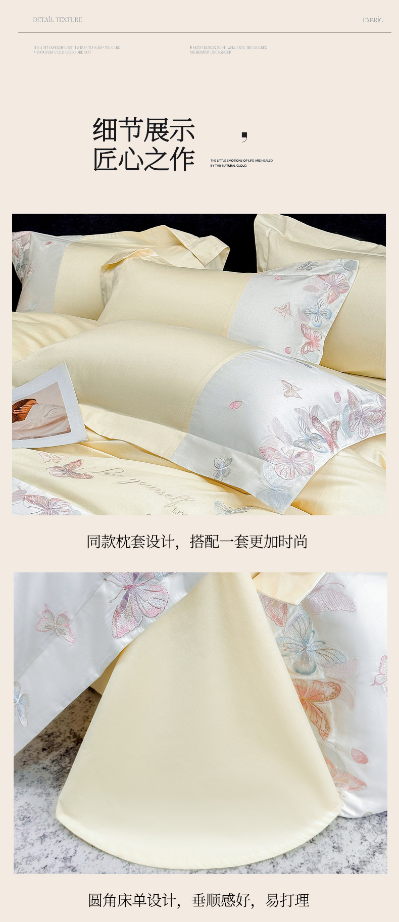 星蕴家纺 2026新款贡缎长绒棉四件套-悦蝶(最低控价券后278元!) 悦蝶-奶油黄