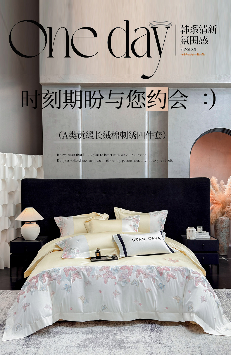 (总)星蕴家纺 2026新款A类新疆全棉刺绣四件套-千禧,高级灰,千禧粉,奶昔白,浅香槟