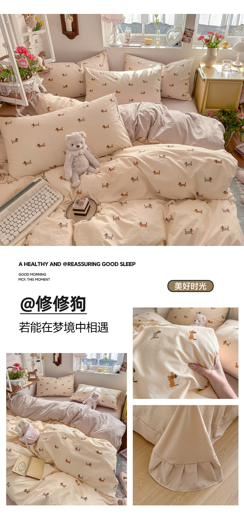 当前位置: 91家纺网 > 商品网购 > 床品套件 > 四件套 > 其它四件套 > 金梦拉家纺 2026新款春夏古法水洗仿棉砂洗云小棉小布袋四件套 线条小喵